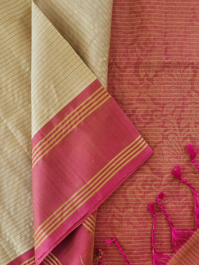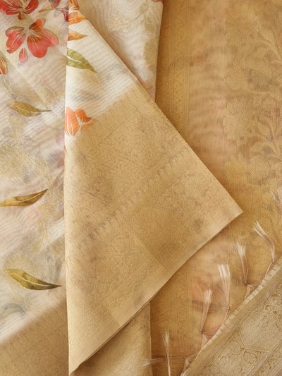 Handloom Yellow Tissue Linen Saree with Gold borders