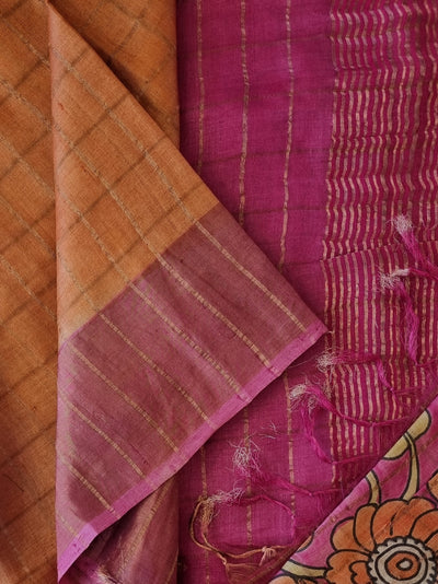 Checked Handwoven Kanjivaram Soft Silk Saree with Borders