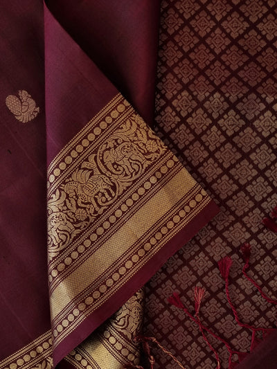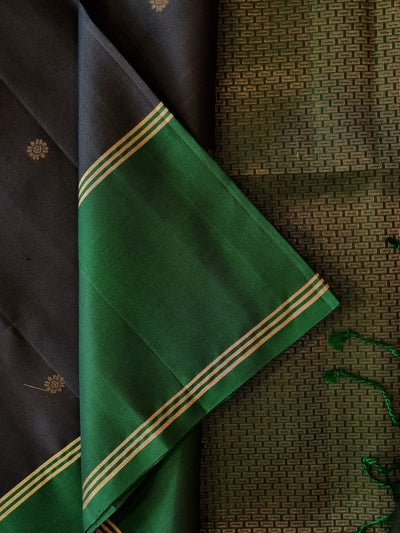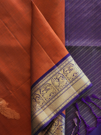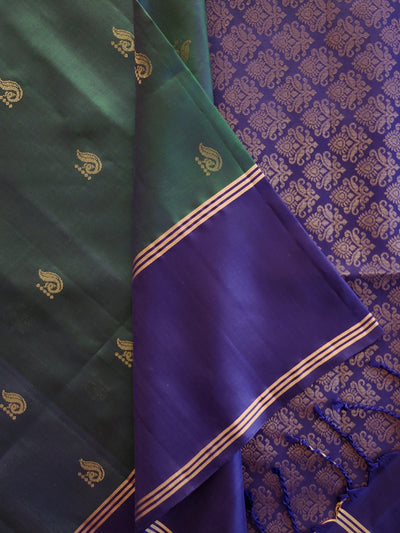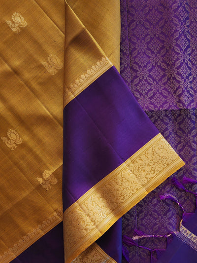Handwoven Dual Tone Kanjivaram Soft Silk With Gold Zari Borders