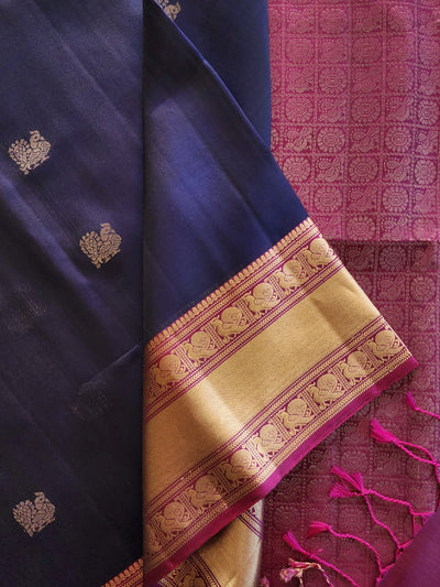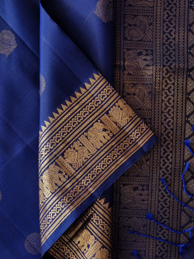 Handwoven Blue Kanjivaram Soft Silk With Gold Zari Borders