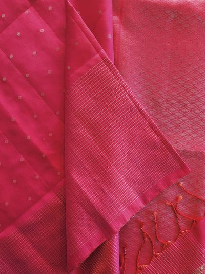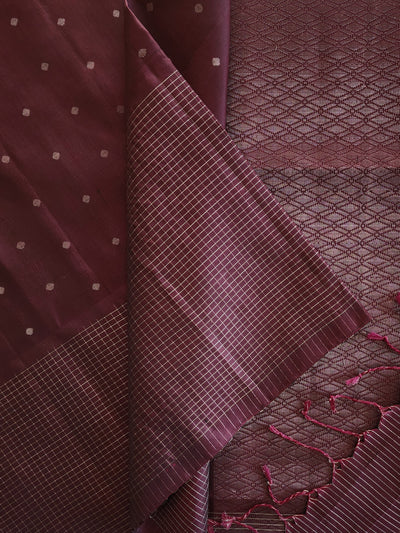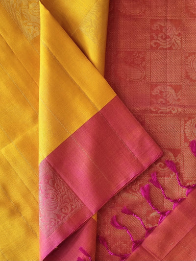 Handwoven Kanjivaram Soft Silk Saree With Checked Borders