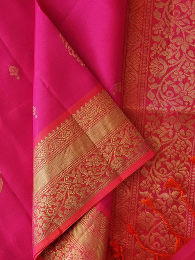 Handwoven Pink Kanjivaram Soft Silk With Gold Zari Borders