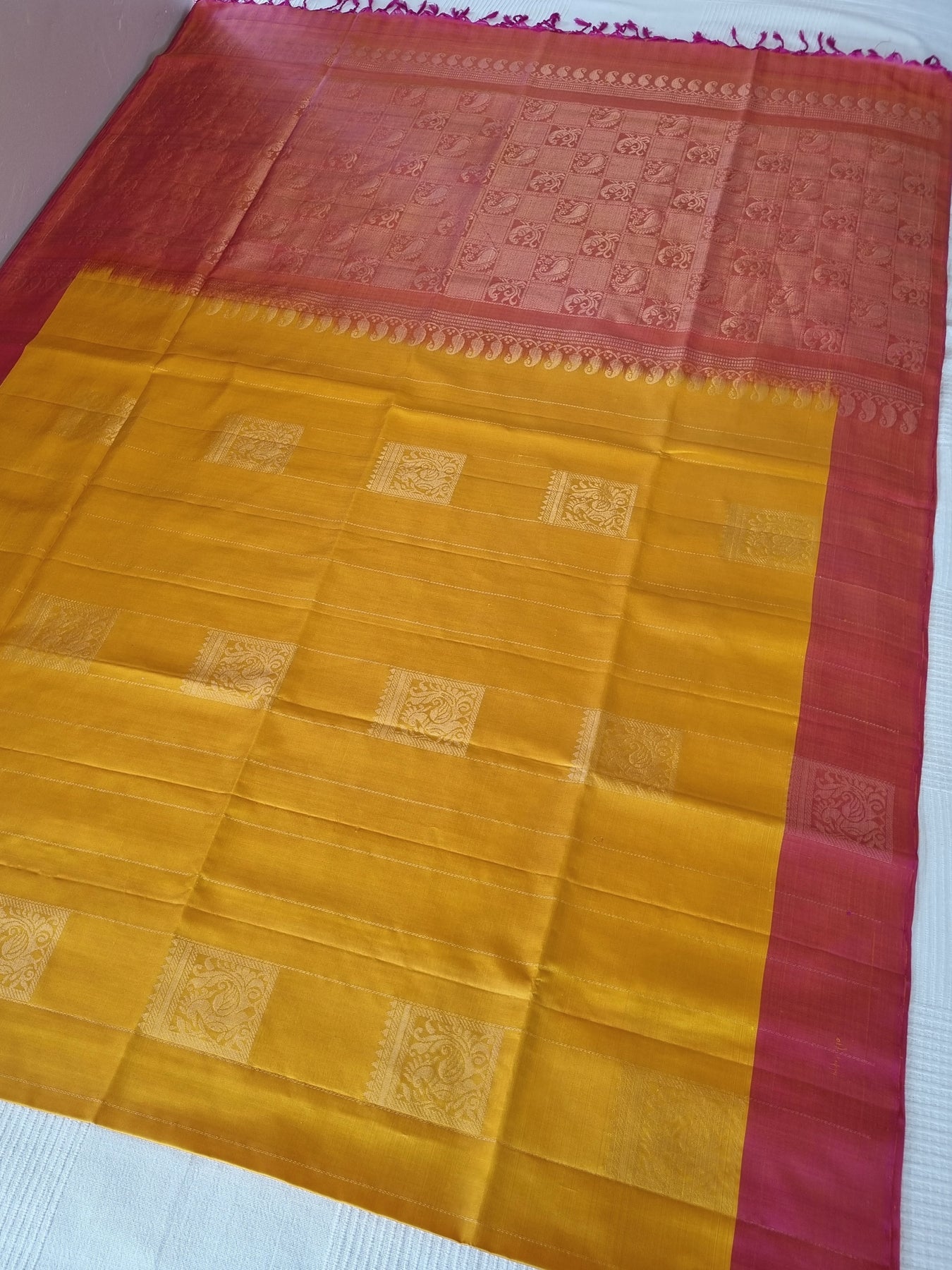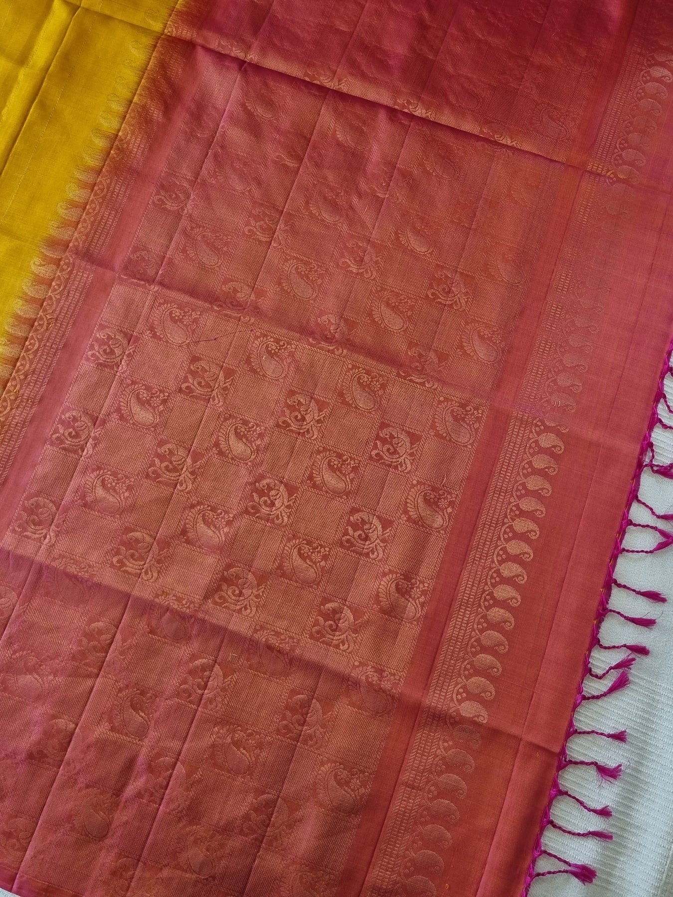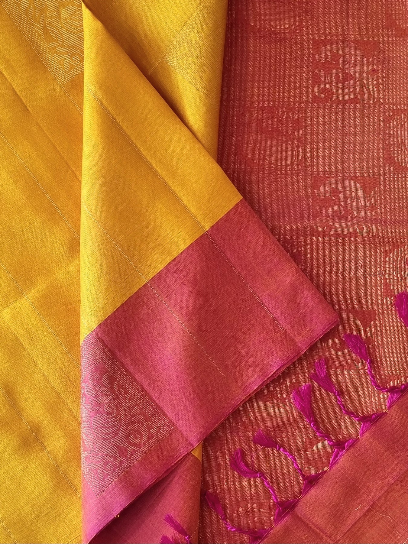 This is a Pure Handloom Kanjivaram Soft Silk Saree sourced directly from weavers