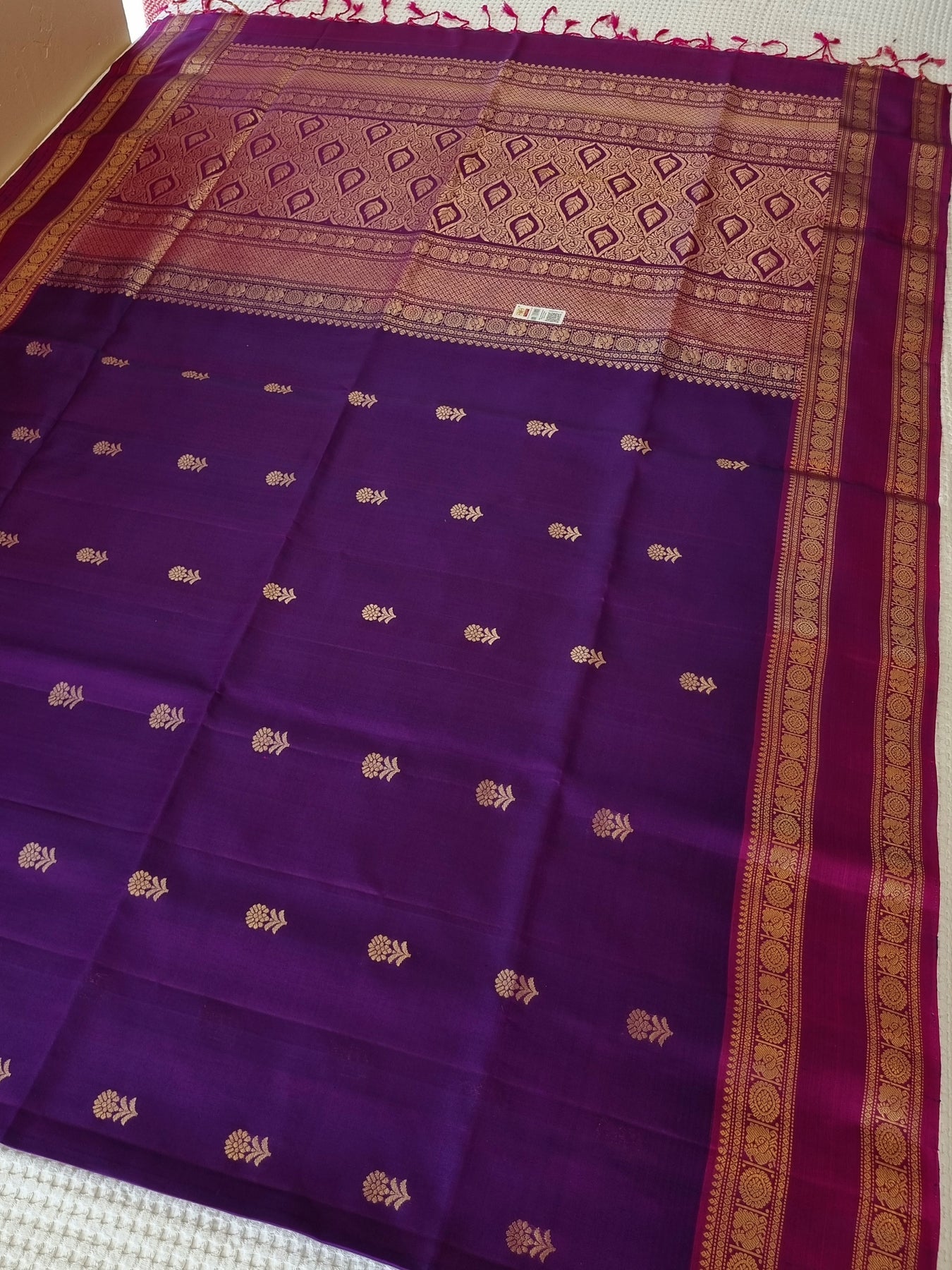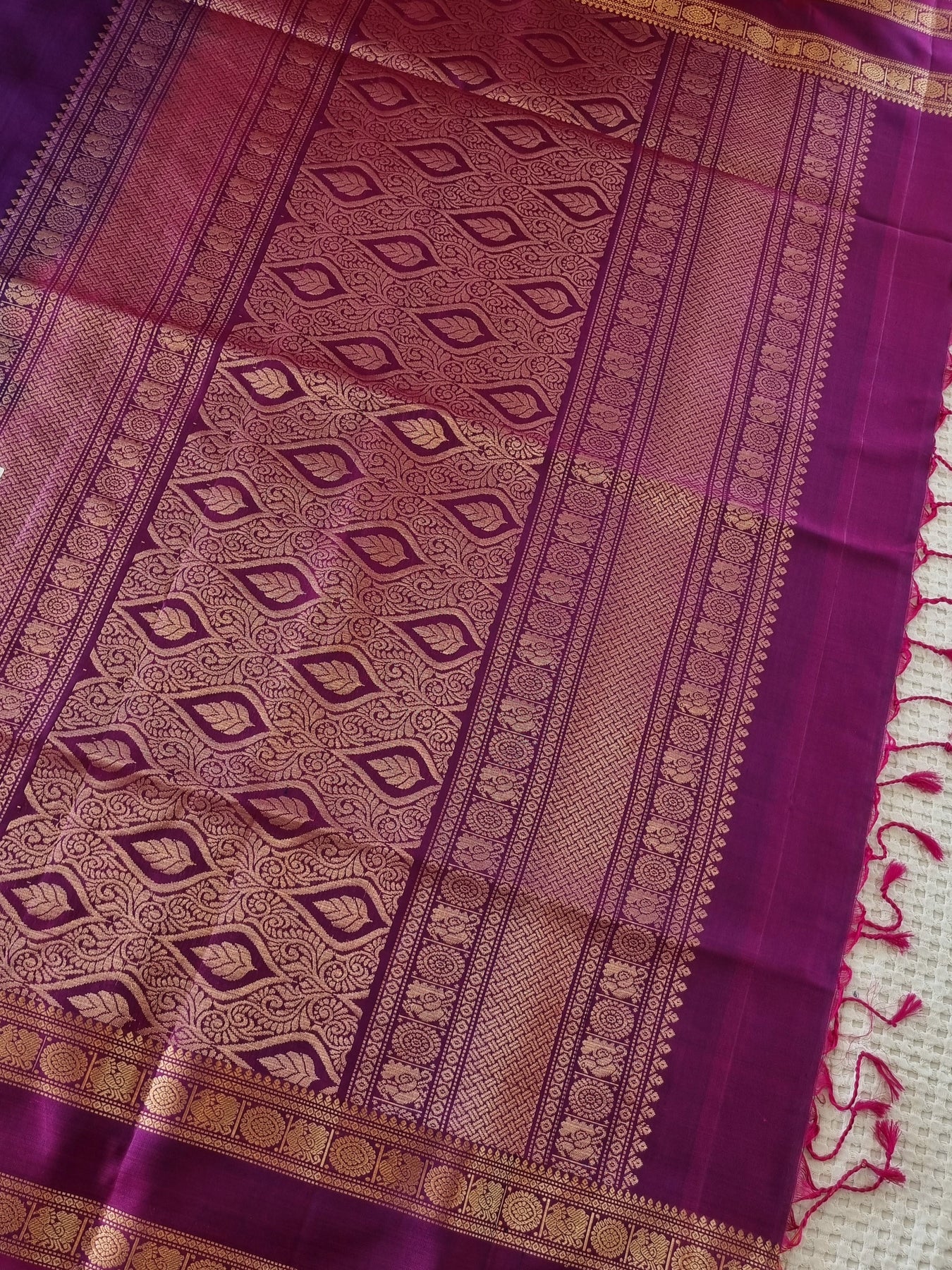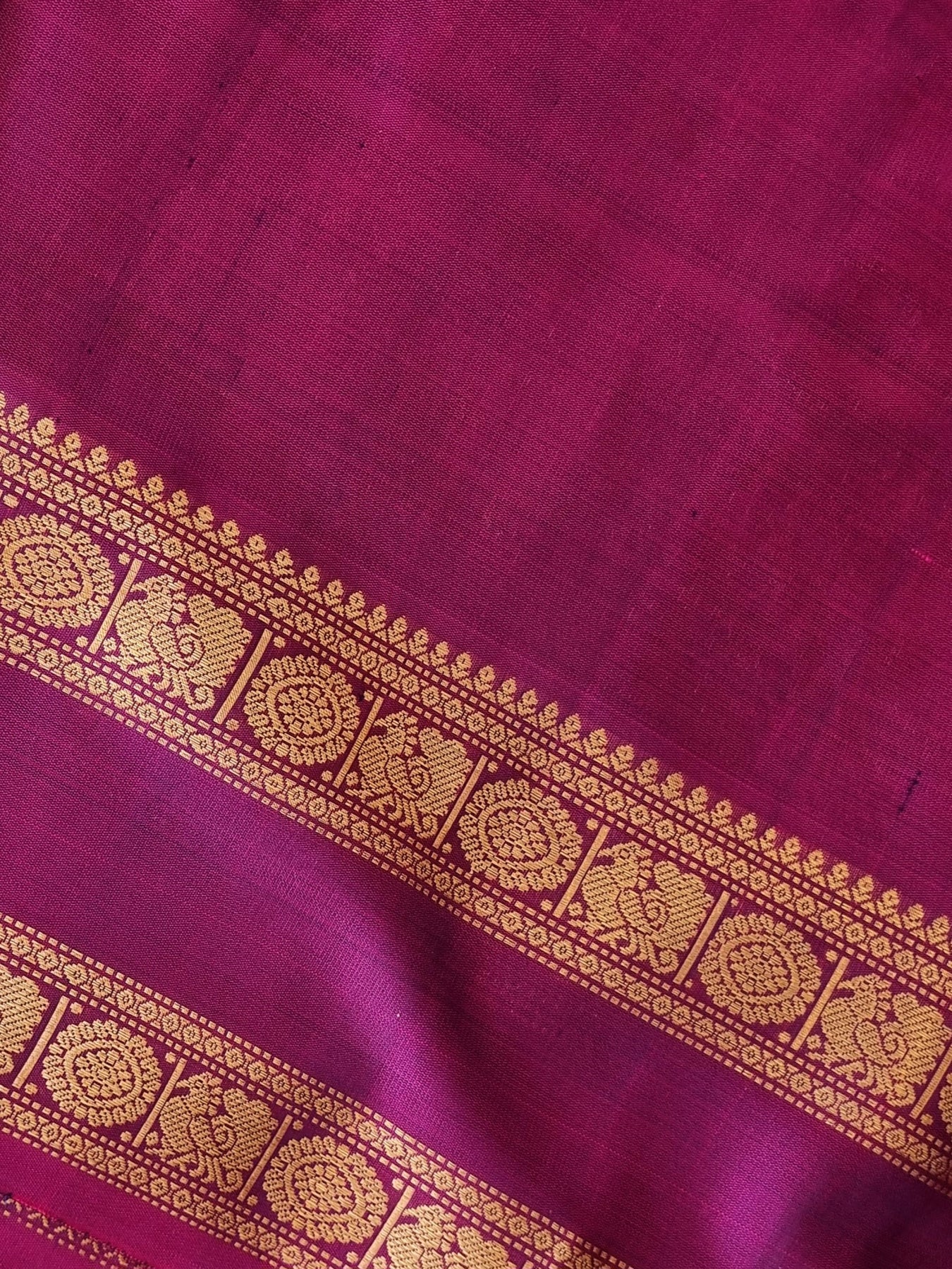 Beautiful Handwoven Soft Silk Saree with a contrast edgings and intricately woven gold motifs on the body and a rich woven pallu