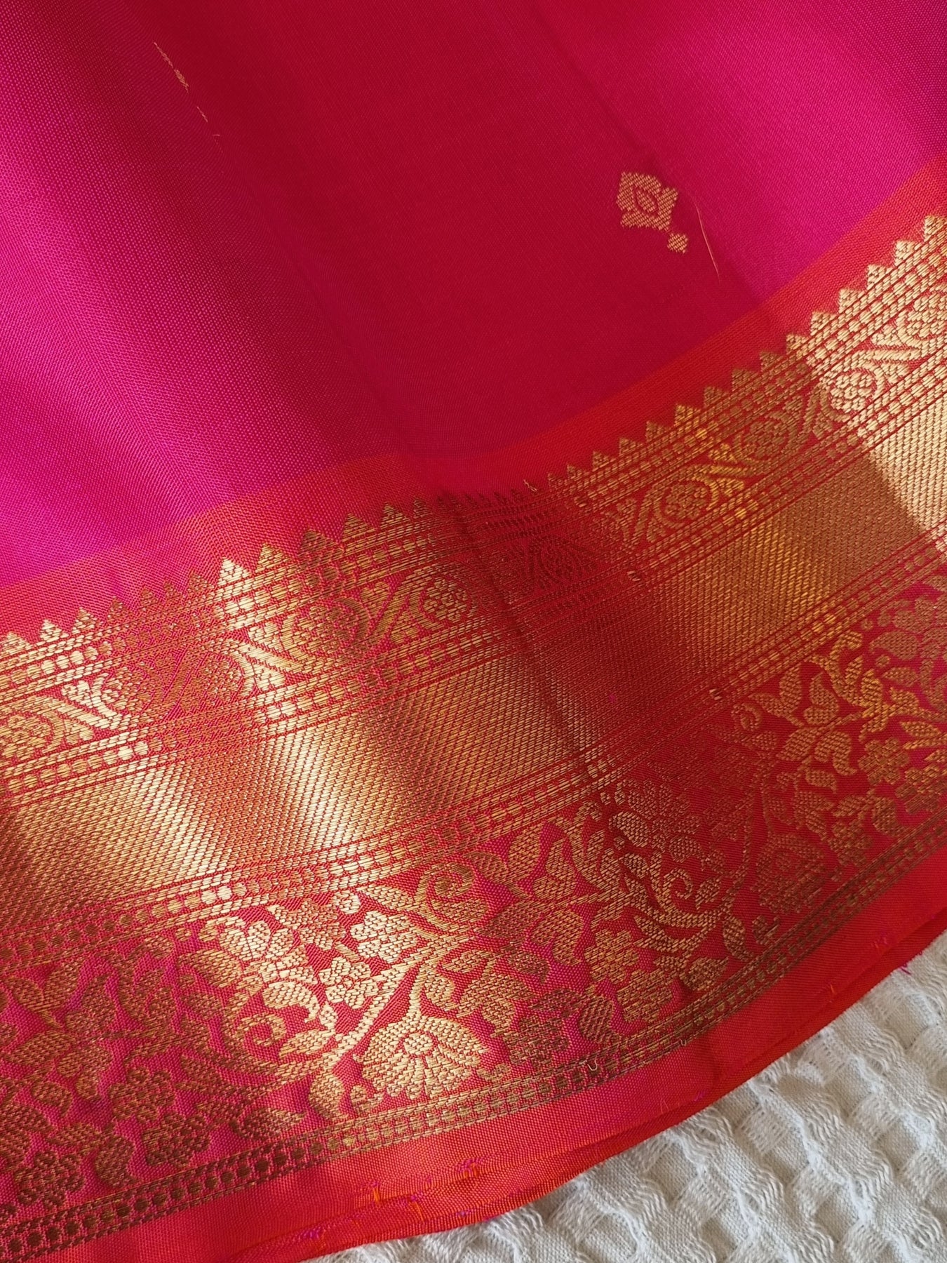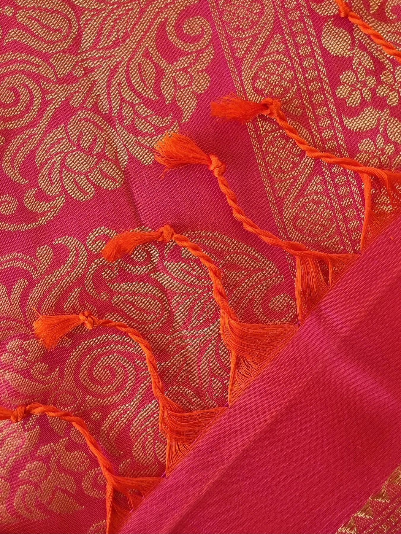 Beautiful Handwoven Soft Silk Saree with a contrast edgings and intricately woven gold motifs on the body and a rich woven pallu