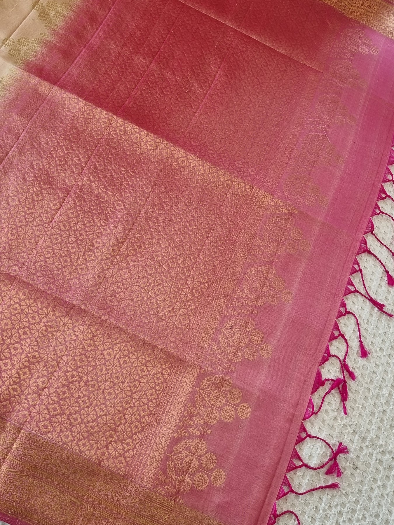 Blouse: The last image gives a detailed look of the blouse fabric that comes with the Saree