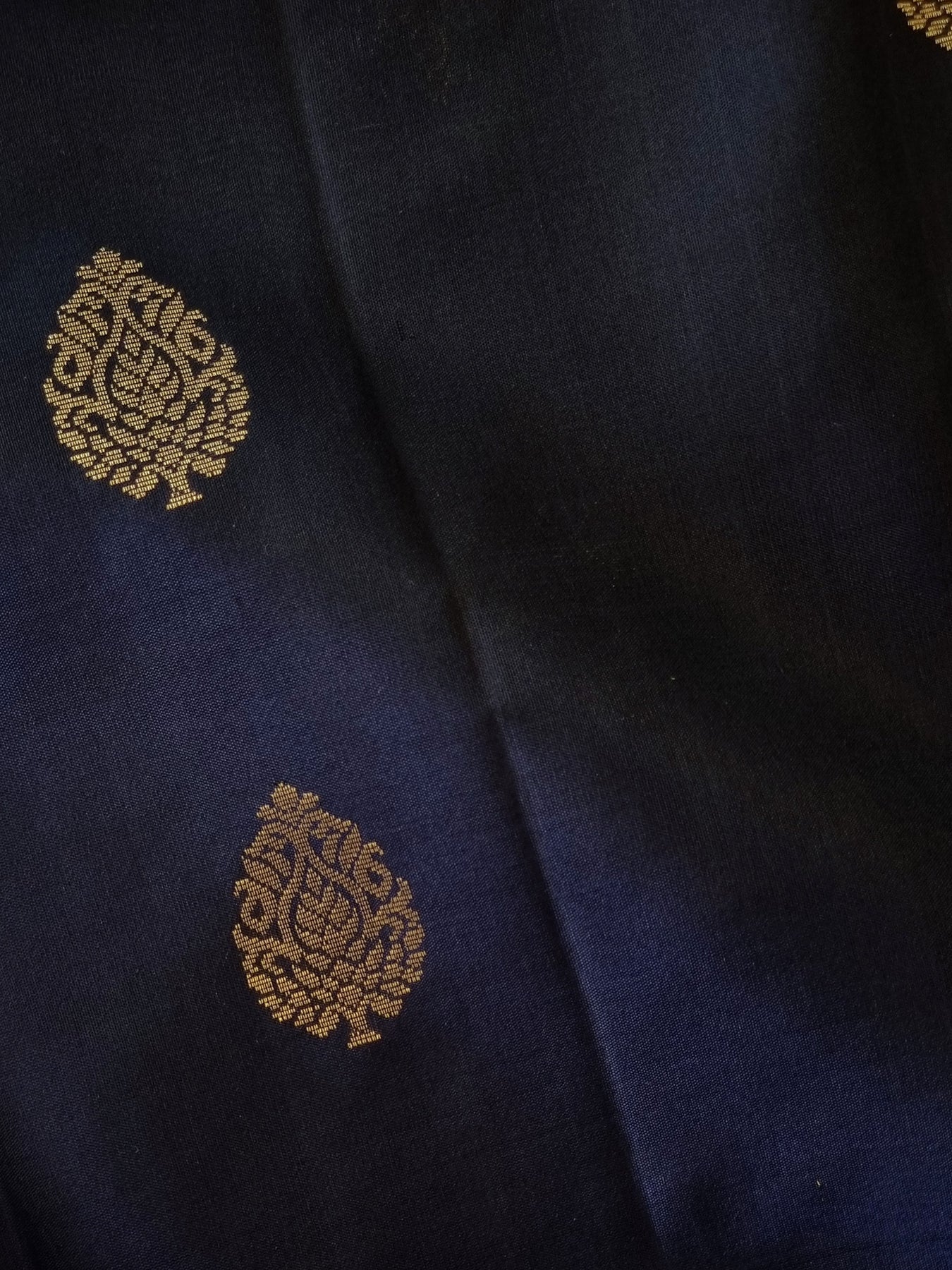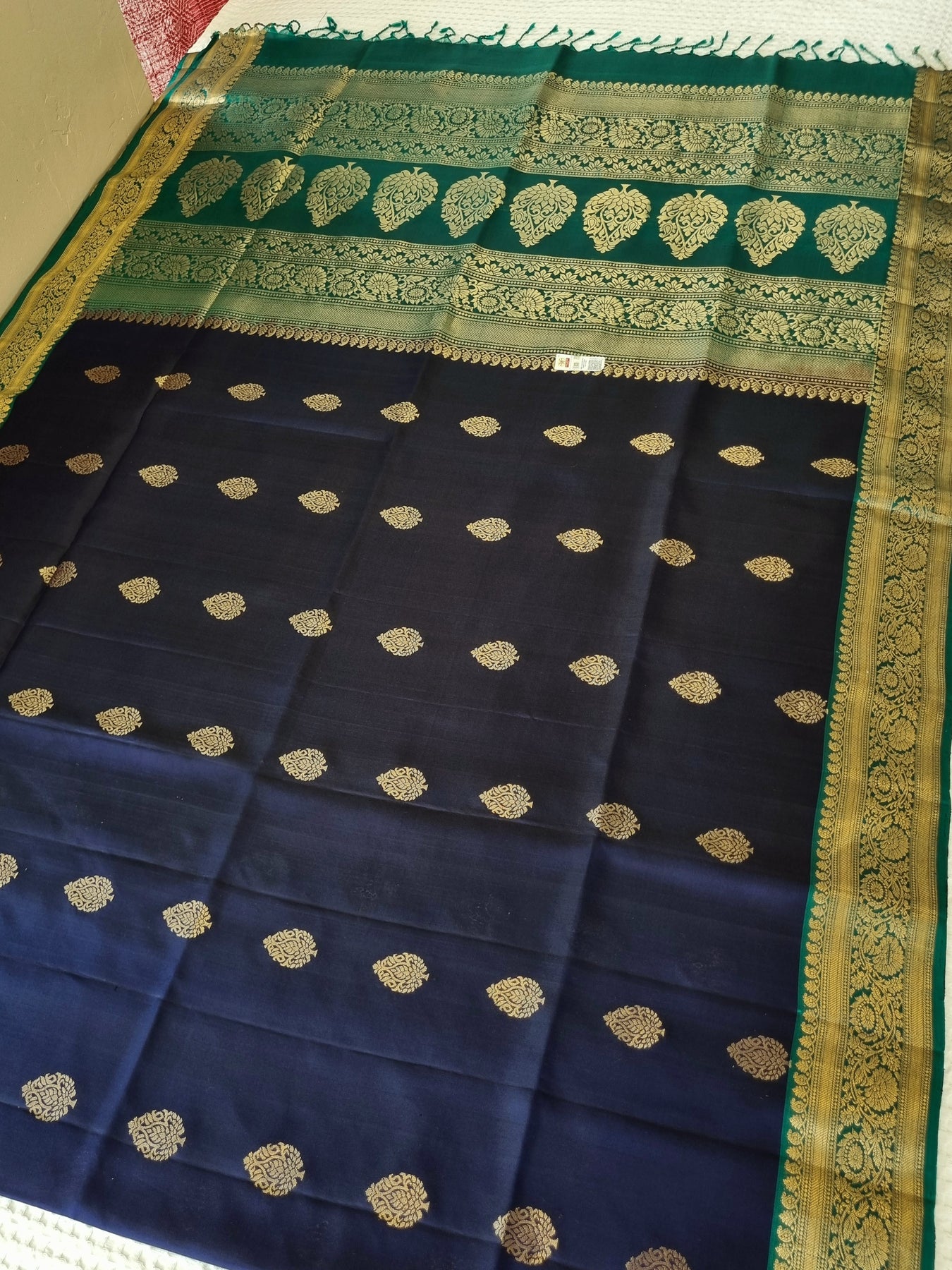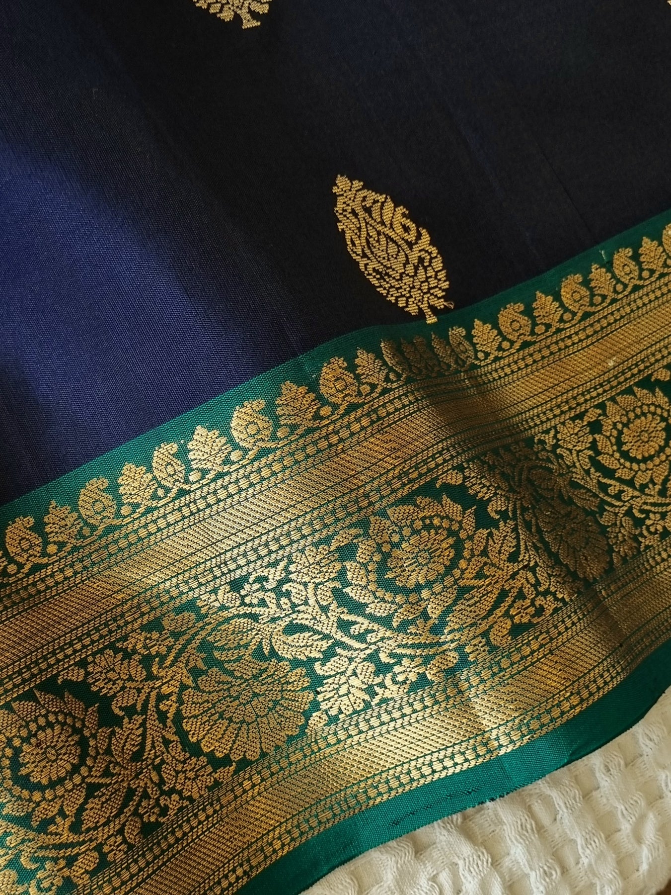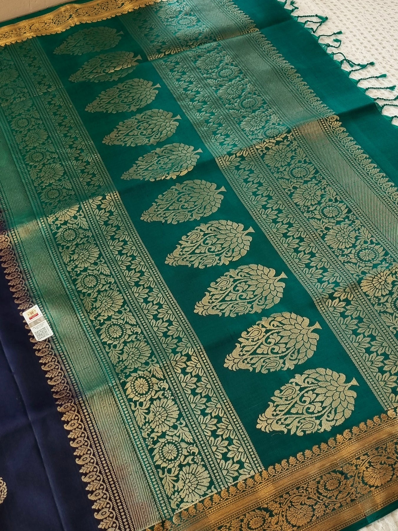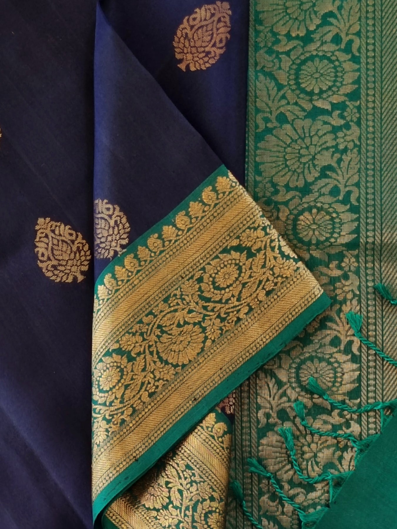 Beautiful Handwoven Soft Silk Saree with a contrast edgings and intricately woven gold motifs on the body and a rich woven pallu