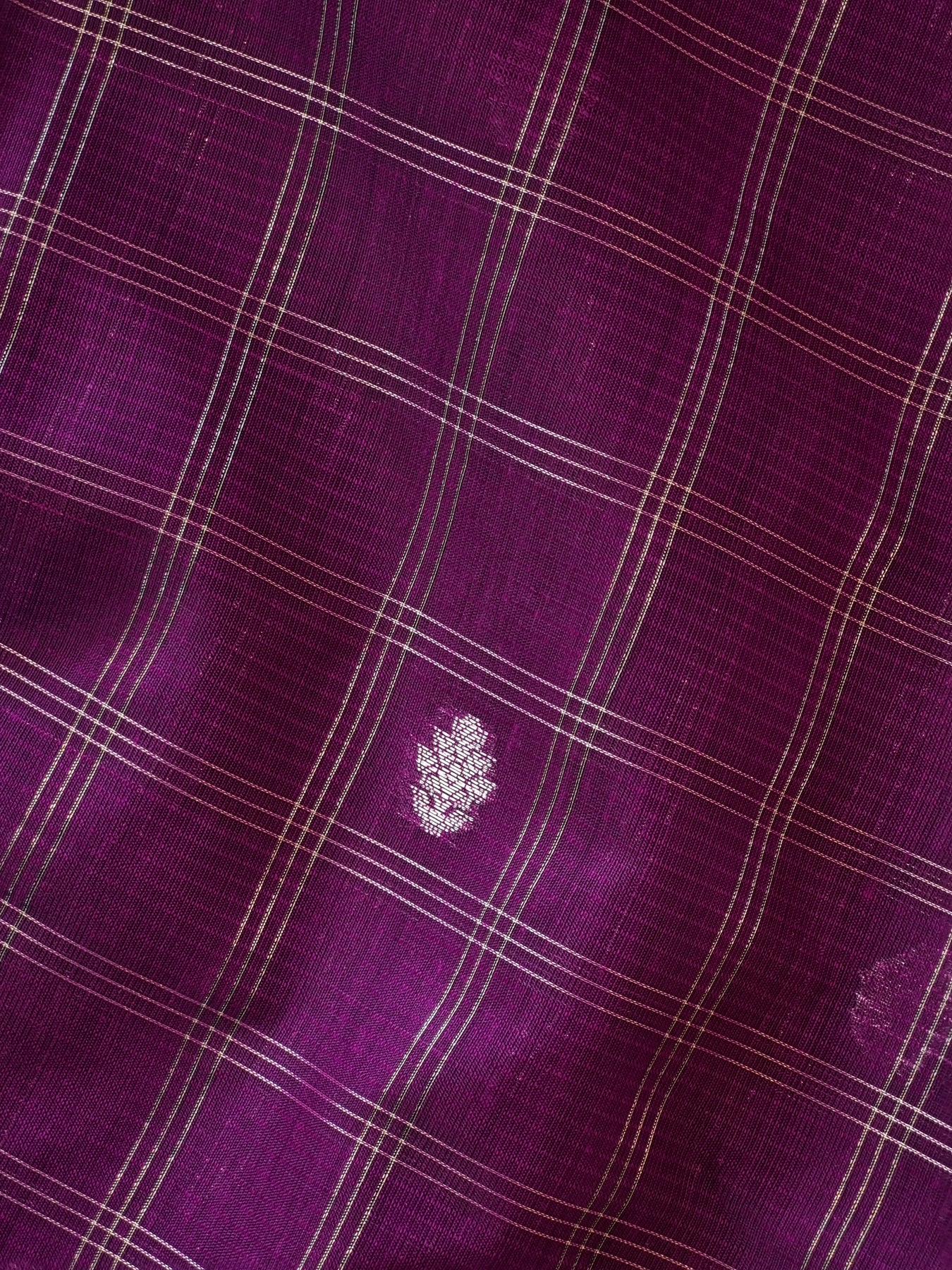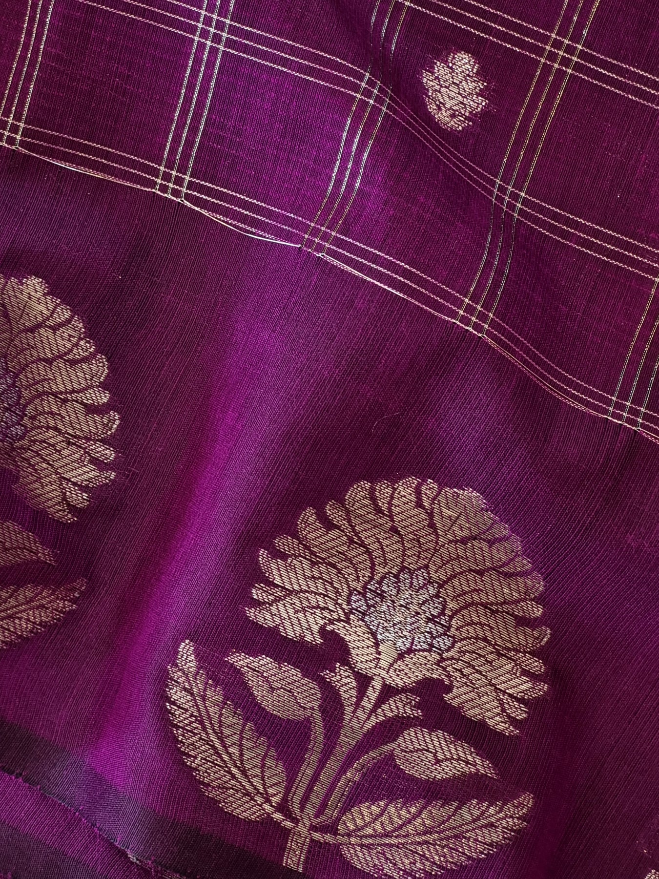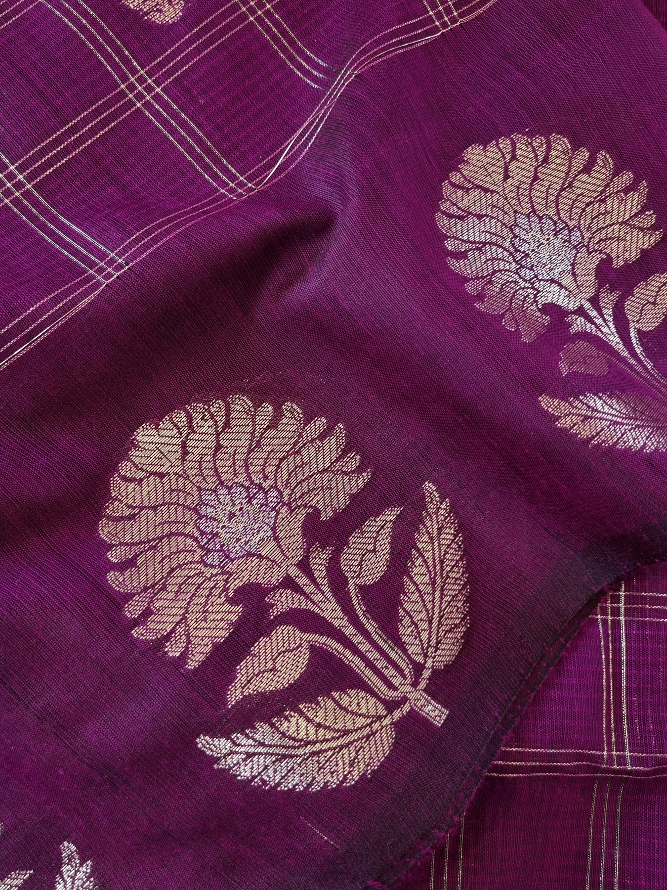 Purple Checked Silk Cotton Saree with Woven Motifs