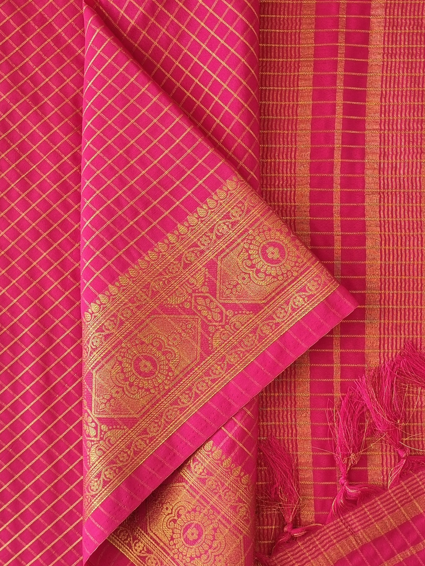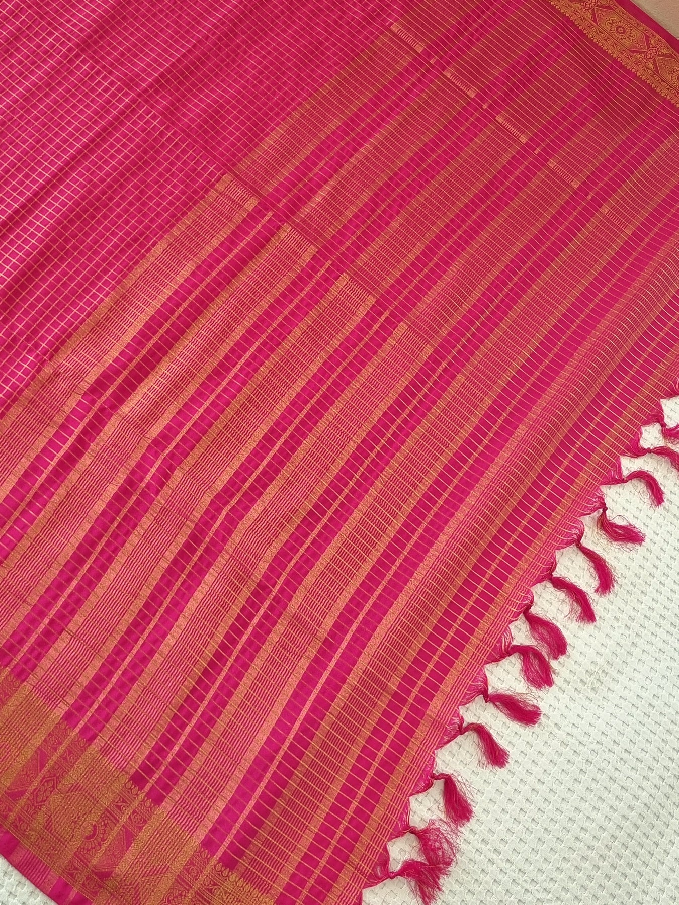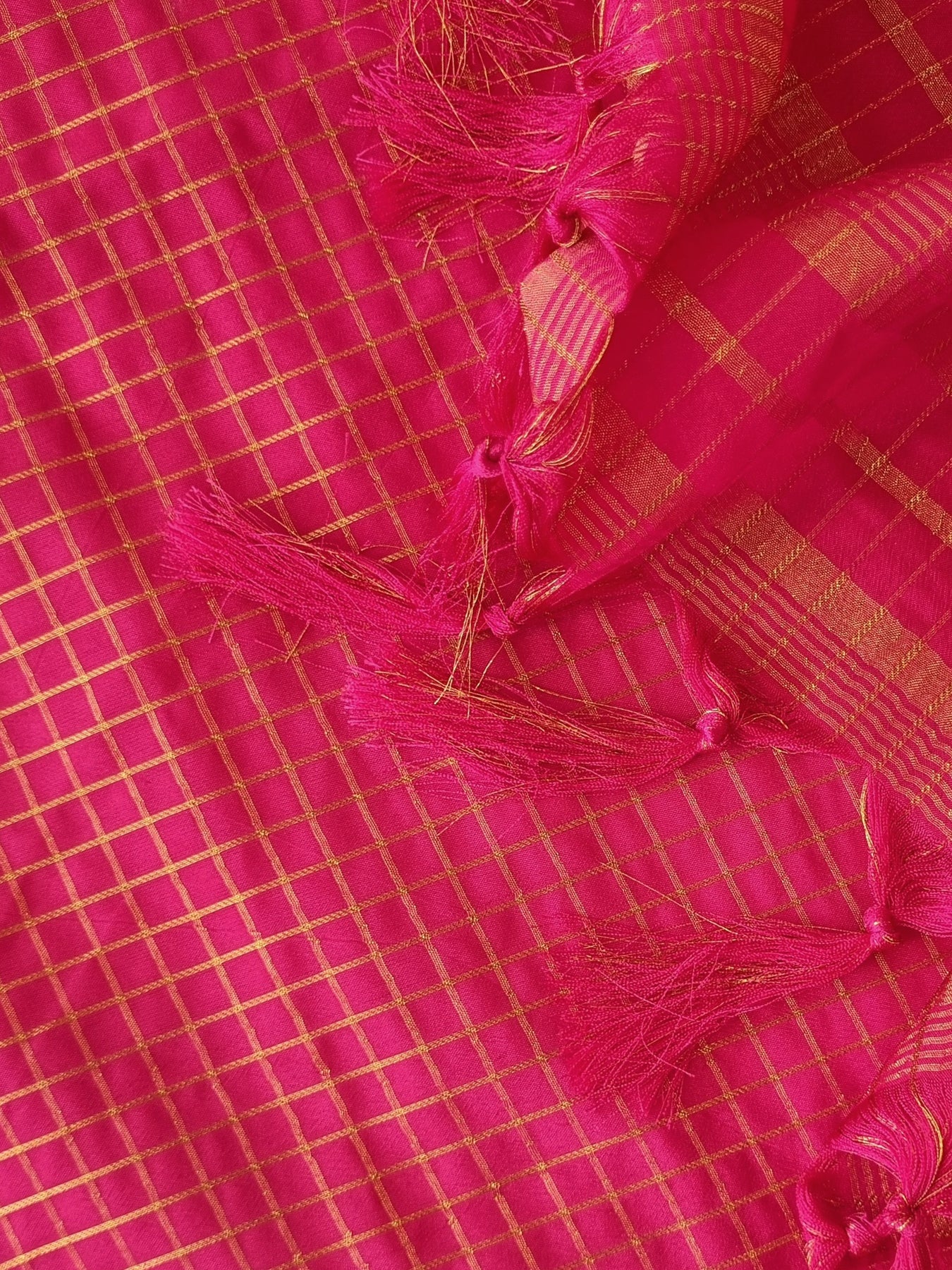 • An elegant Semi Silk Saree with Zari checks on the body and, beautifully finished with tassels