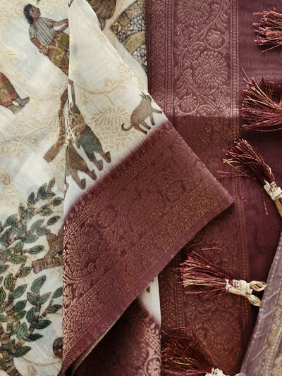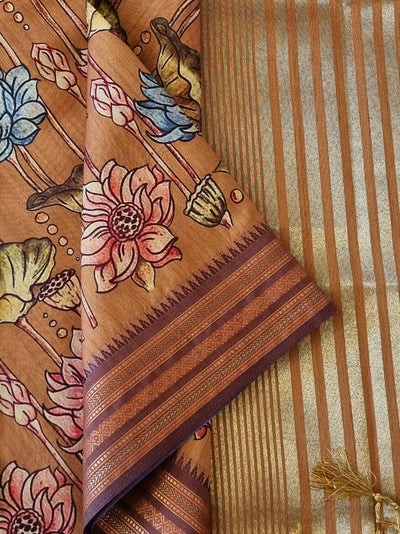 Tussar Silk Saree with Kalamkari Prints