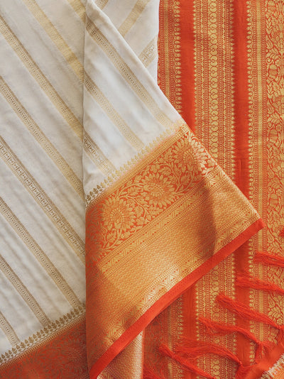 Grey Raw Silk Saree with Woven Borders
