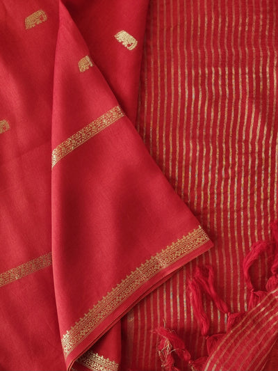 Red Silk Saree with Woven Borders