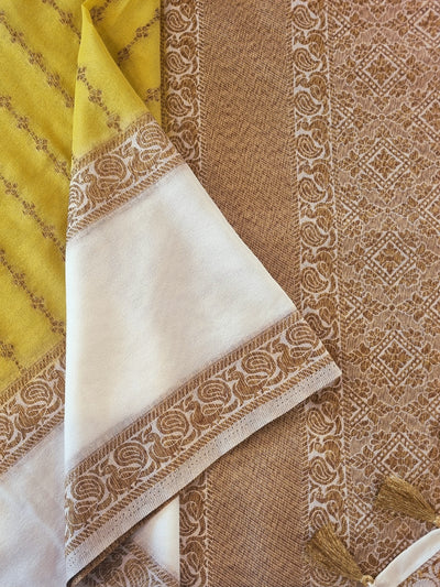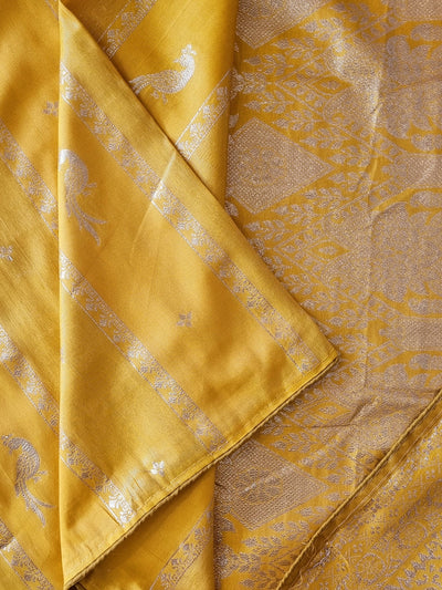 Mustard Raw Silk Saree with Embroidery and Contrast Pallu