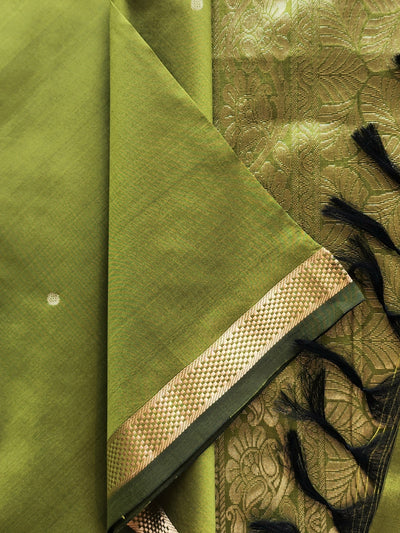 Green Silk Saree With Gold Borders