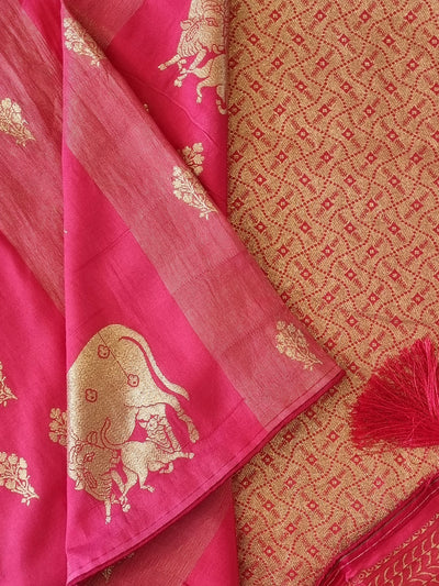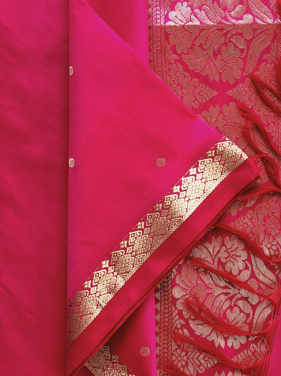 Pink Silk Saree With Gold Borders