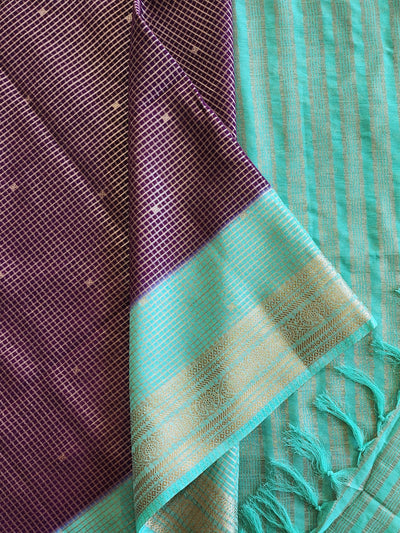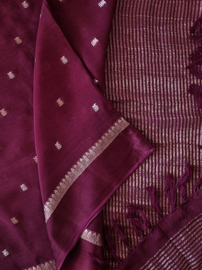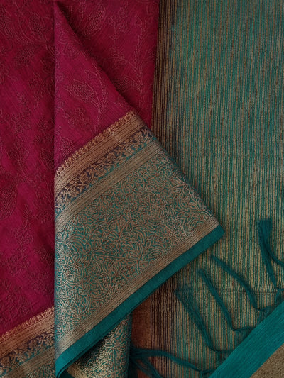 Burgundy Raw Silk Saree with Embroidery and Contrast Teal Pallu