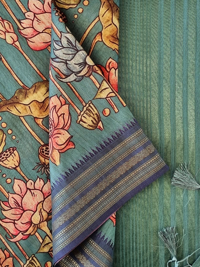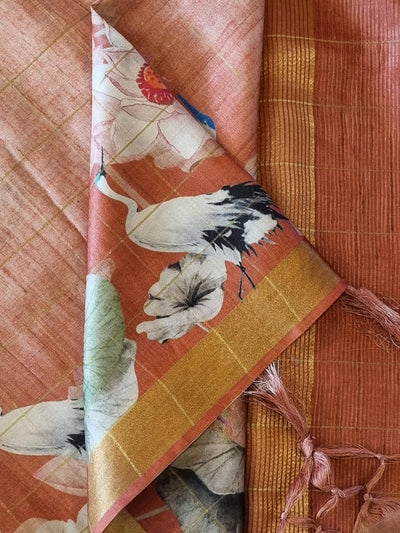 Tussar Silk Saree with Digital Floral Prints