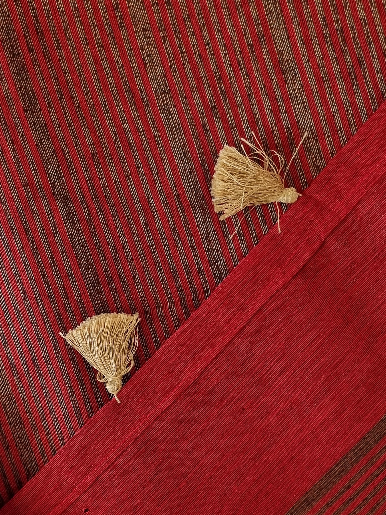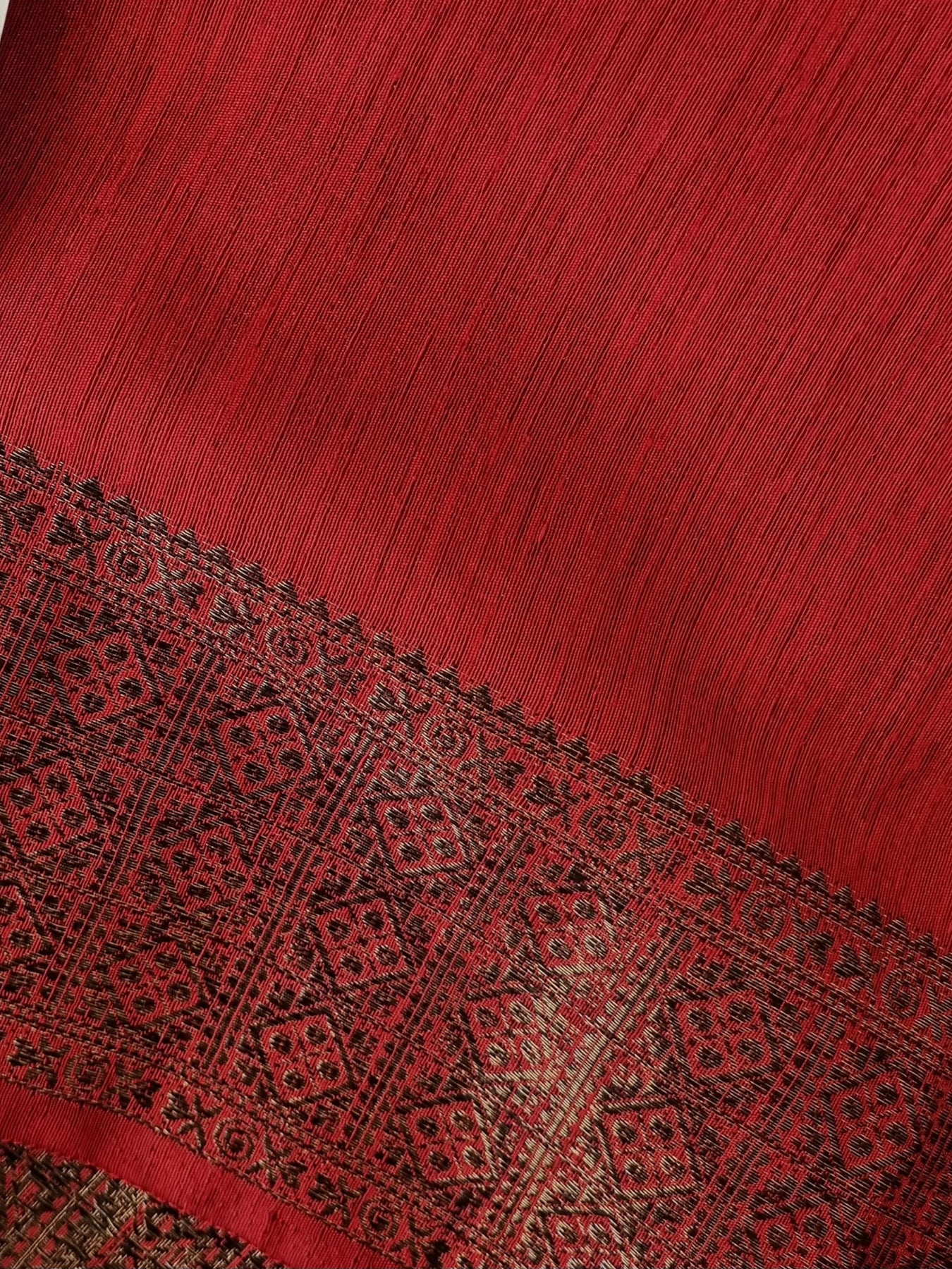 An elegant Semi Raw Silk Saree with floral embroidery designs on the body