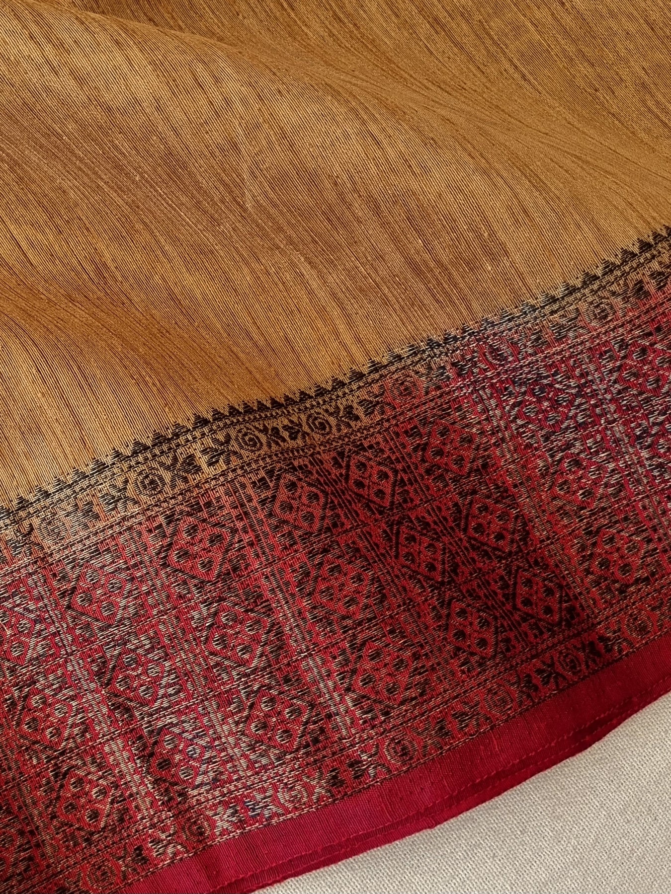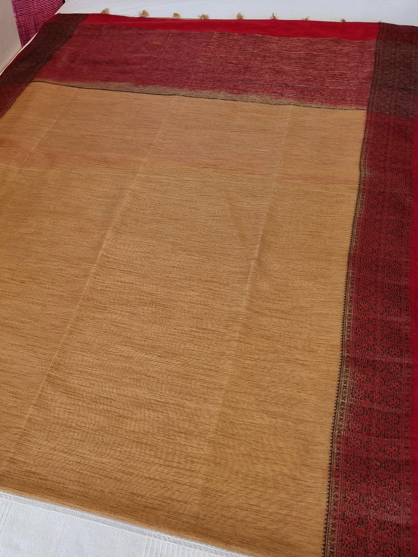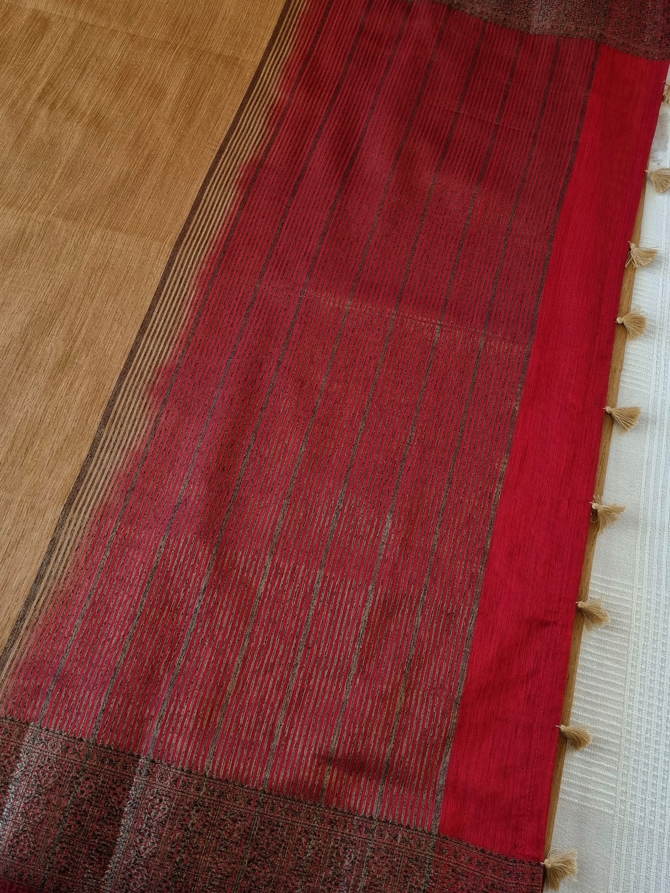 Beige Raw Silk Saree with Embroidery and Contrast Pallu