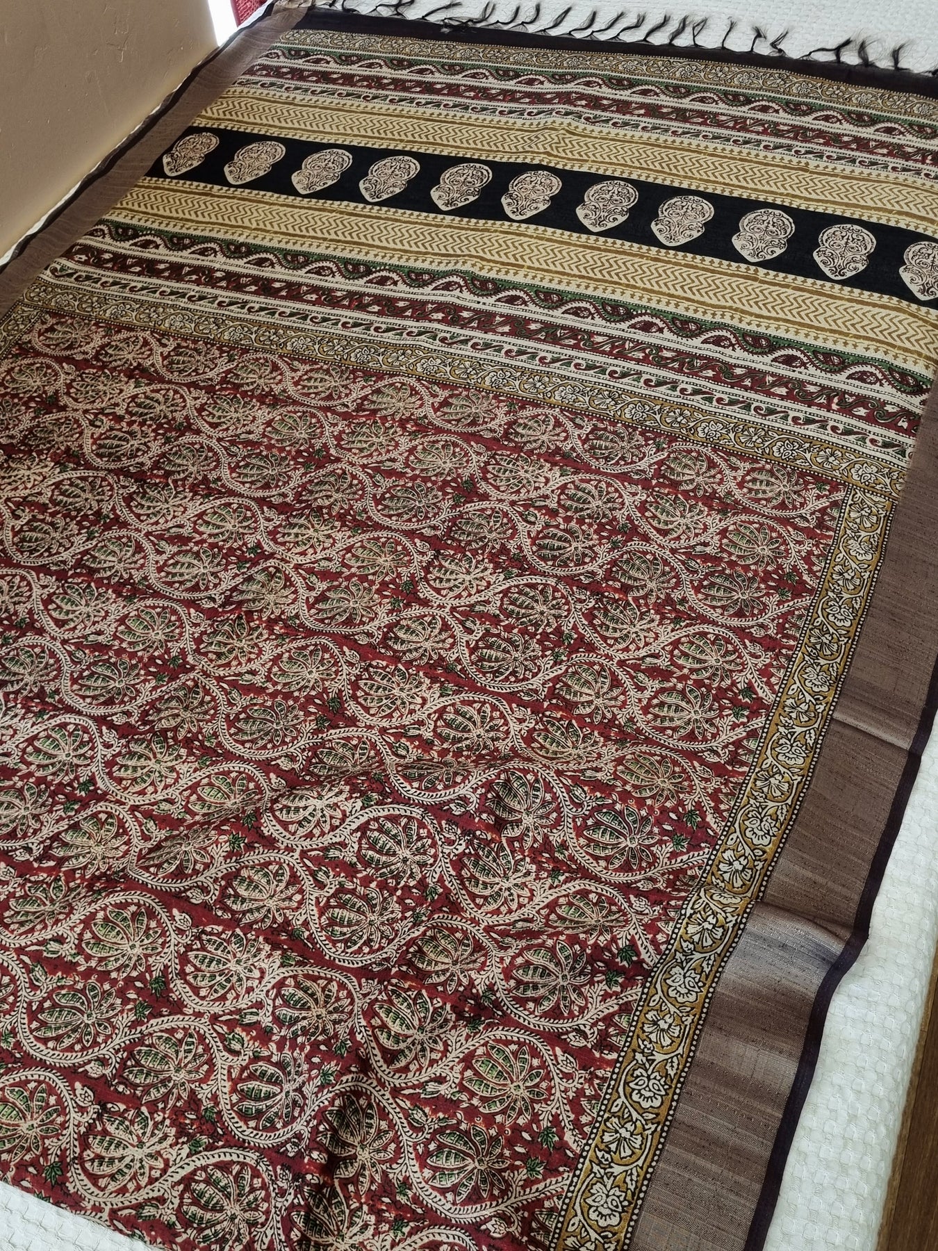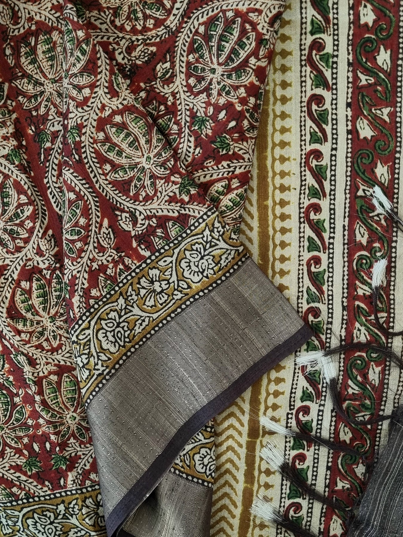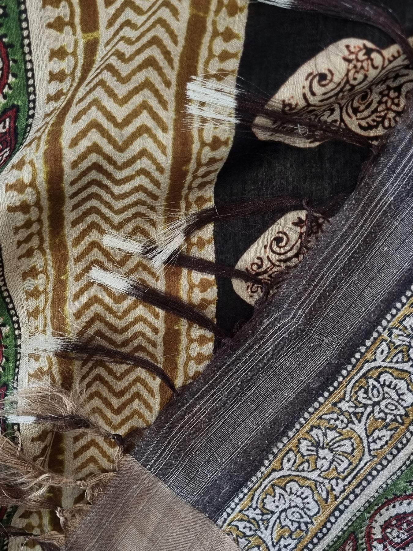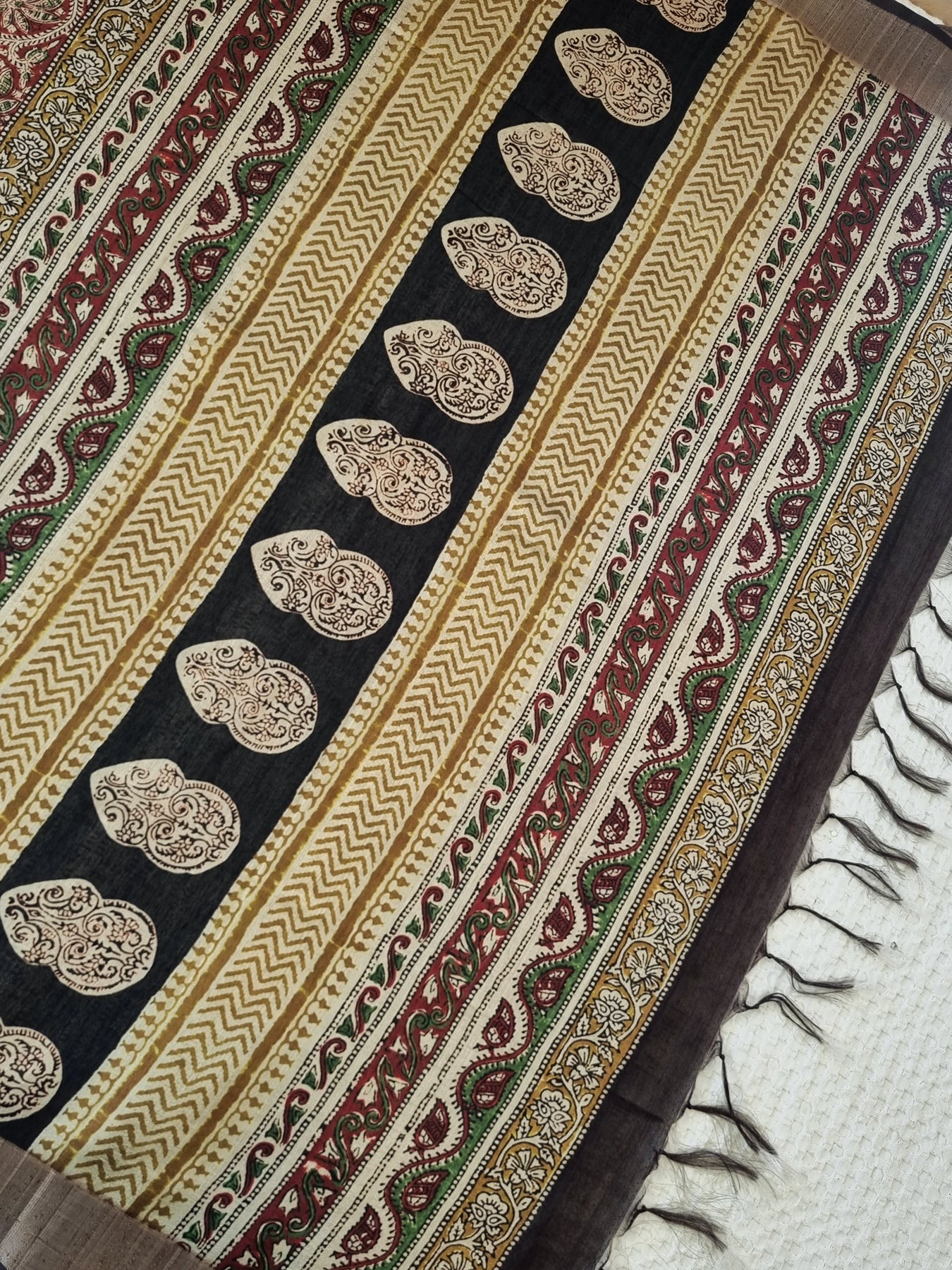Block Printed Tussar Saree with Woven Borders