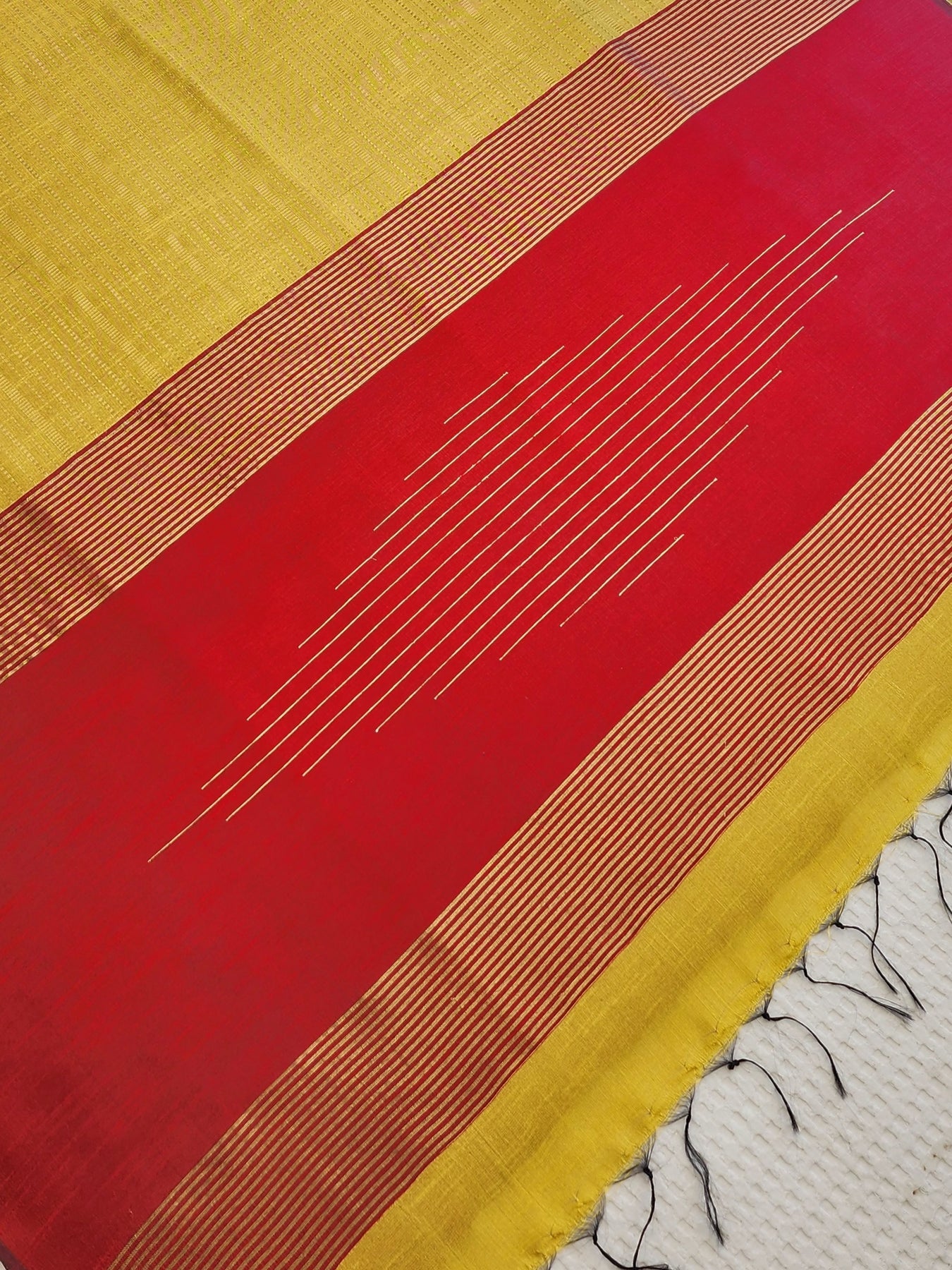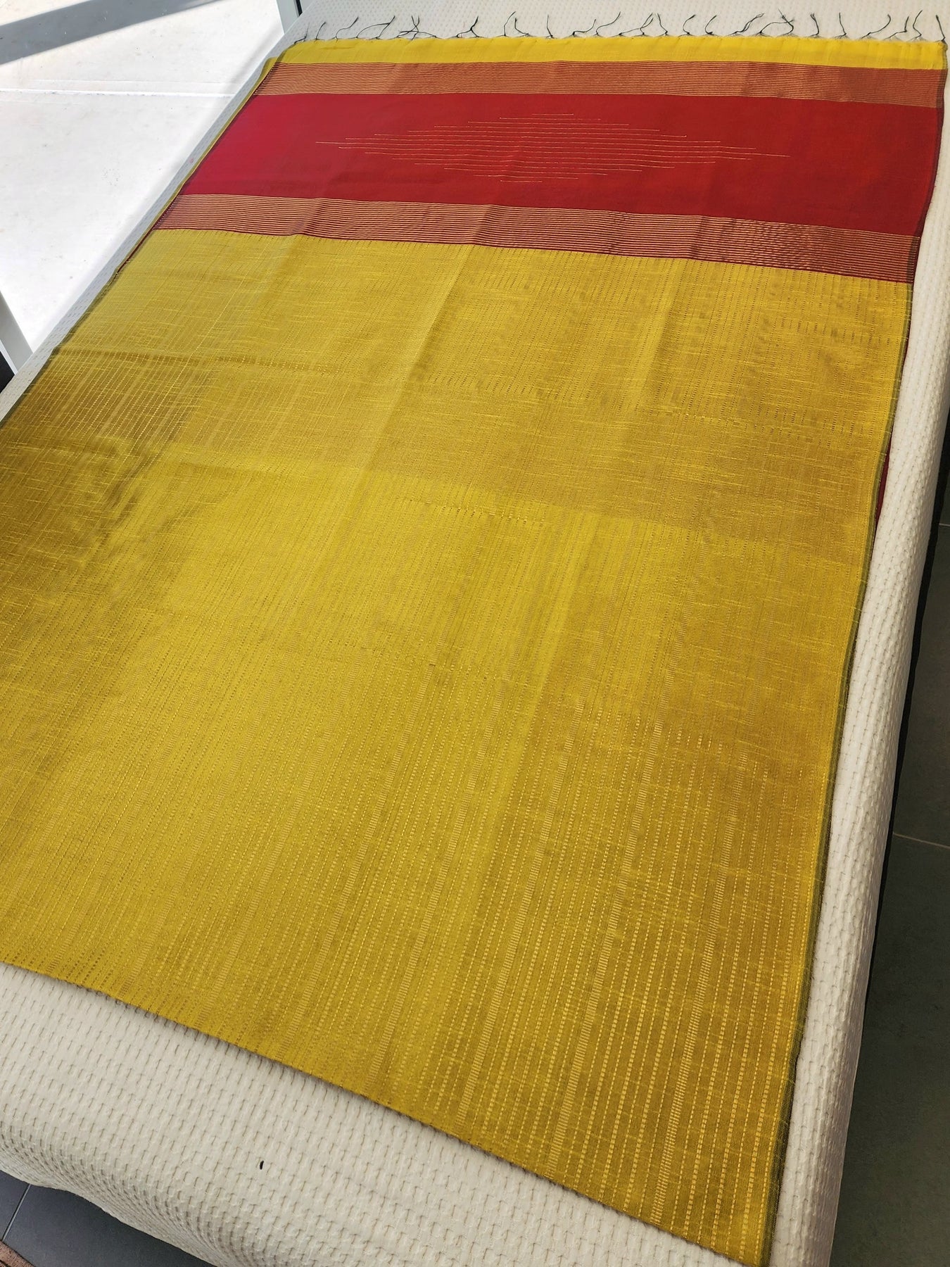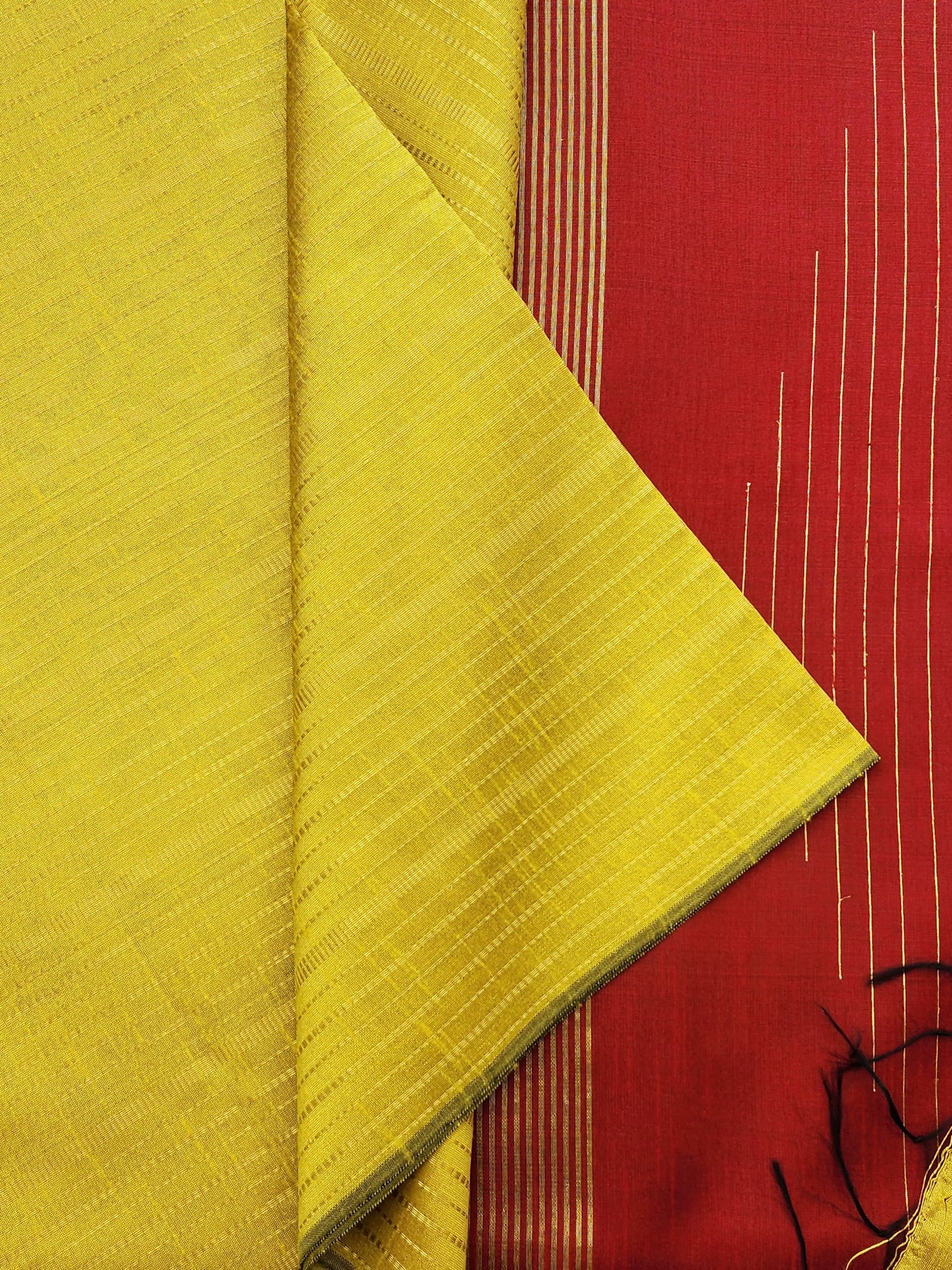 Yellow Borderless Raw Silk Saree with Contrast Pallu