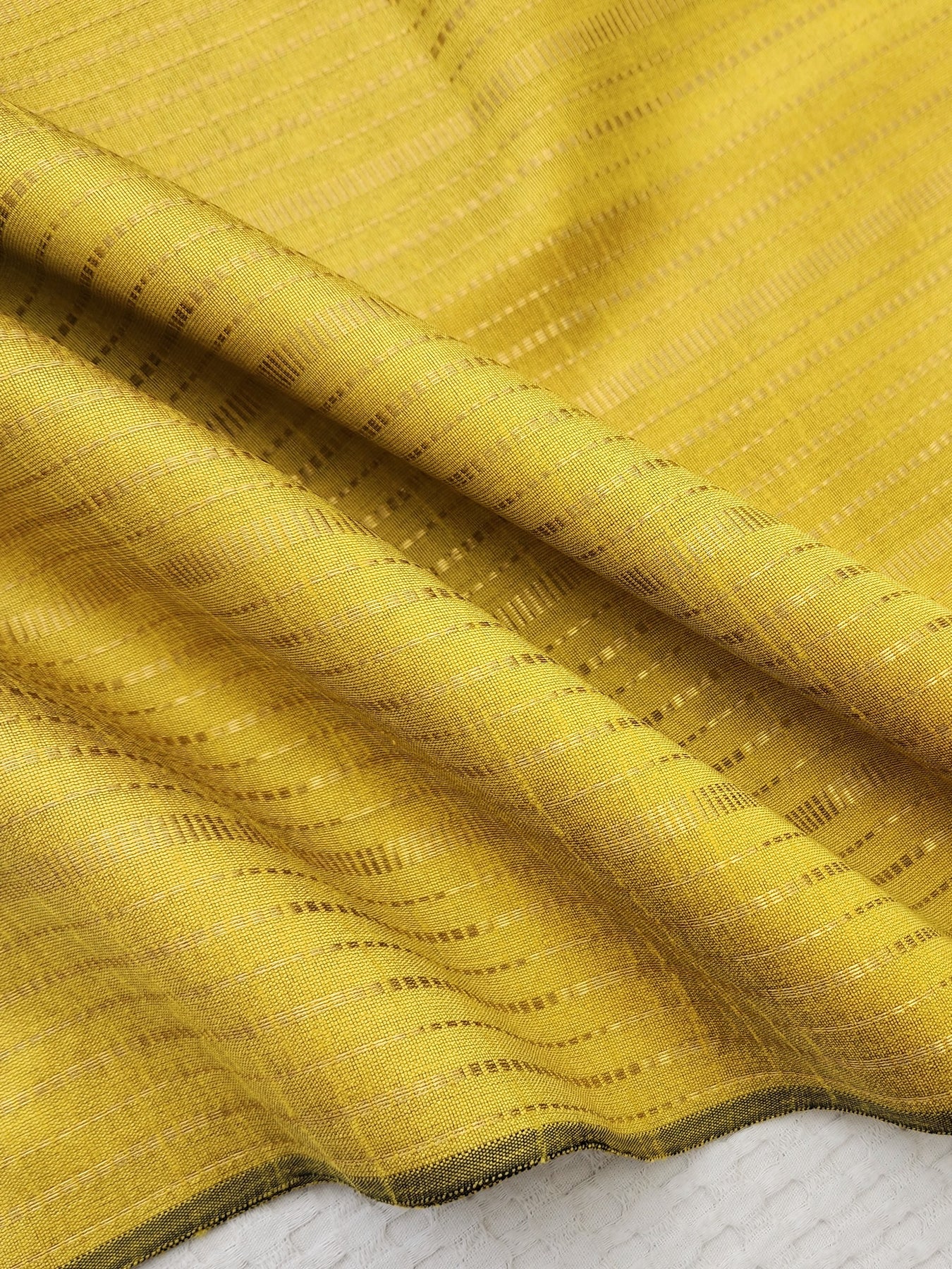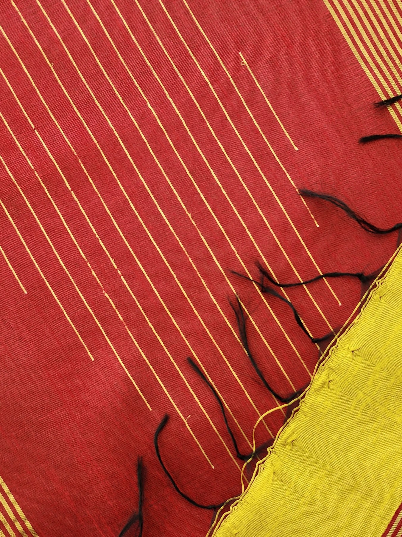 • Semi Raw Silk Saree with a striped body and contrast pallu, beautifully finished with tassels
