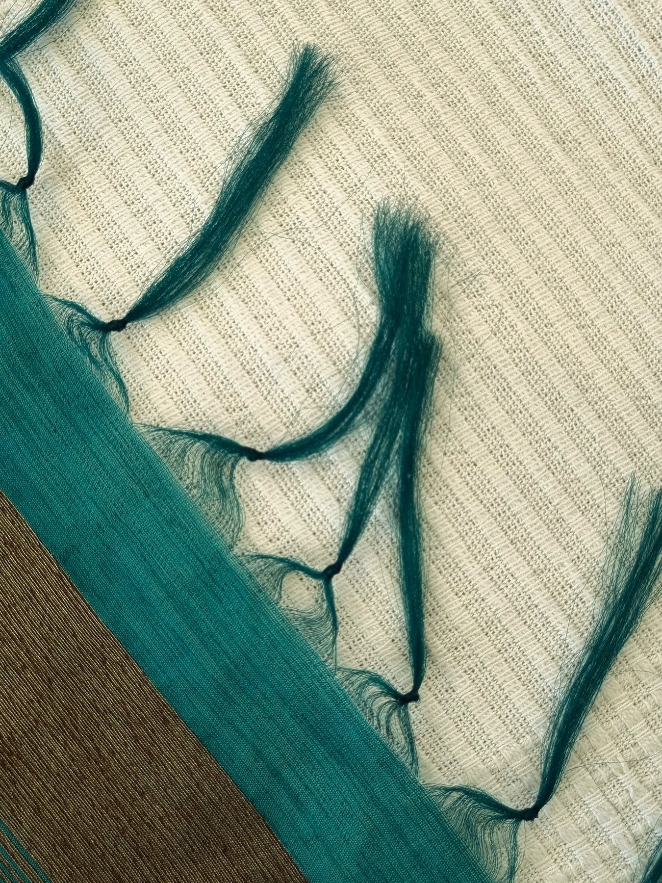 Blouse: The last image gives a detailed look at the blouse that comes with this saree