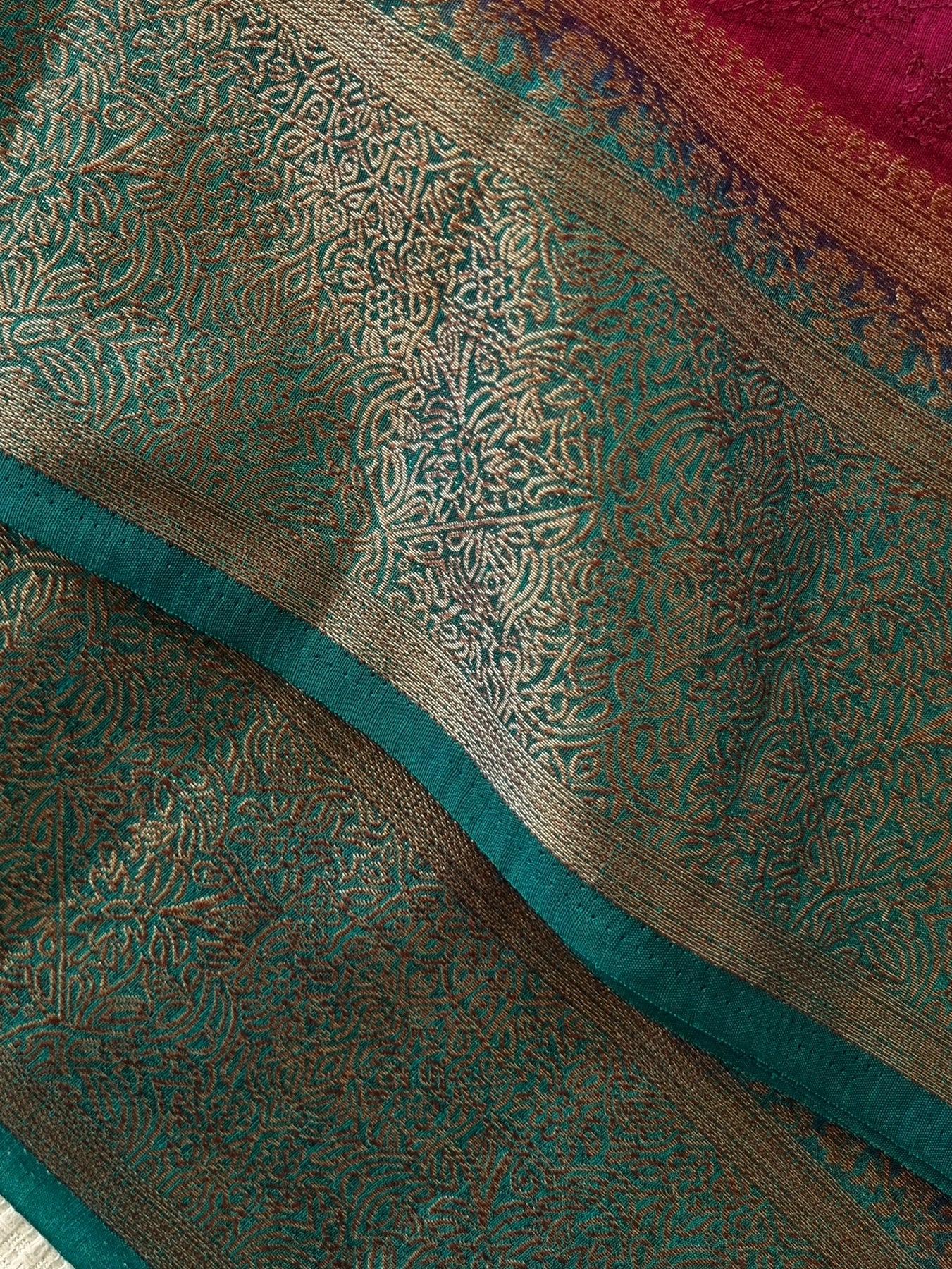 Burgundy Raw Silk Saree with Embroidery and Contrast Teal Pallu