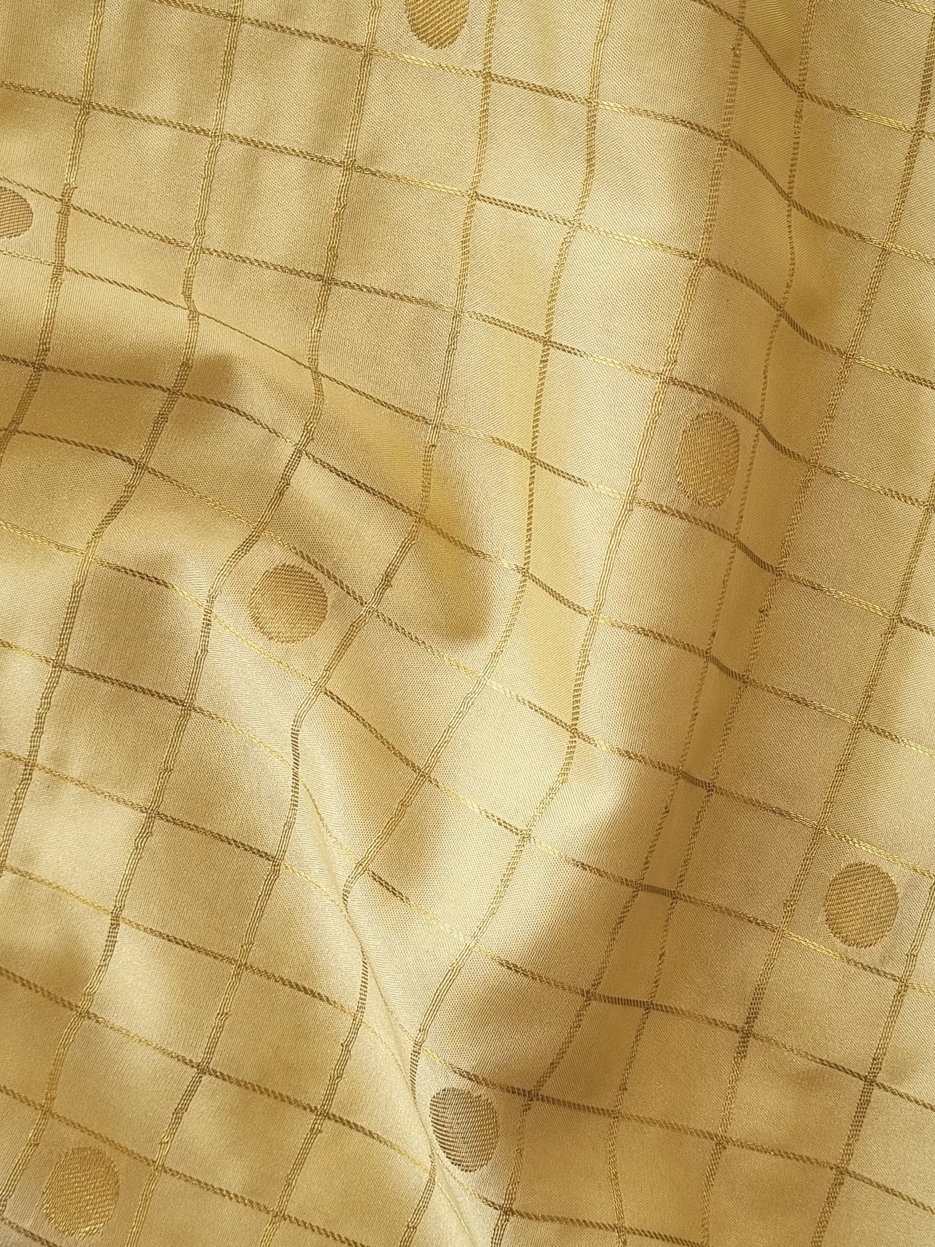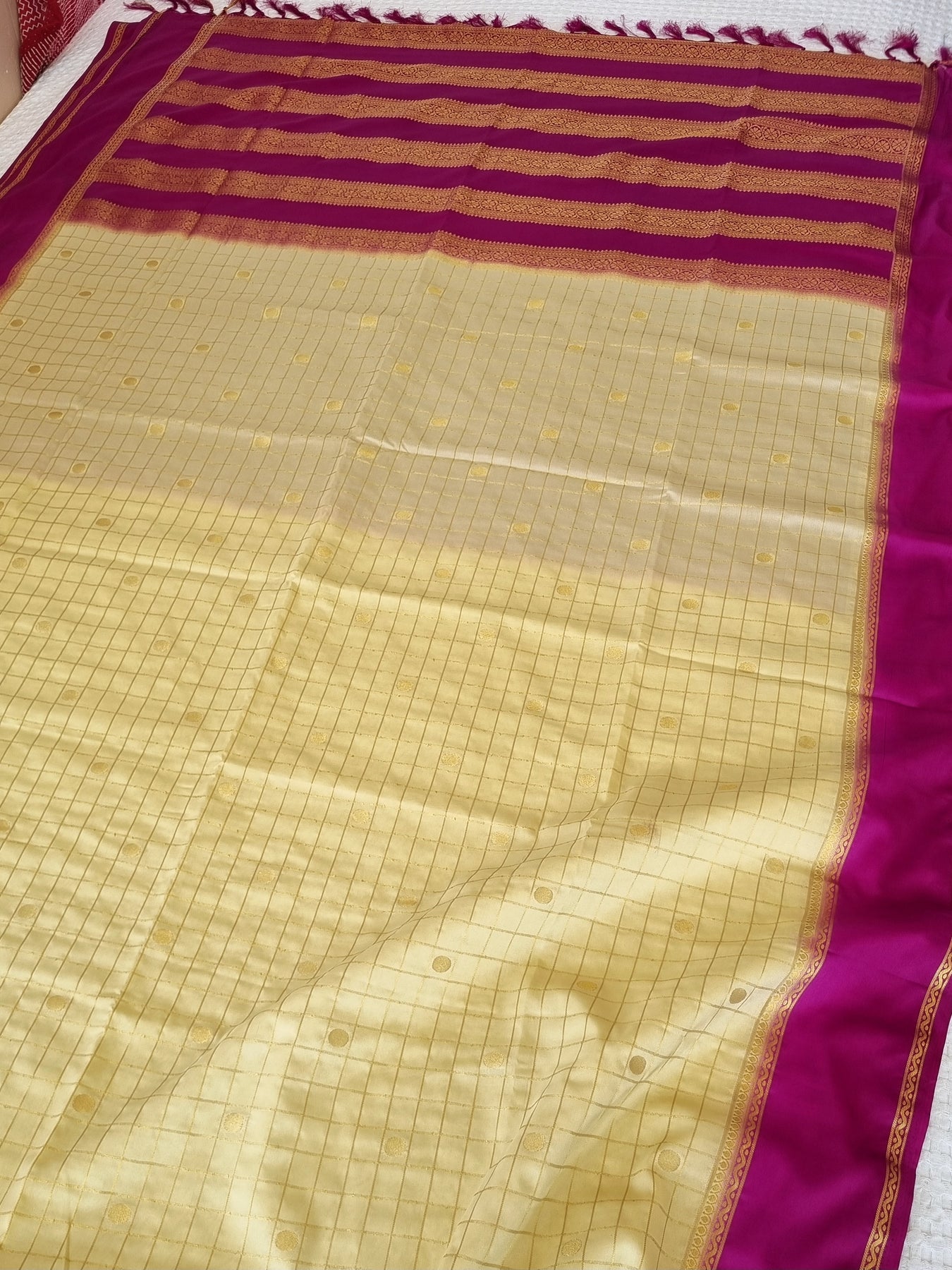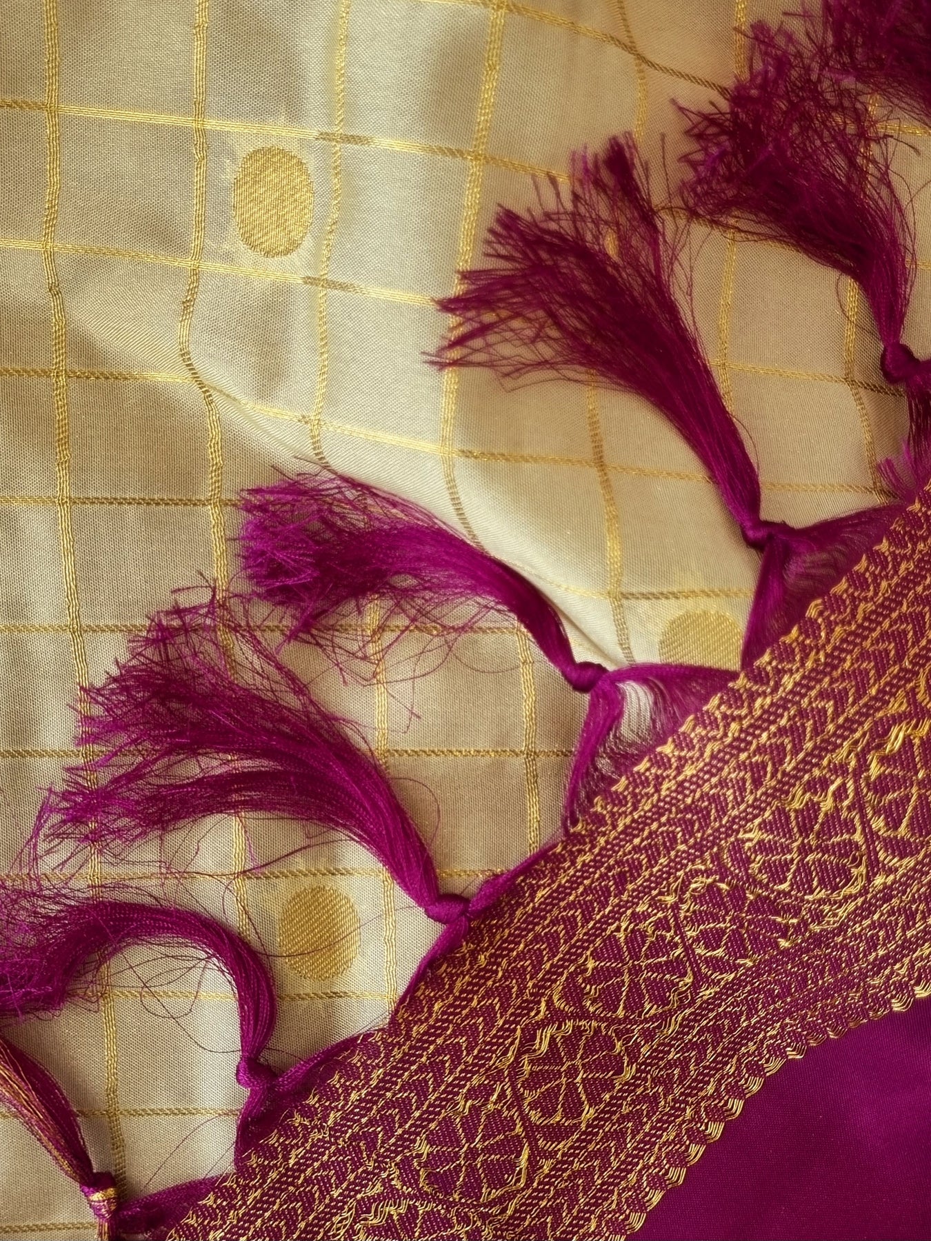 Cream Checked Semi Georgette Saree, with woven borders, paired with a Semi Silk Blouse fabric