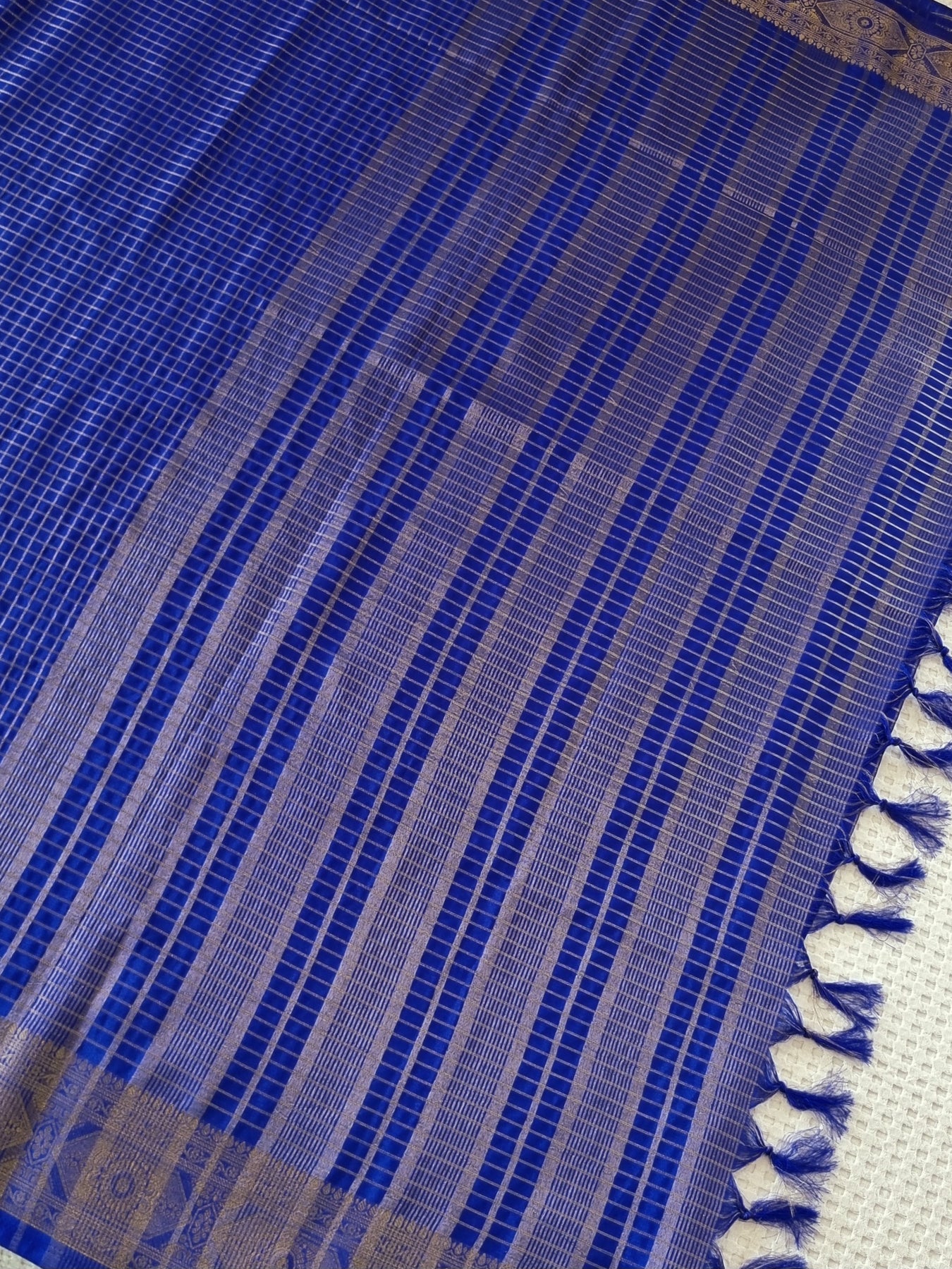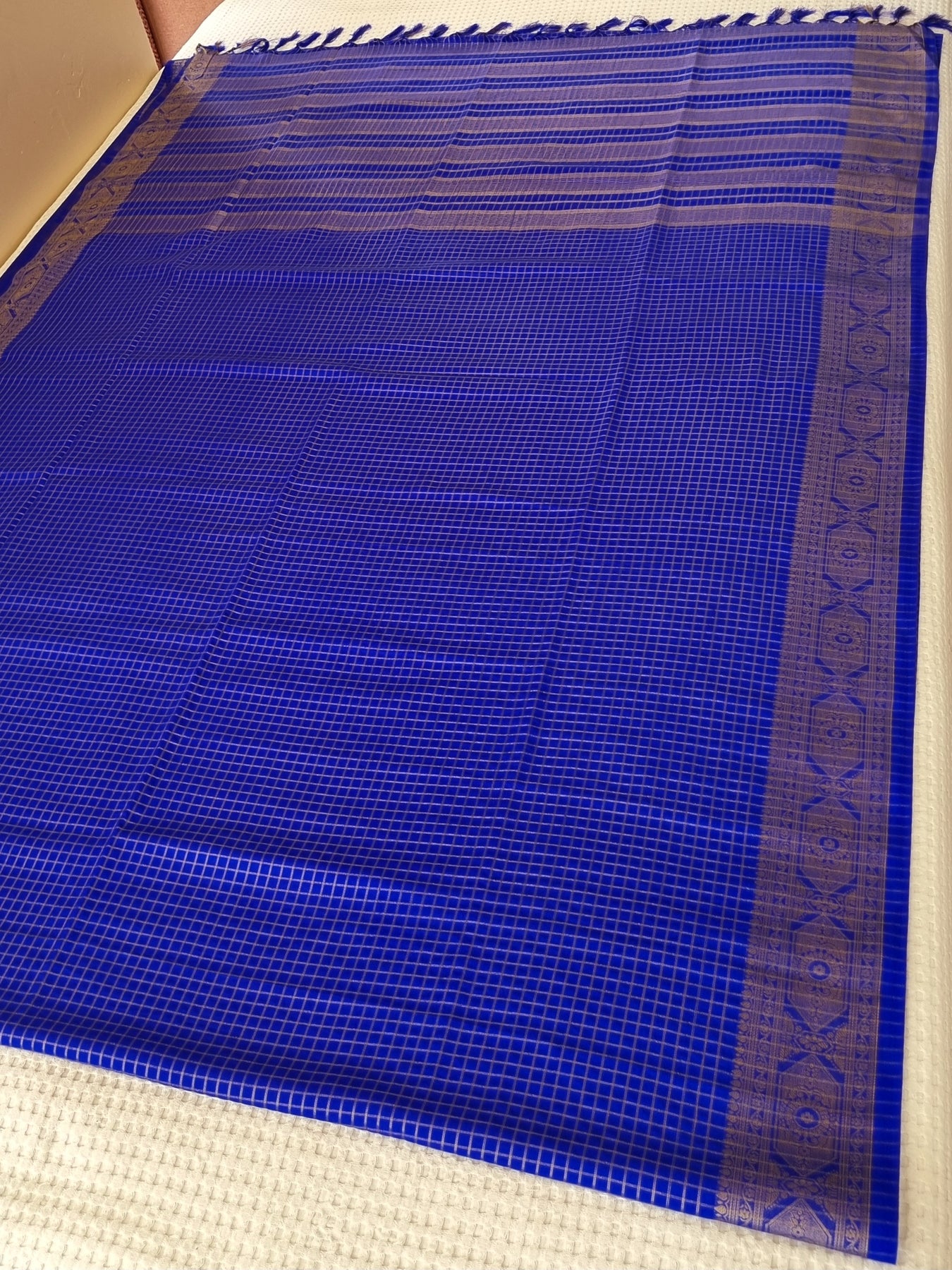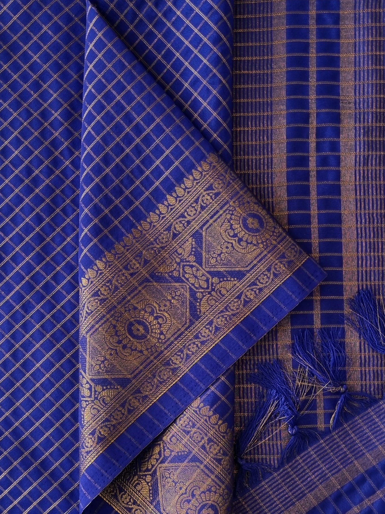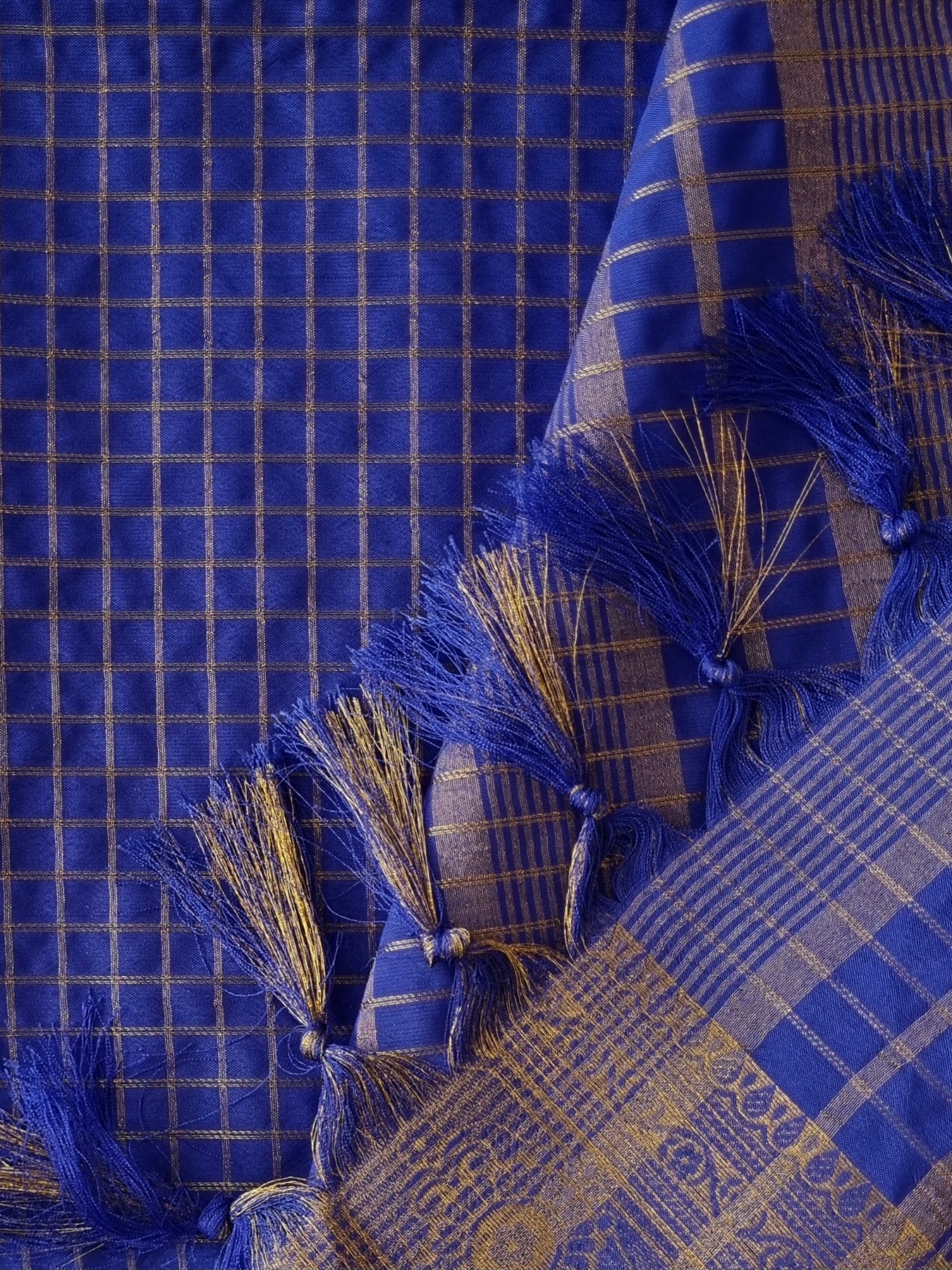 • An elegant Semi Silk Saree with Zari checks on the body and, beautifully finished with tassels