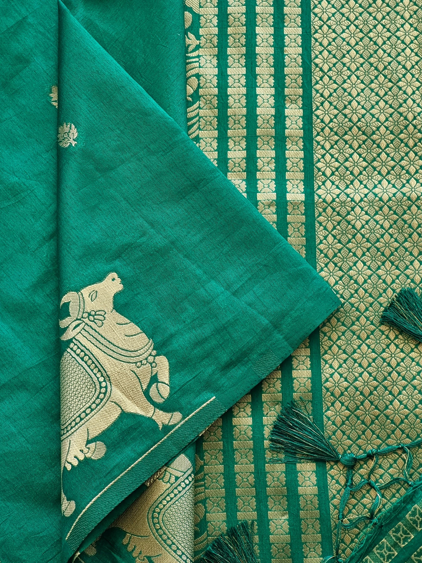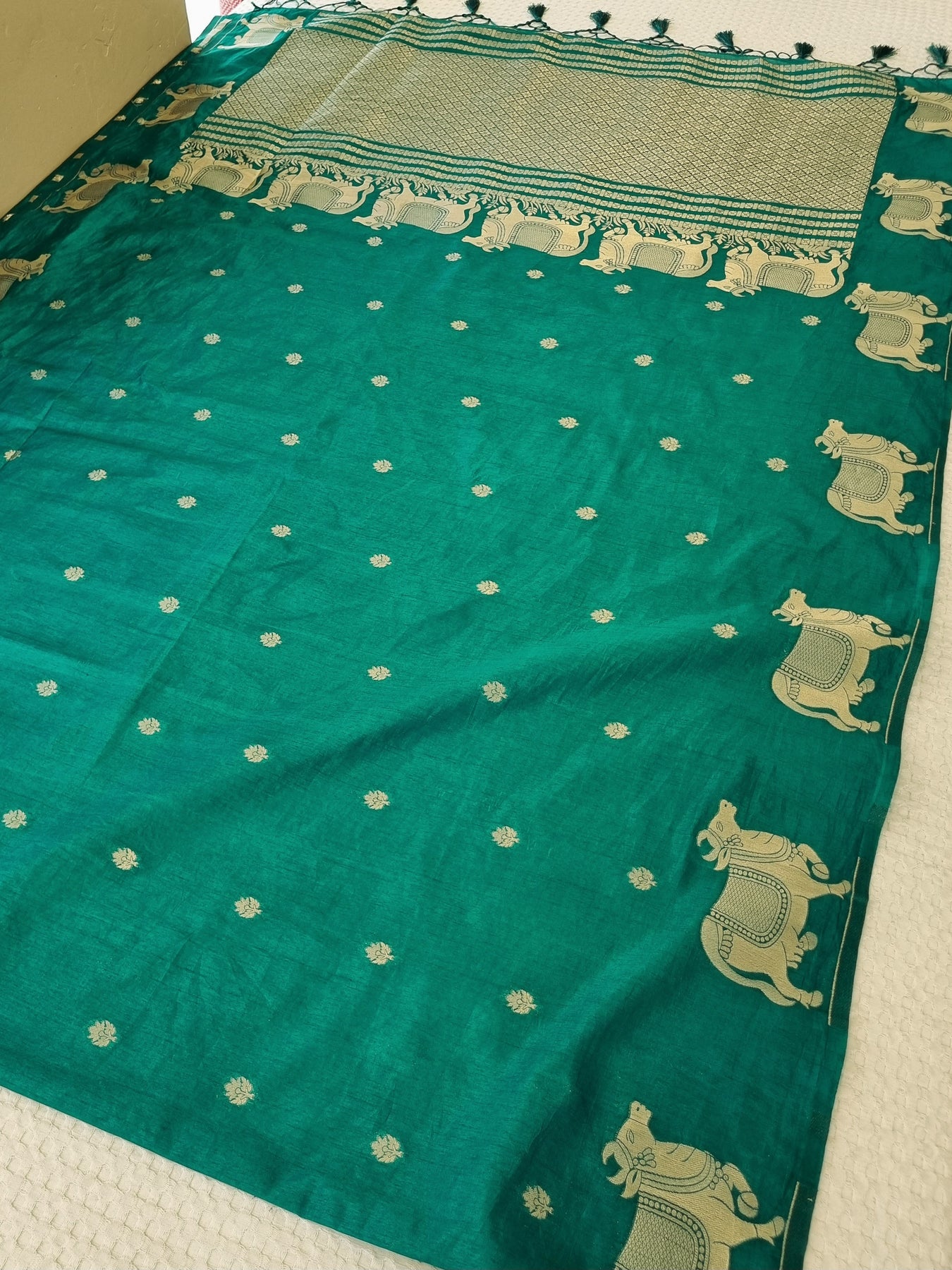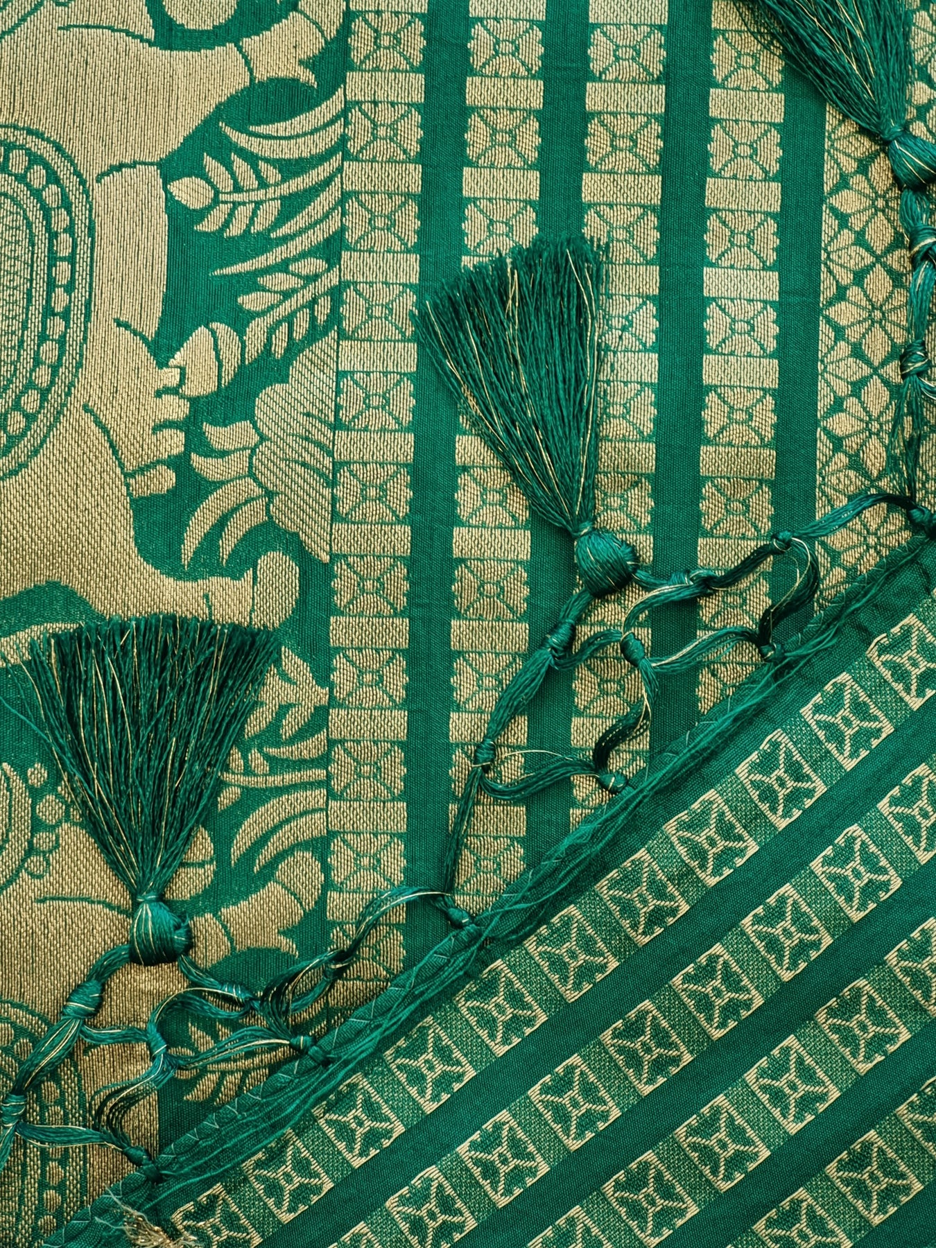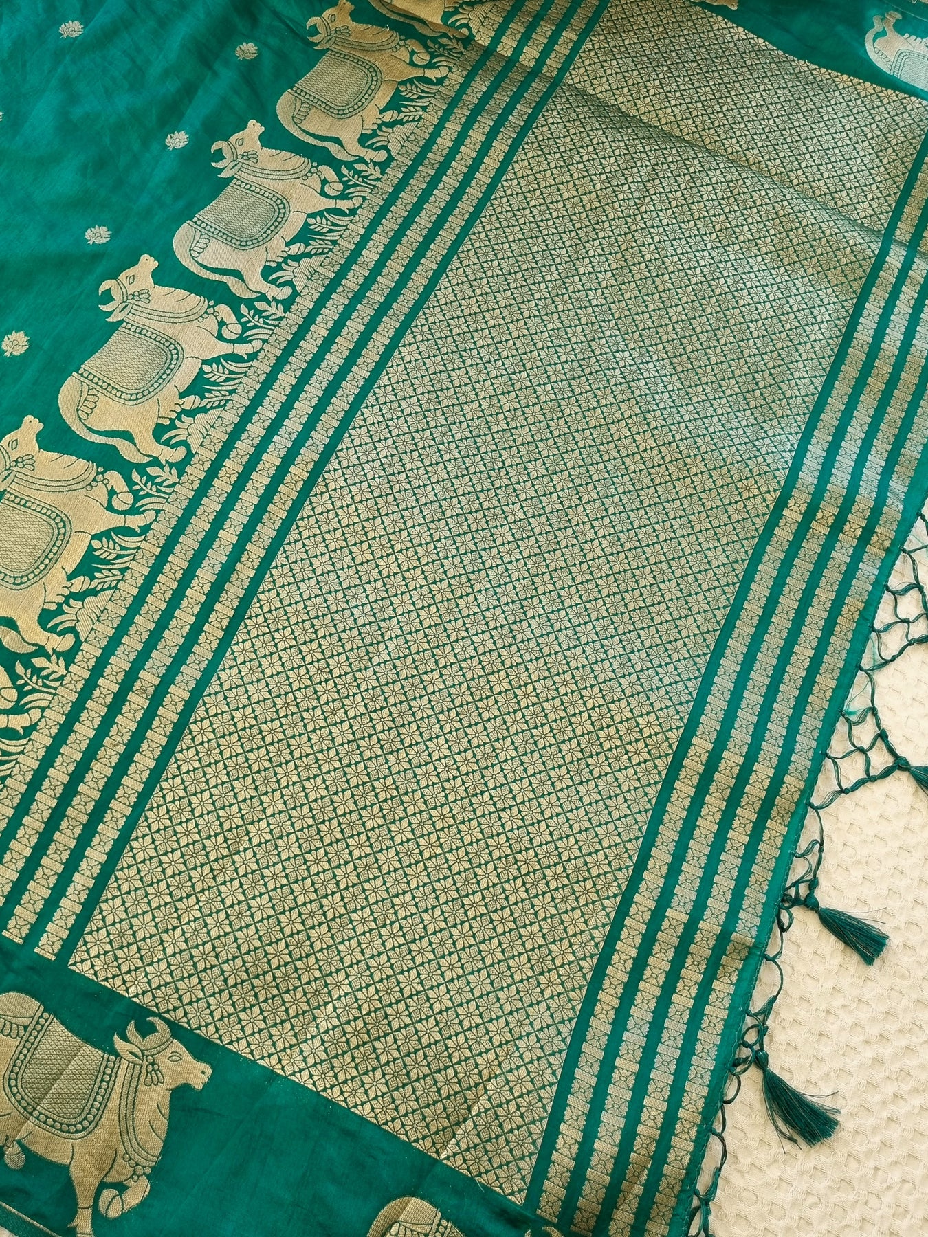 Teal Silk Saree with Woven Borders