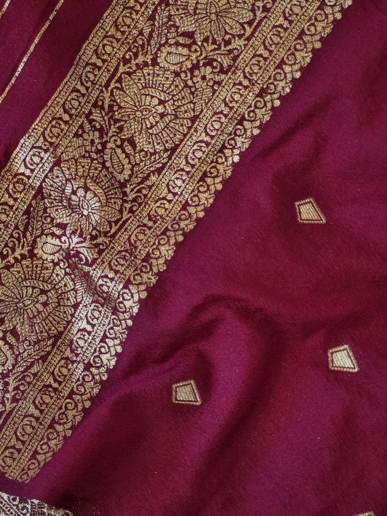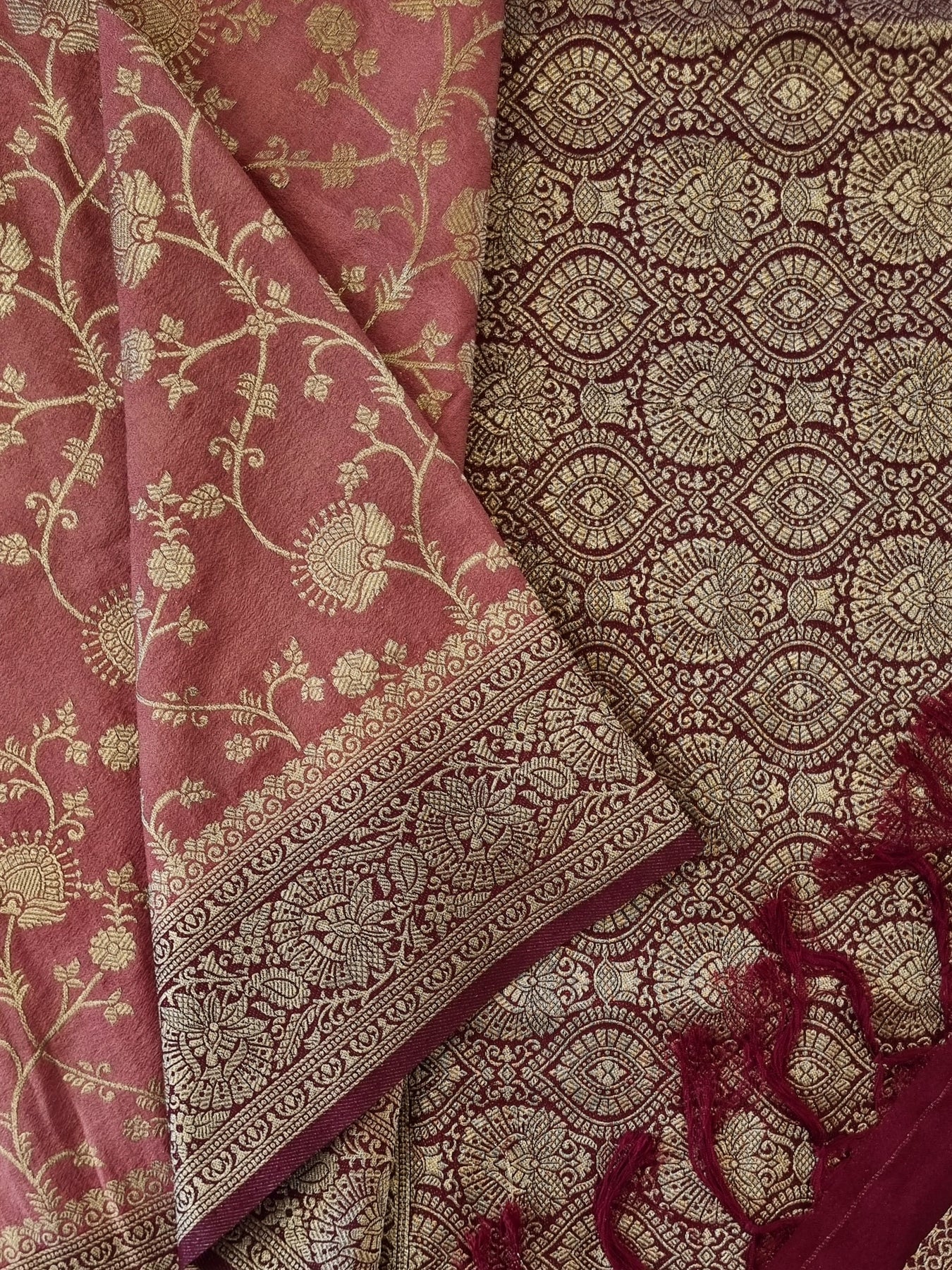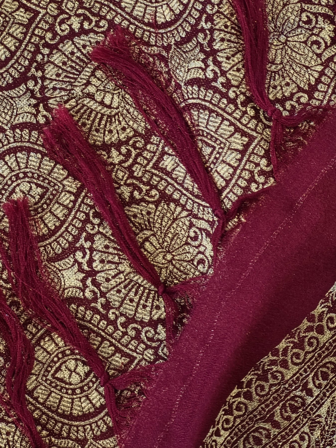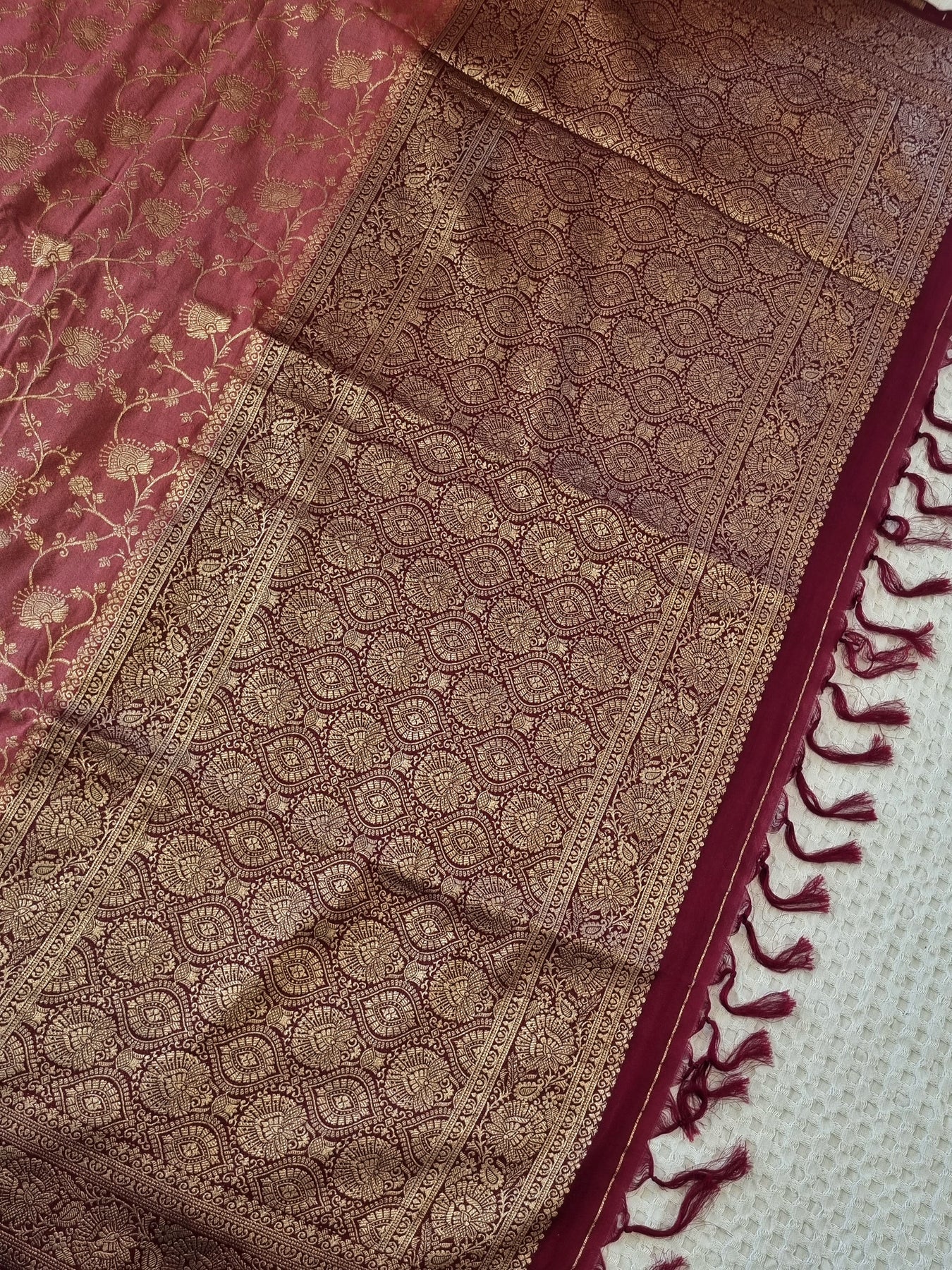 The beautiful Gold zari patterns on the body pallu elevates the style quotient