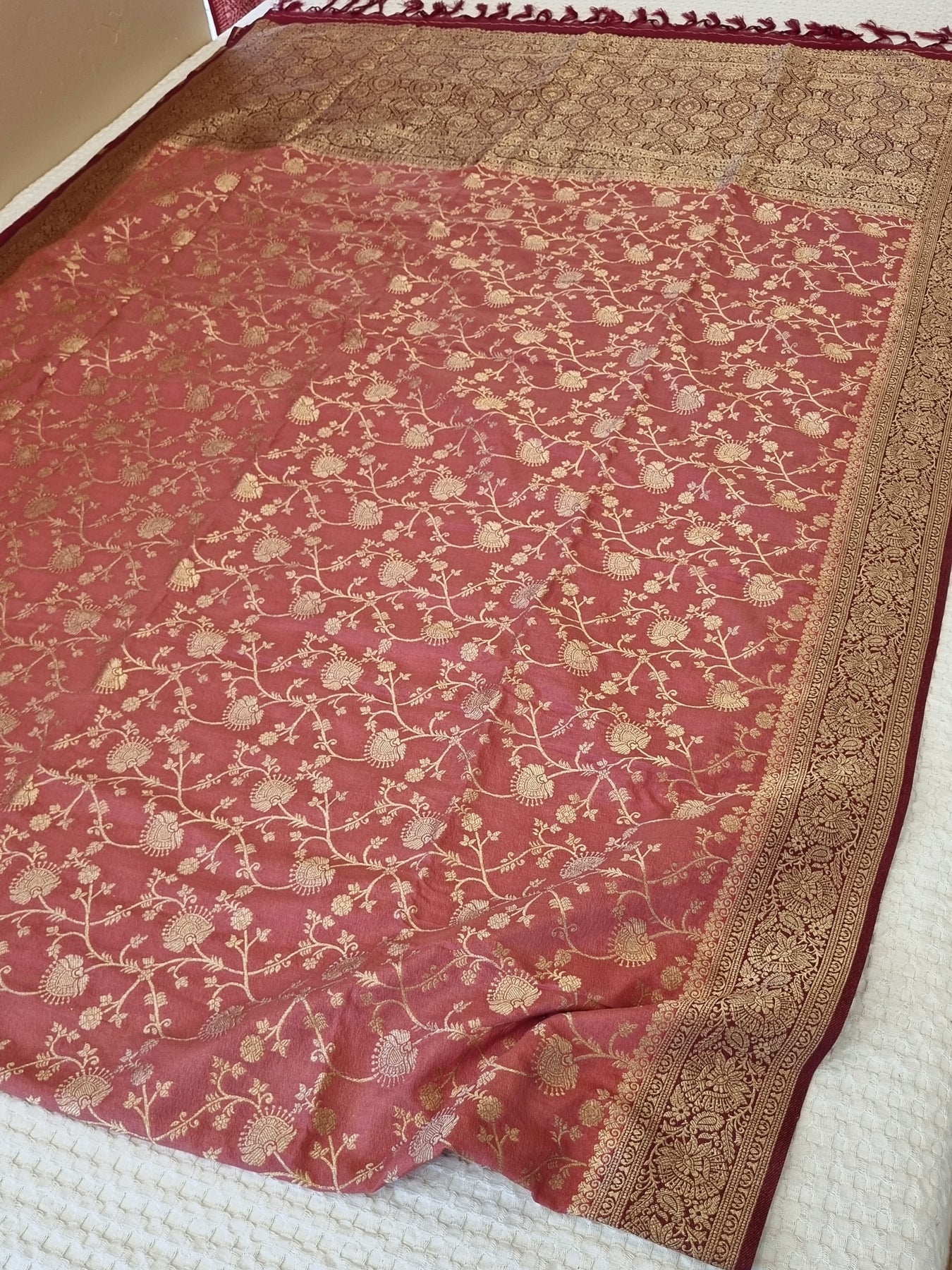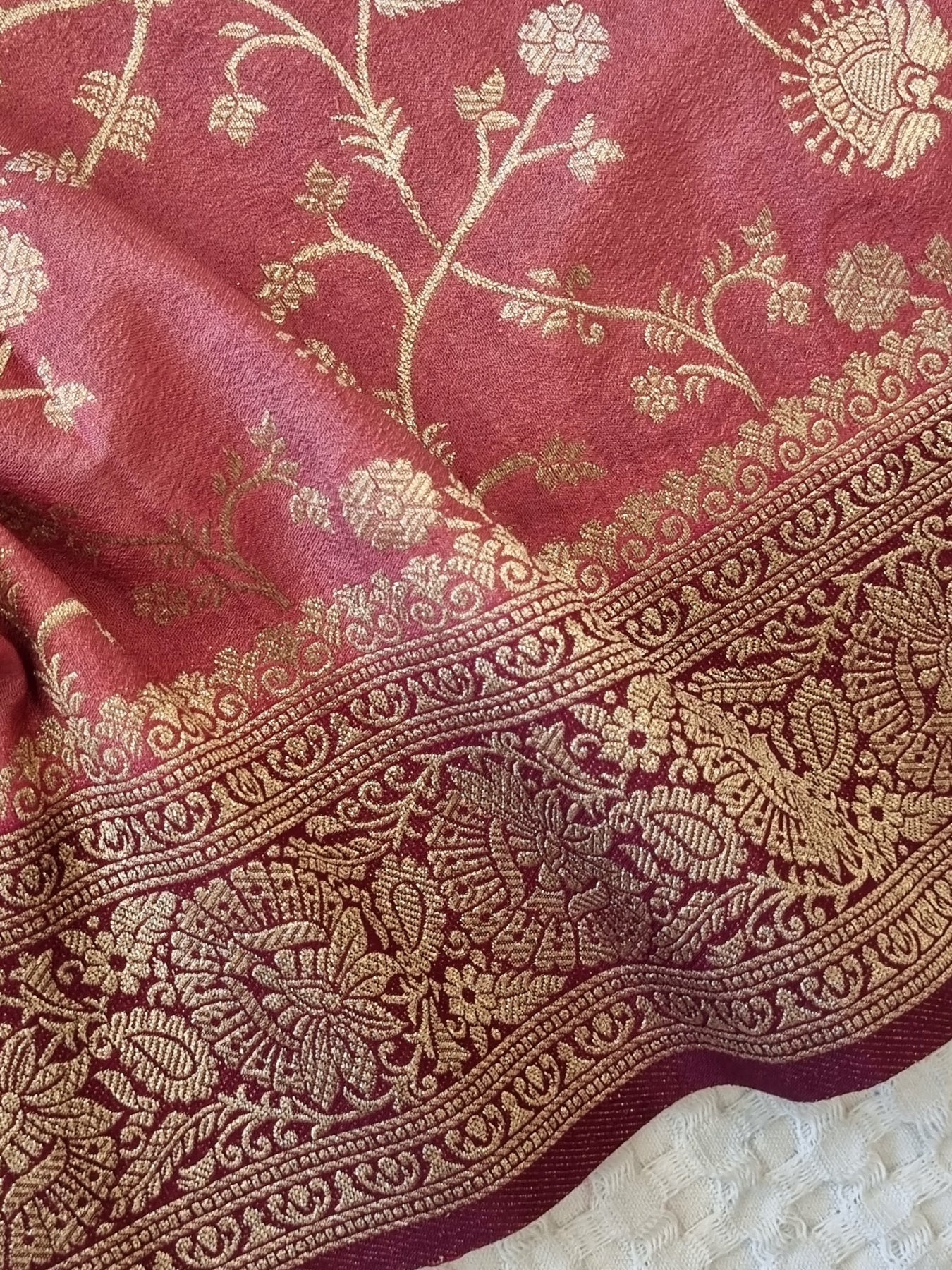 An elegant Mauve Semi Crepe Silk Saree with Gold borders