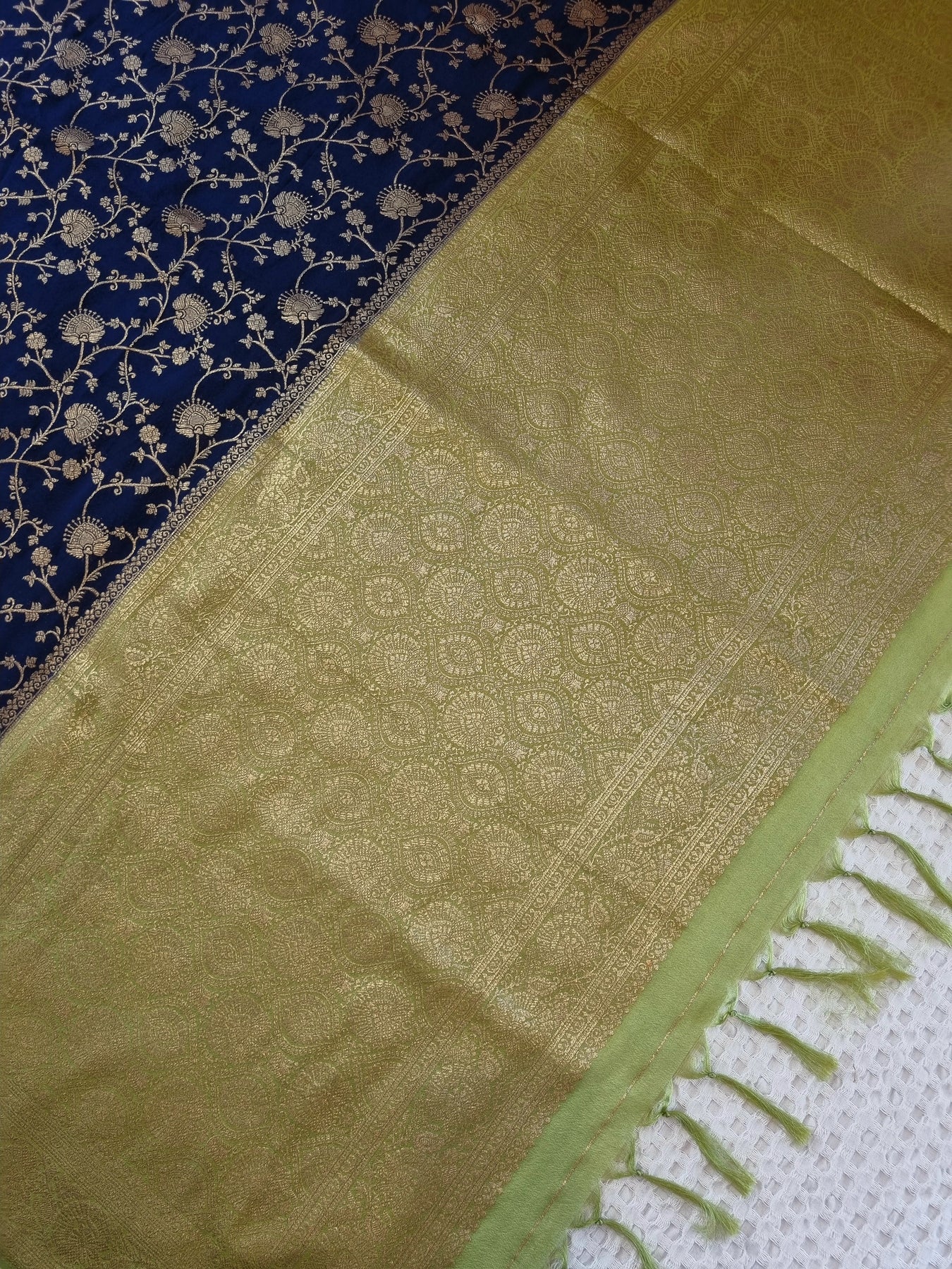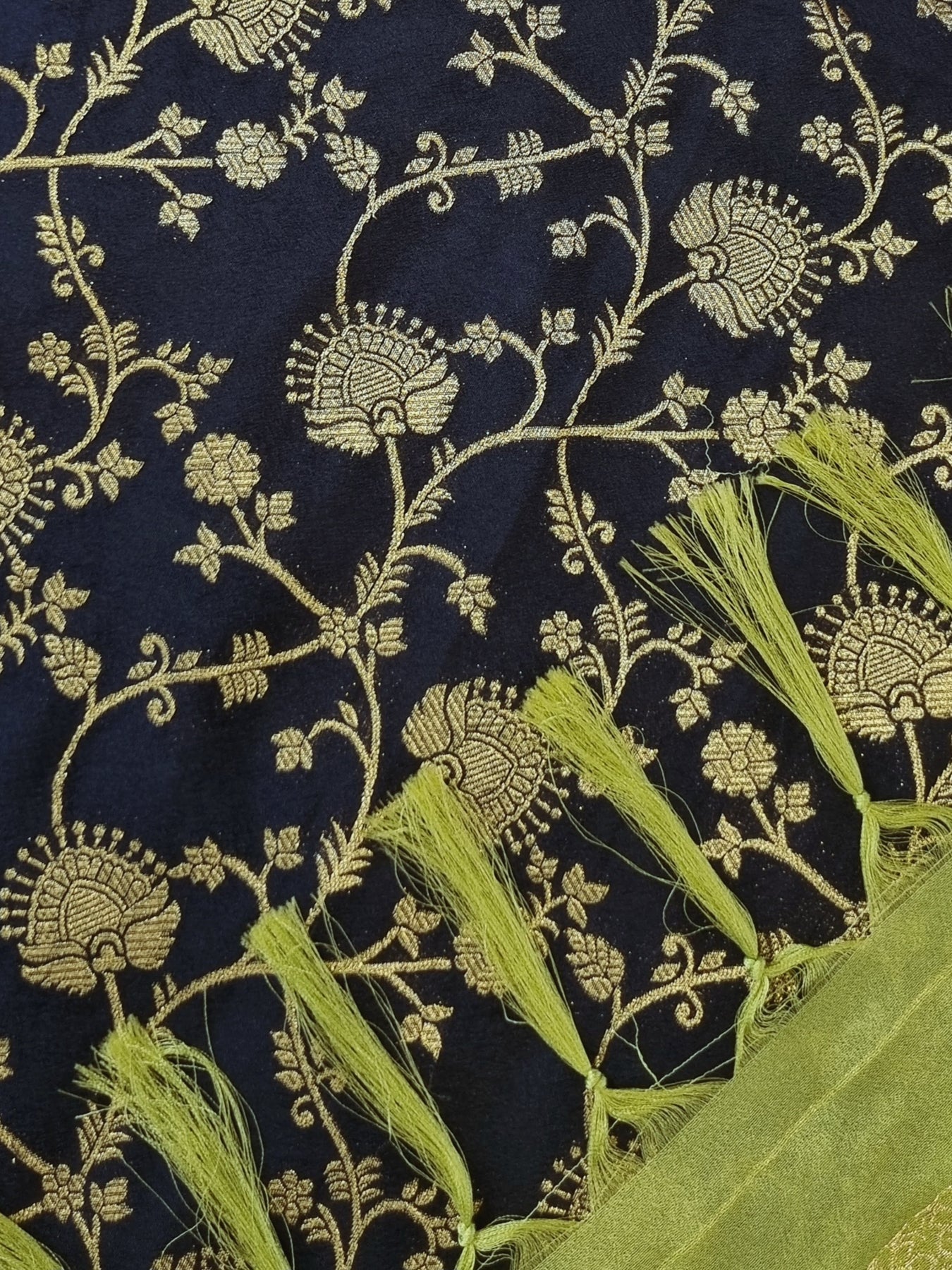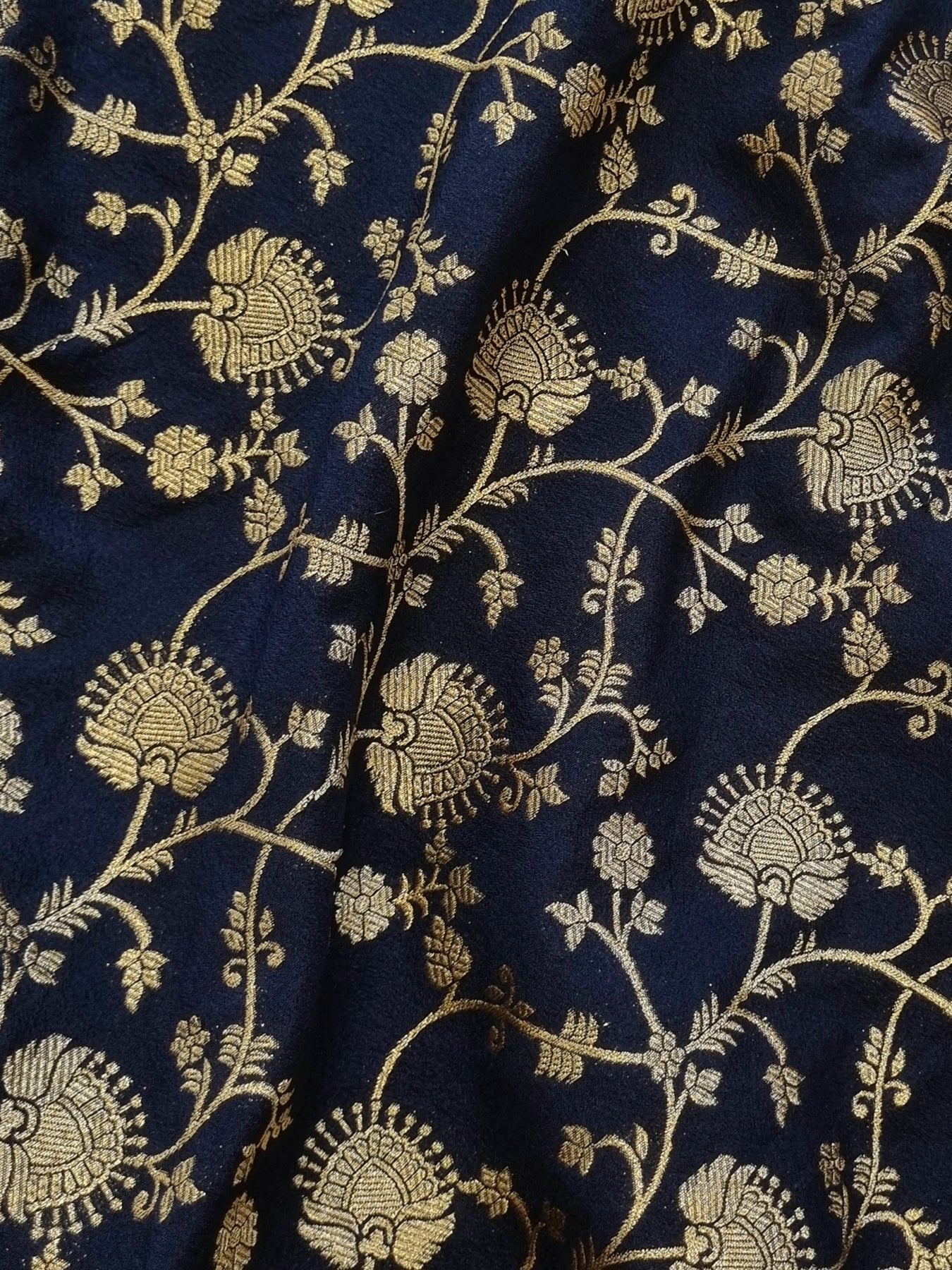 An elegant Blue Semi Crepe Silk Saree with Gold borders