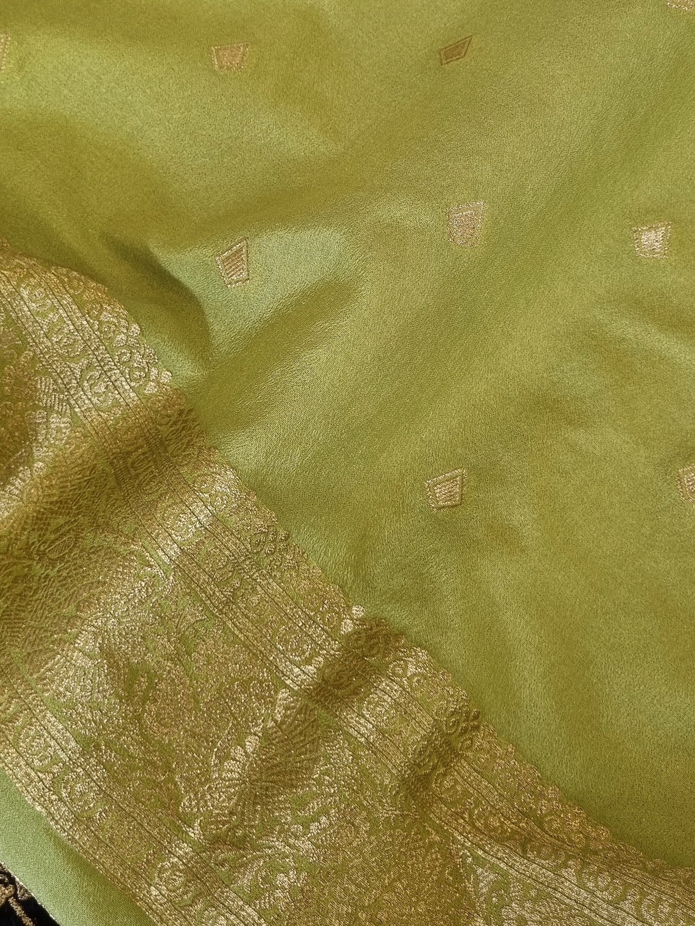 The beautiful Gold zari patterns on the body pallu elevates the style quotient