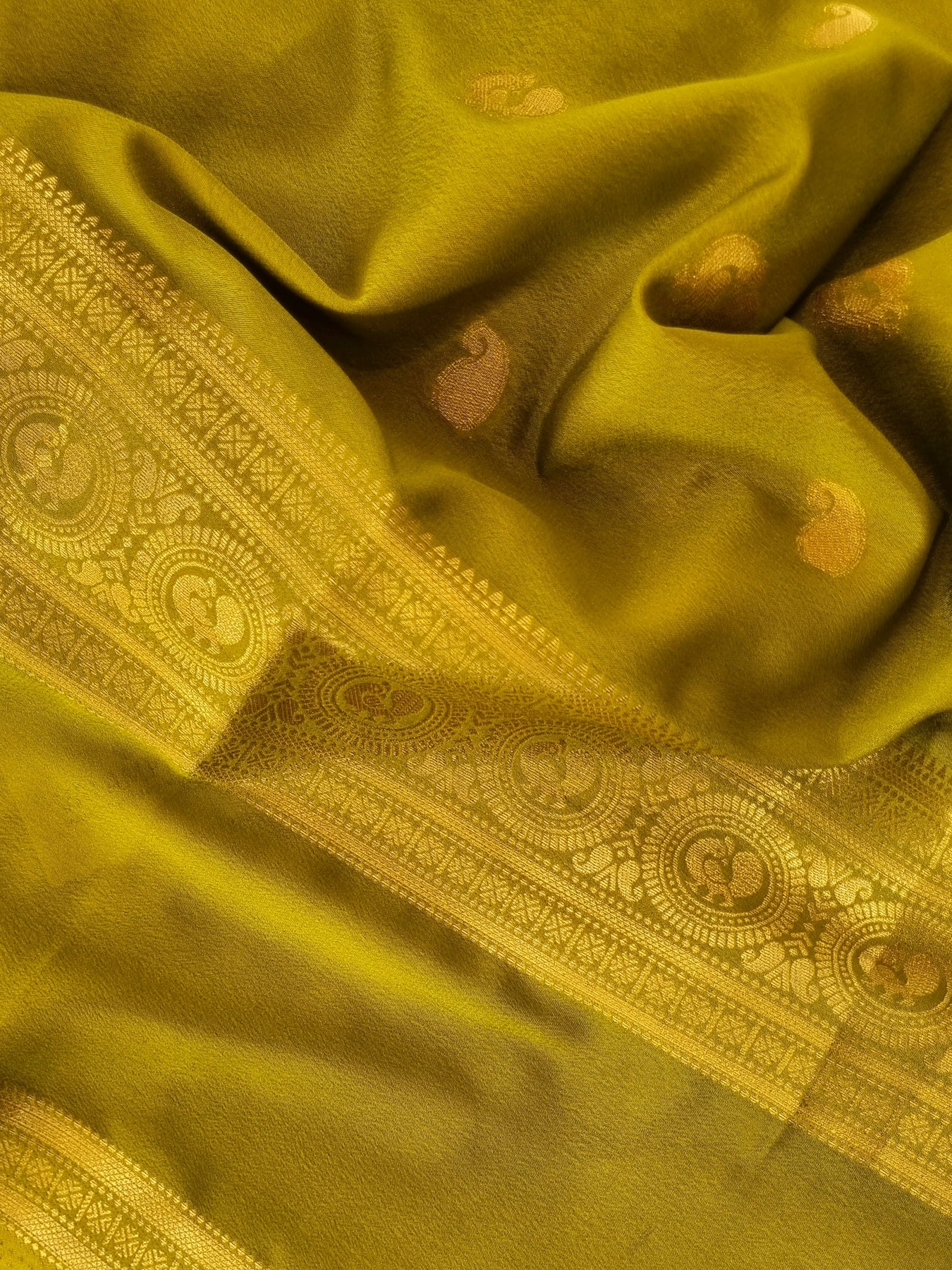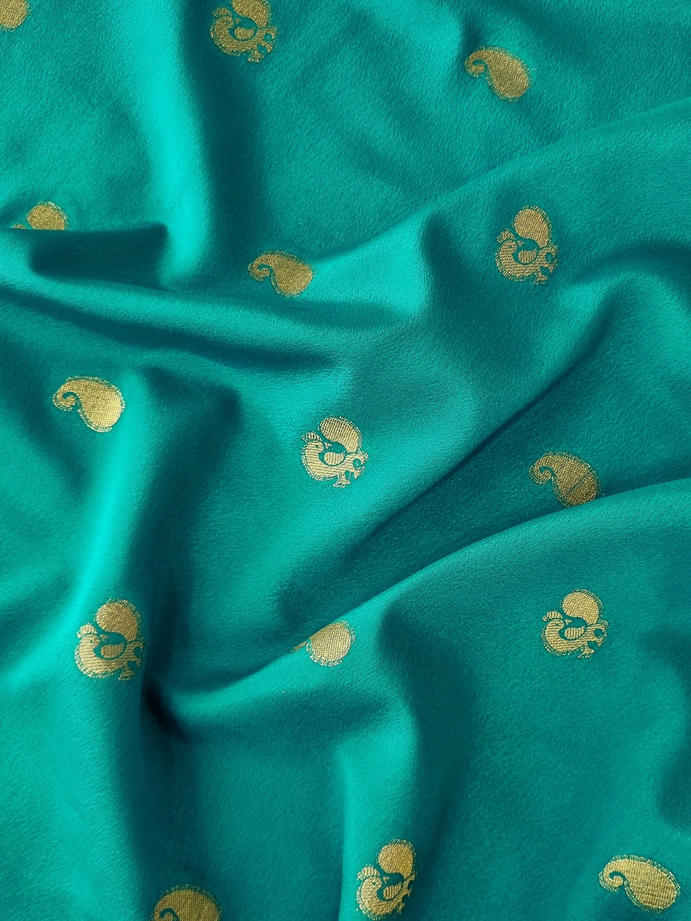 The beautiful Gold Zari Motifs on the body and pallu elevates the style quotient