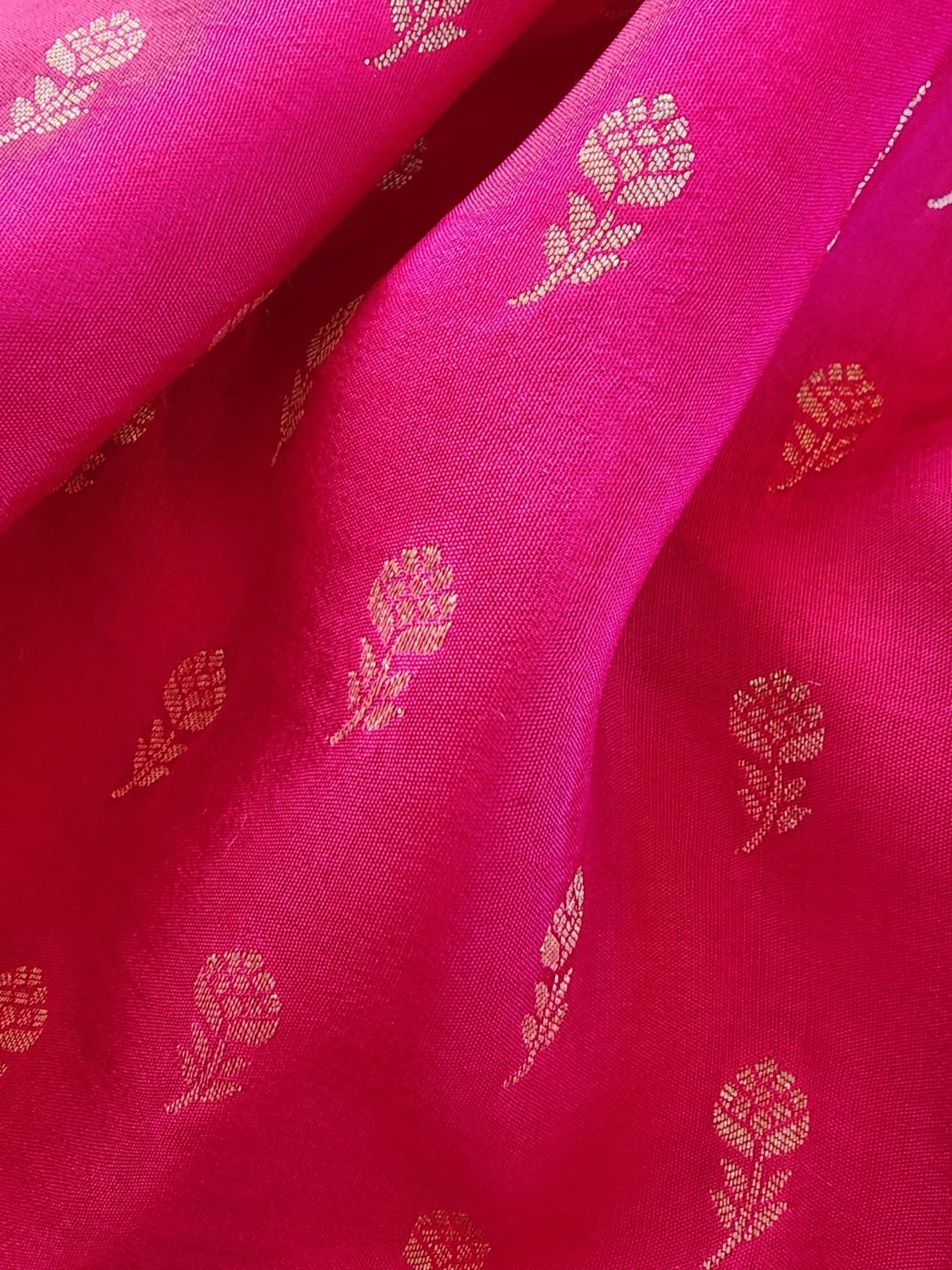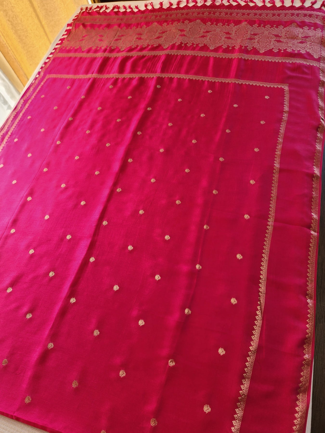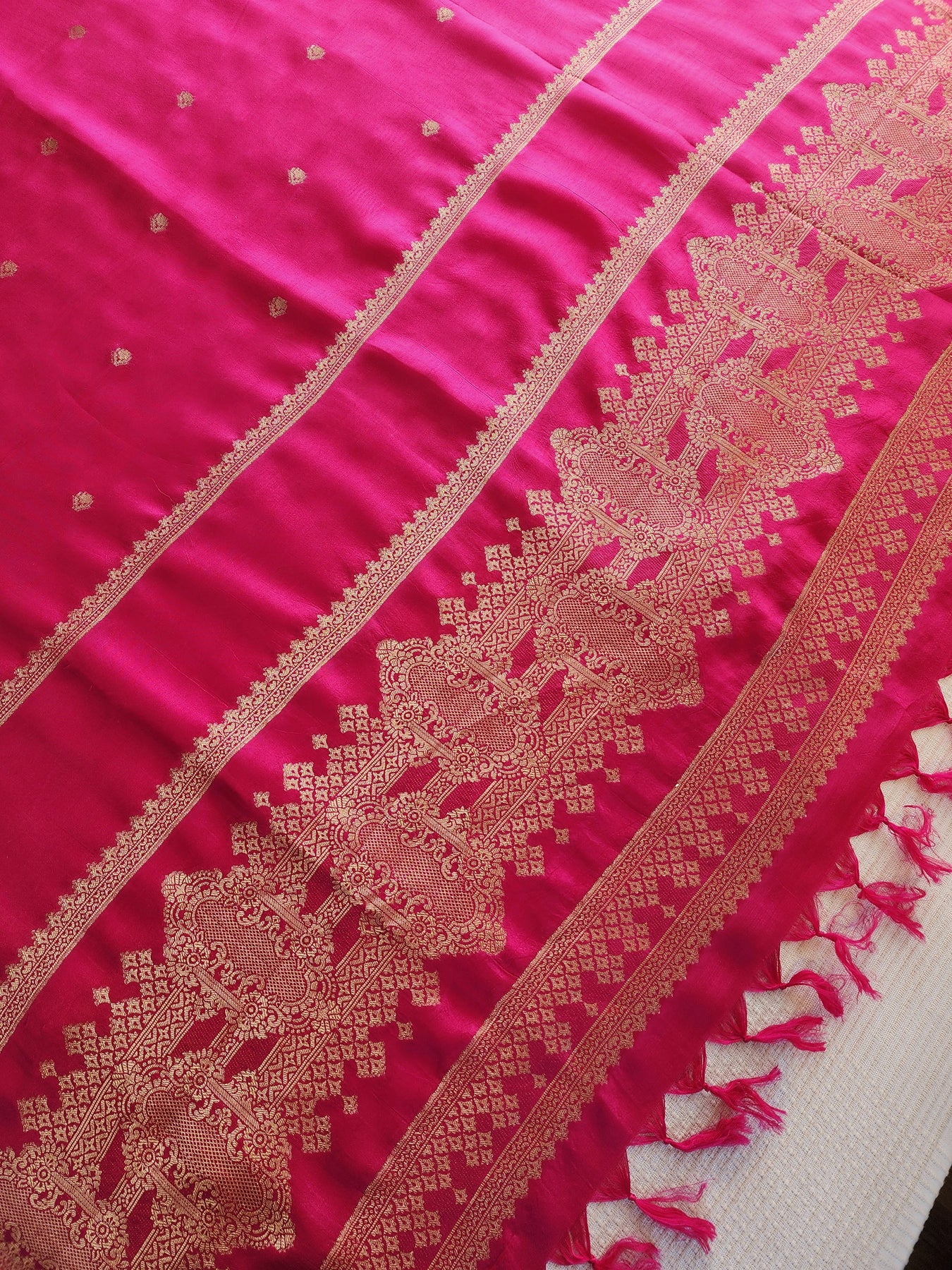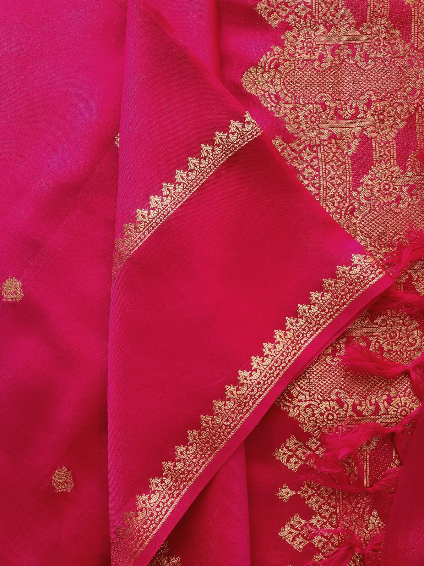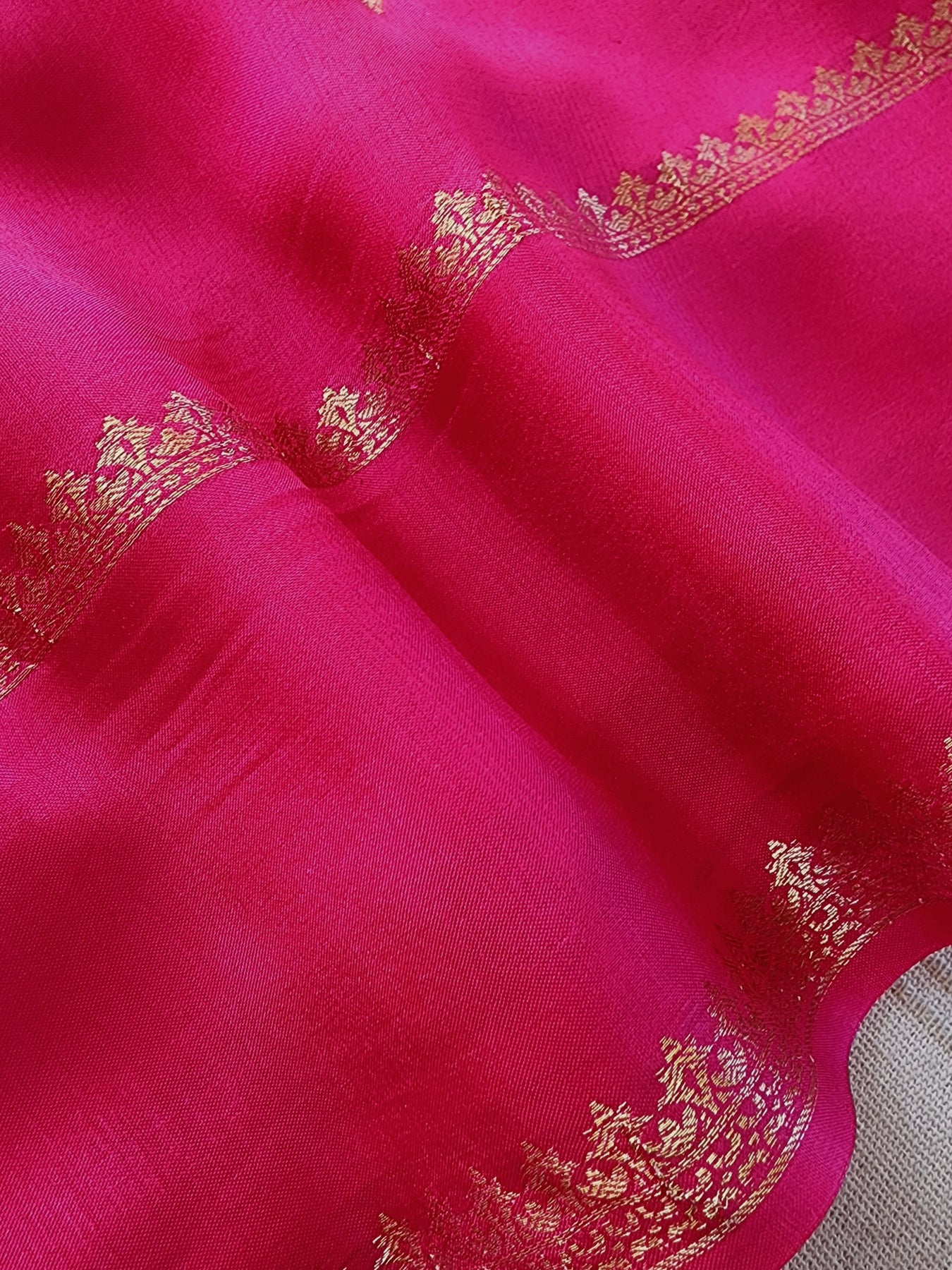 Rani Pink Crepe Silk Saree with Woven Borders