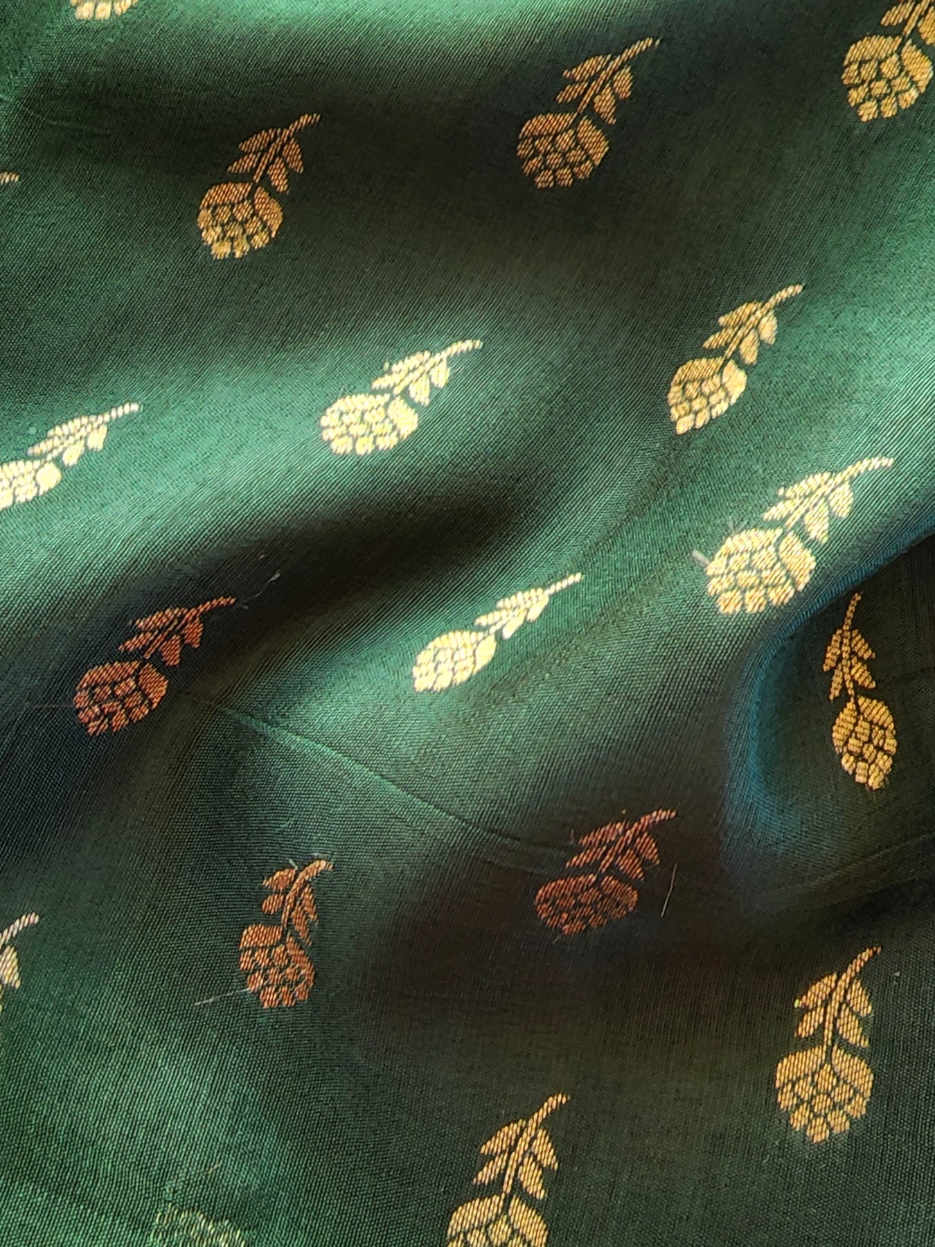 Semi Crepe Silk Saree, with woven borders, paired with a Contrast Blouse fabric