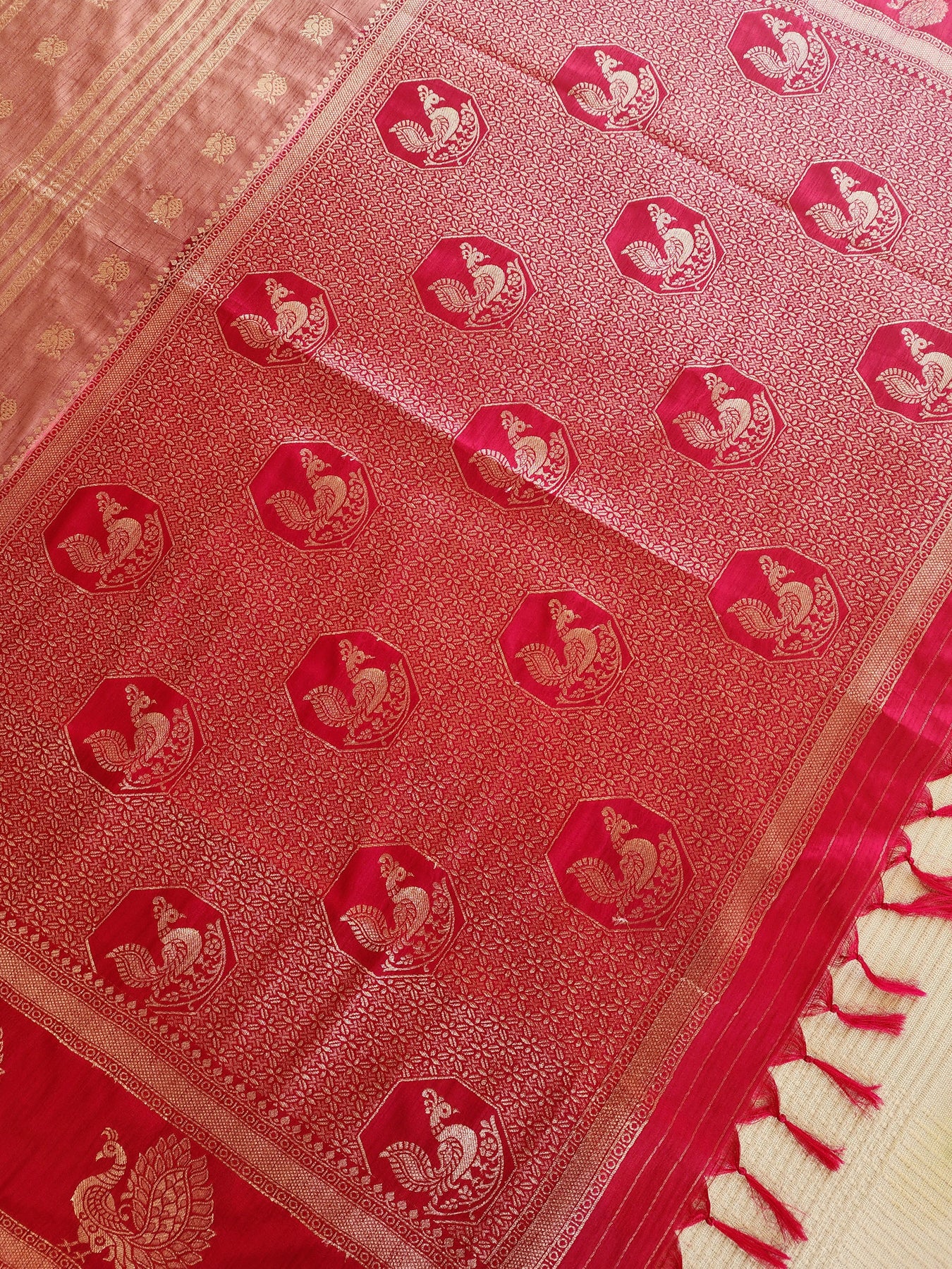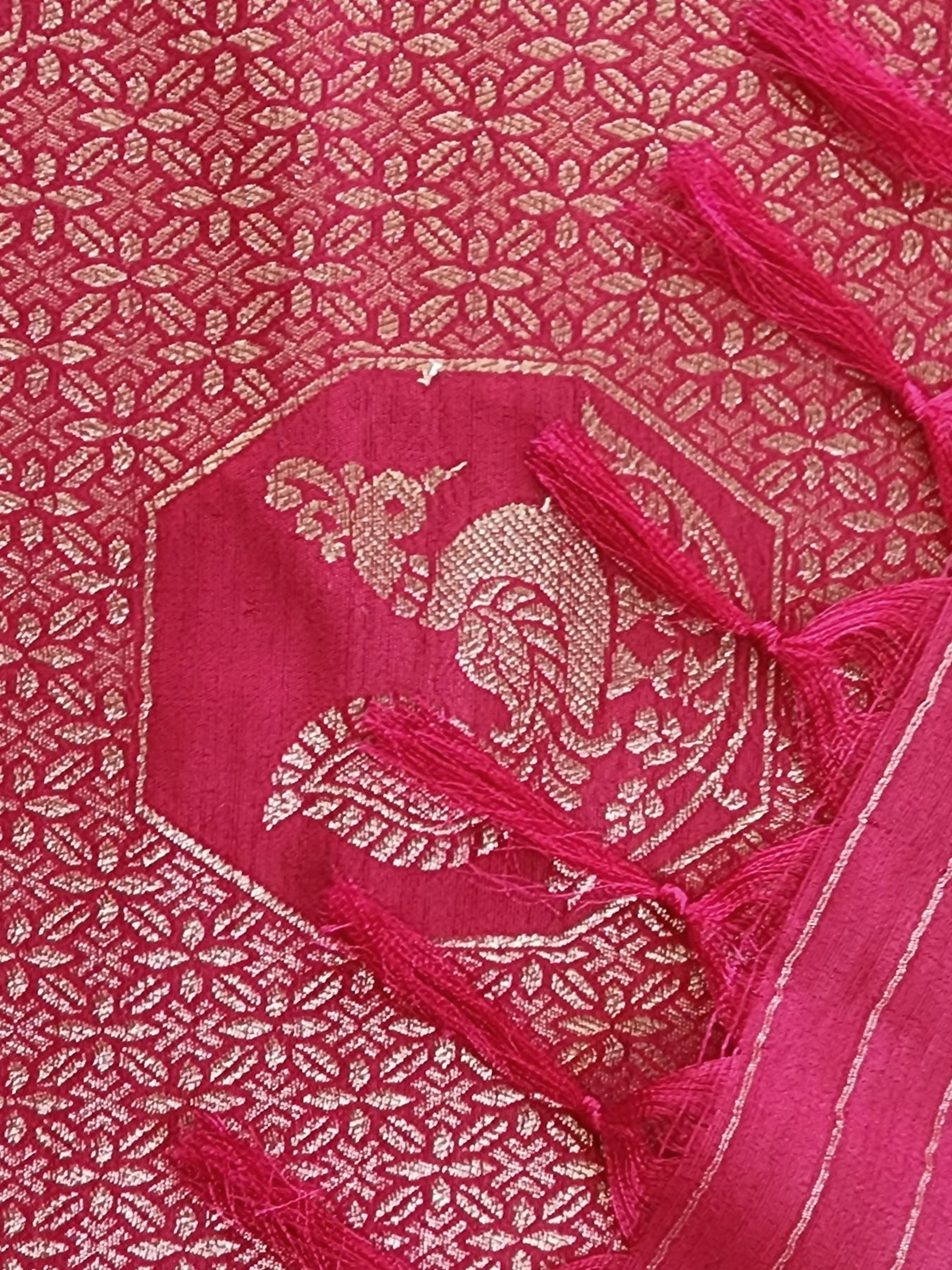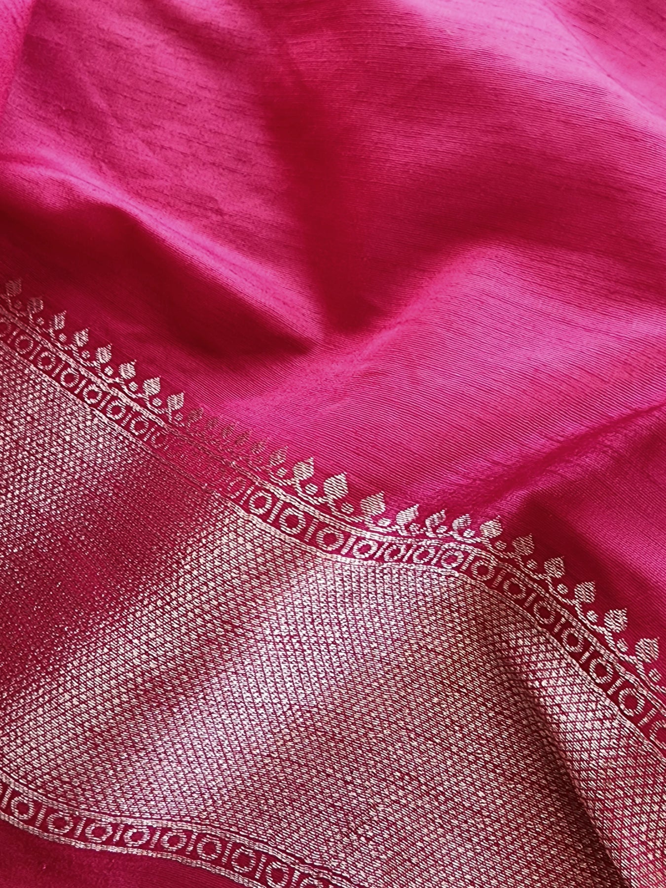 • Pink Semi Silk Saree with contrast borders and pallu, beautifully finished with tassels