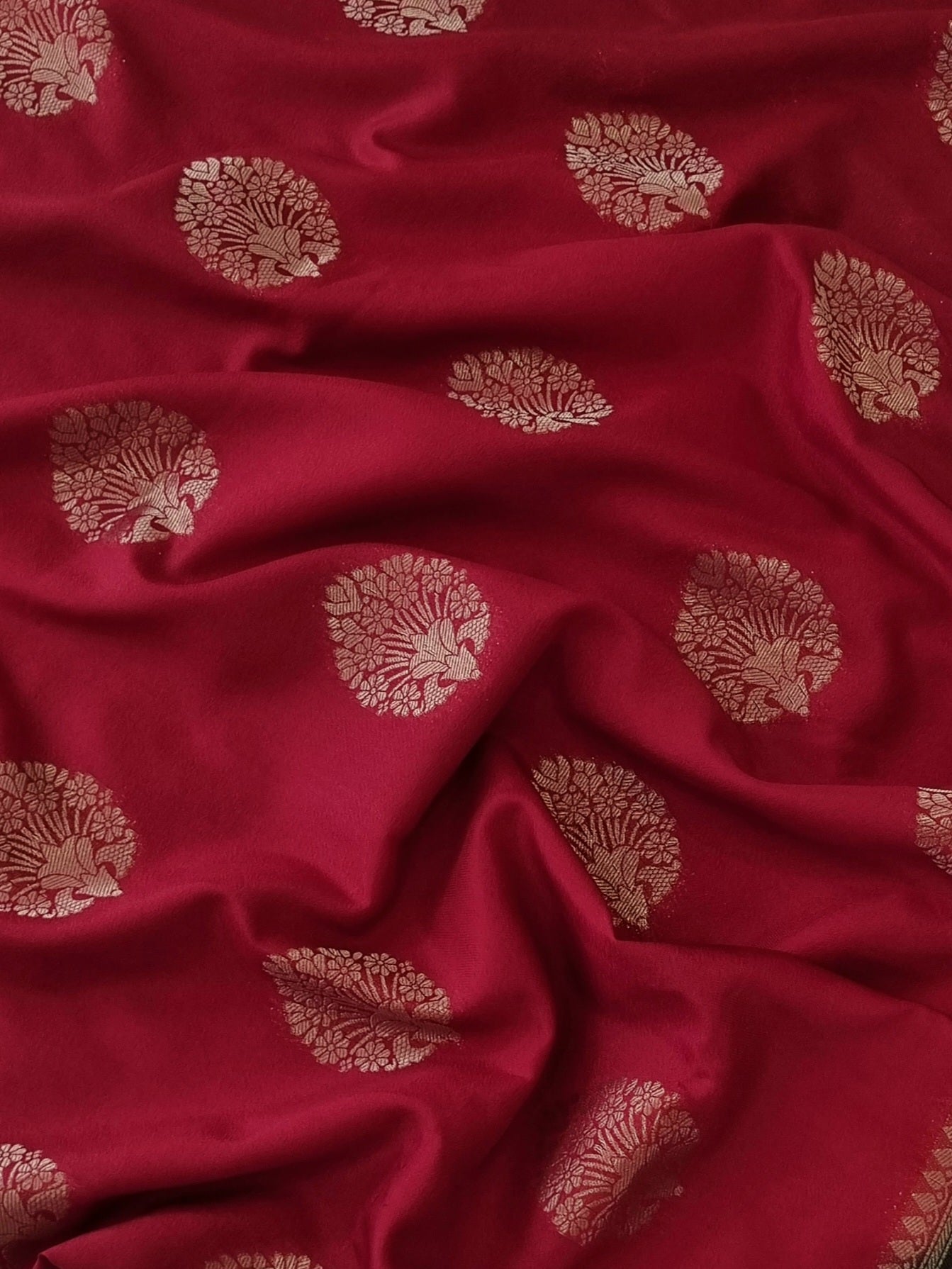 An elegant Red Semi Georgette Silk Saree with Contrast borders