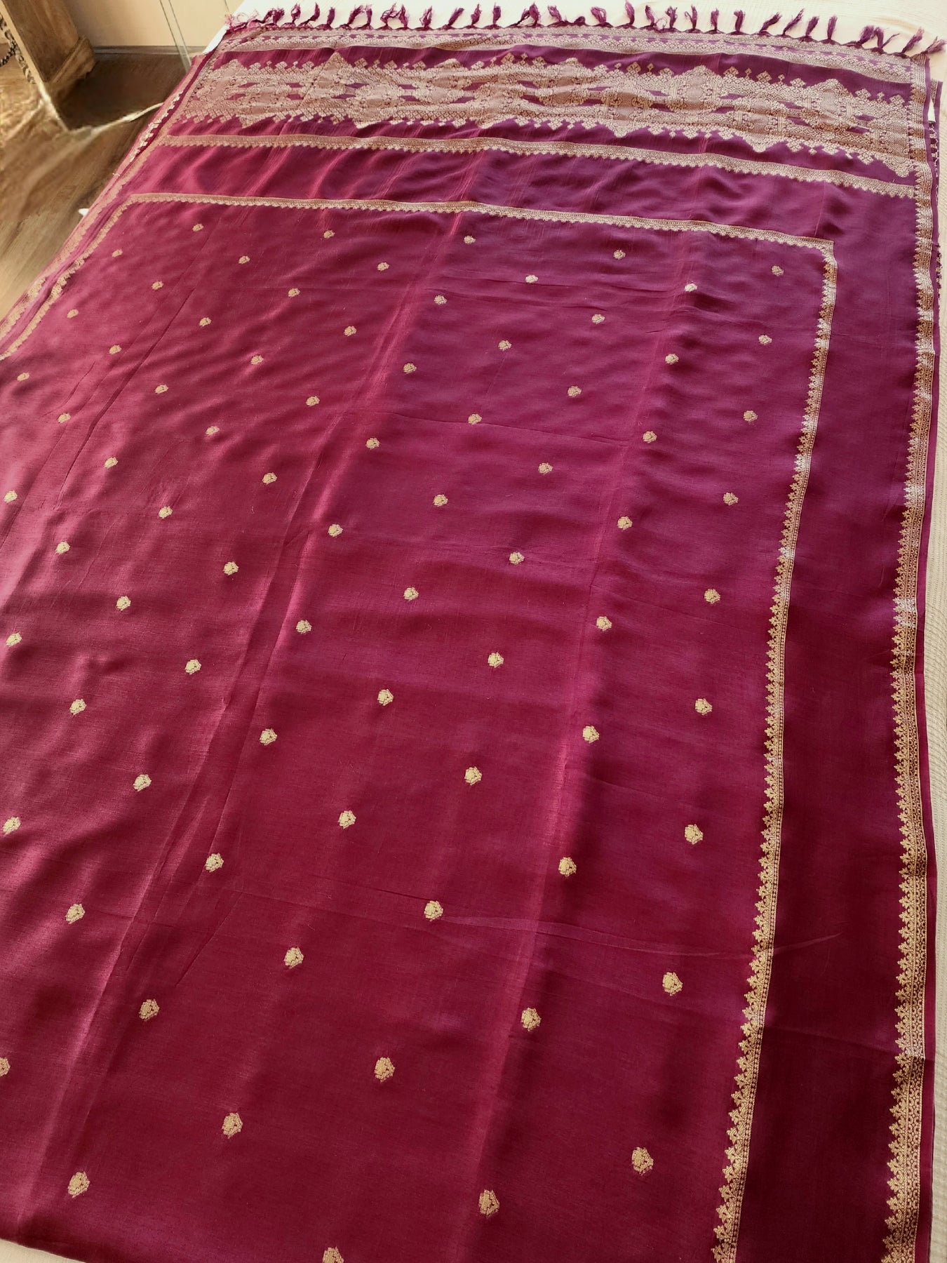 • Semi Georgette Saree, with woven borders, paired with a Semi Silk Blouse fabric