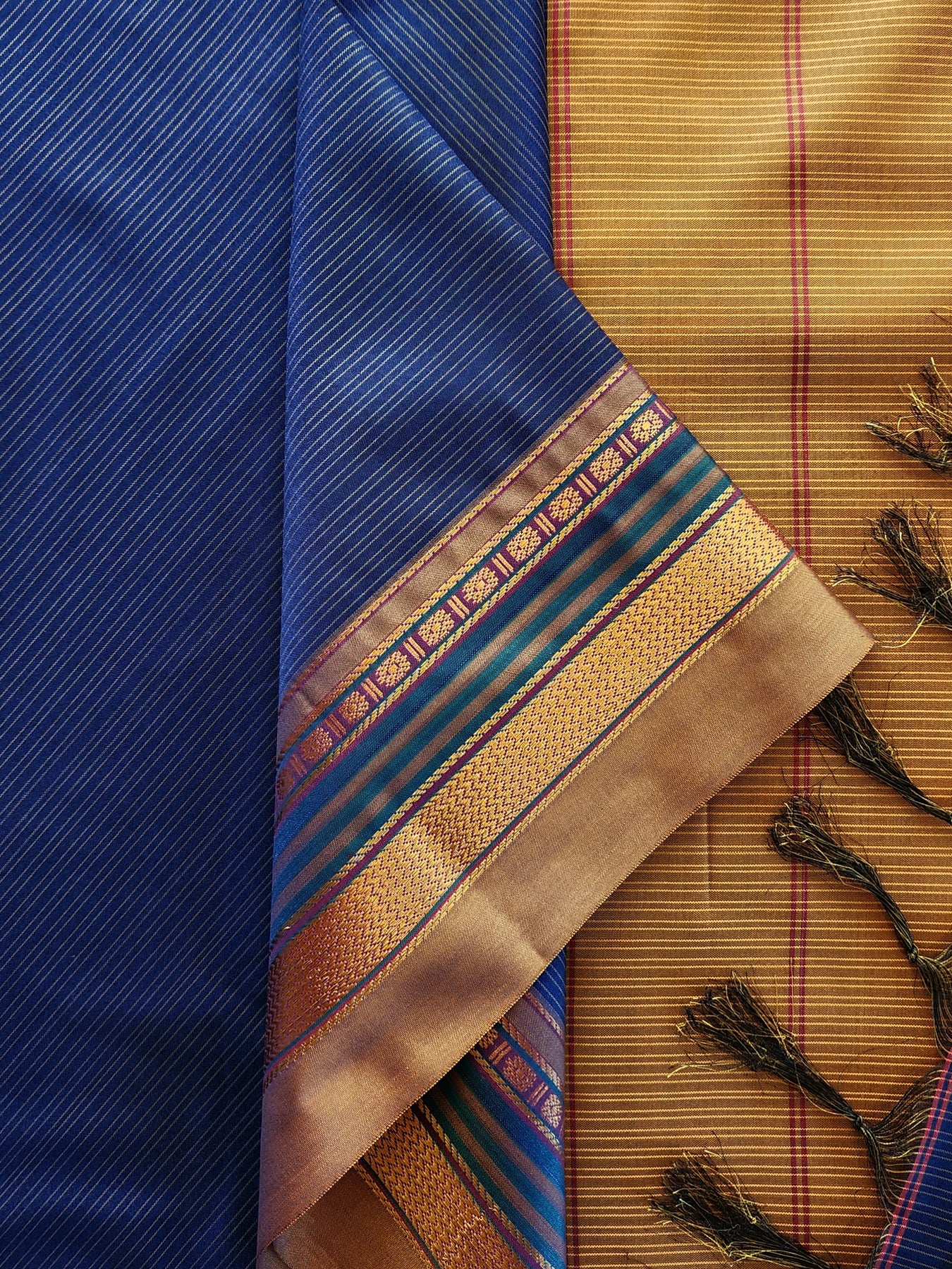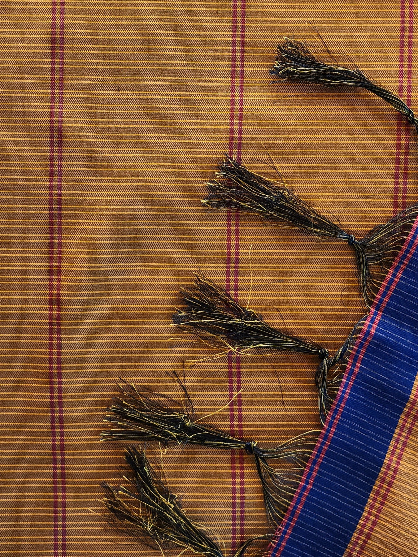 Silk Saree with contrast borders and pallu, beautifully finished with tassels