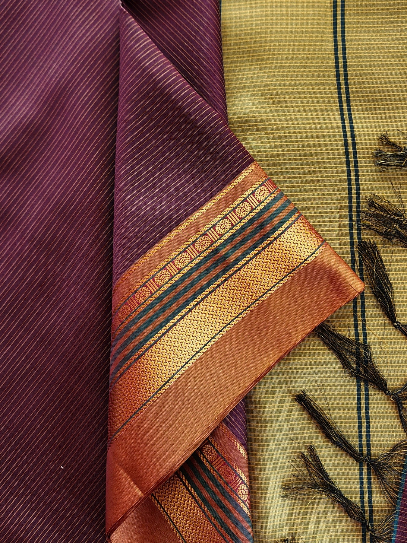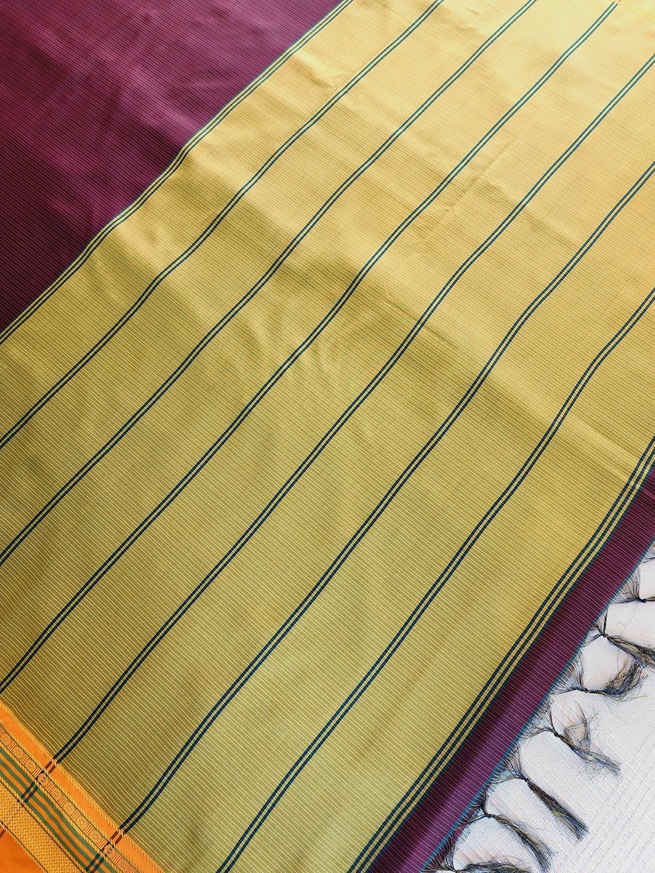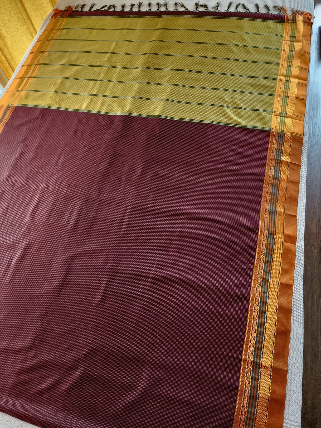Silk Saree with contrast borders and pallu, beautifully finished with tassels
