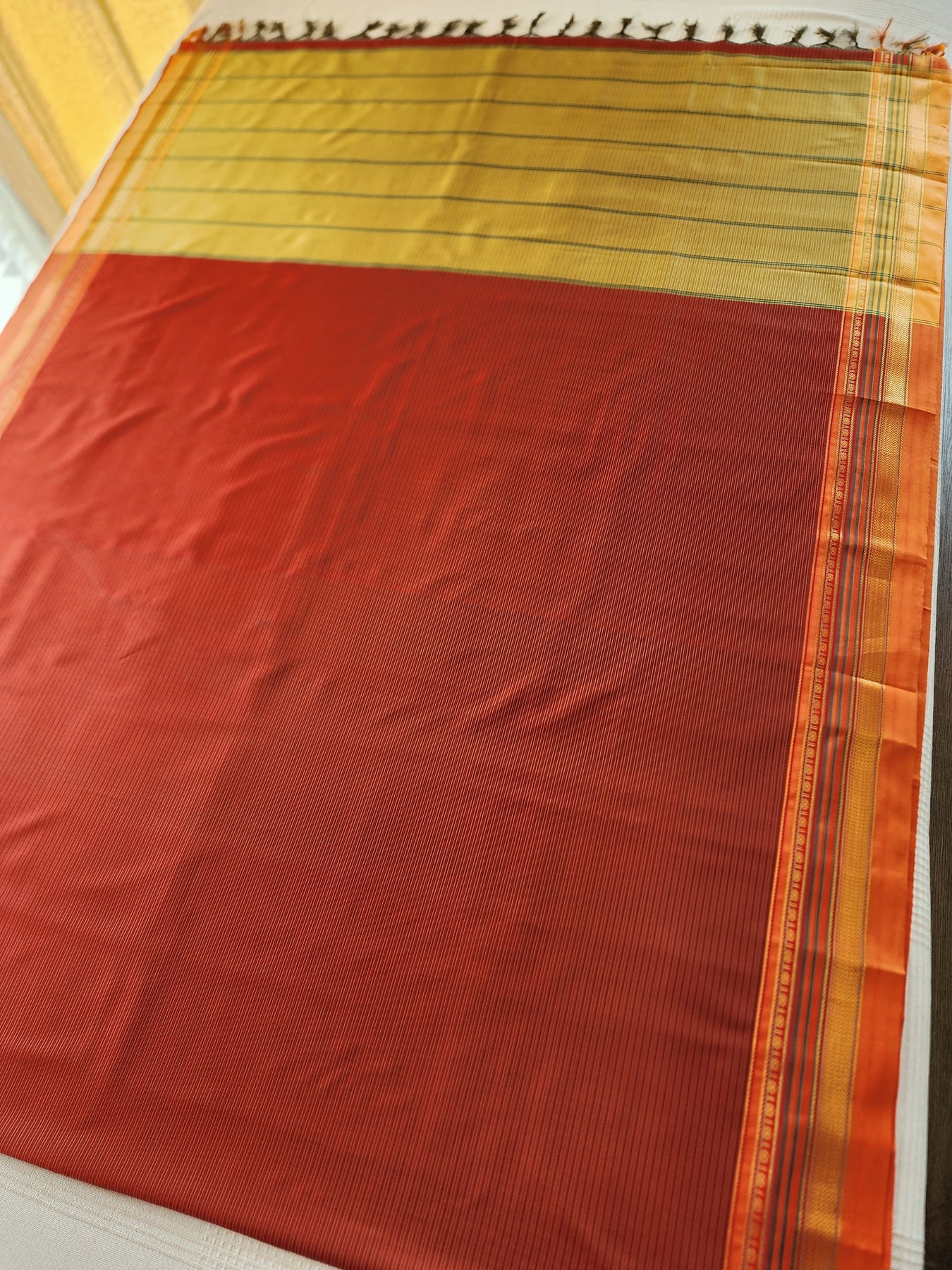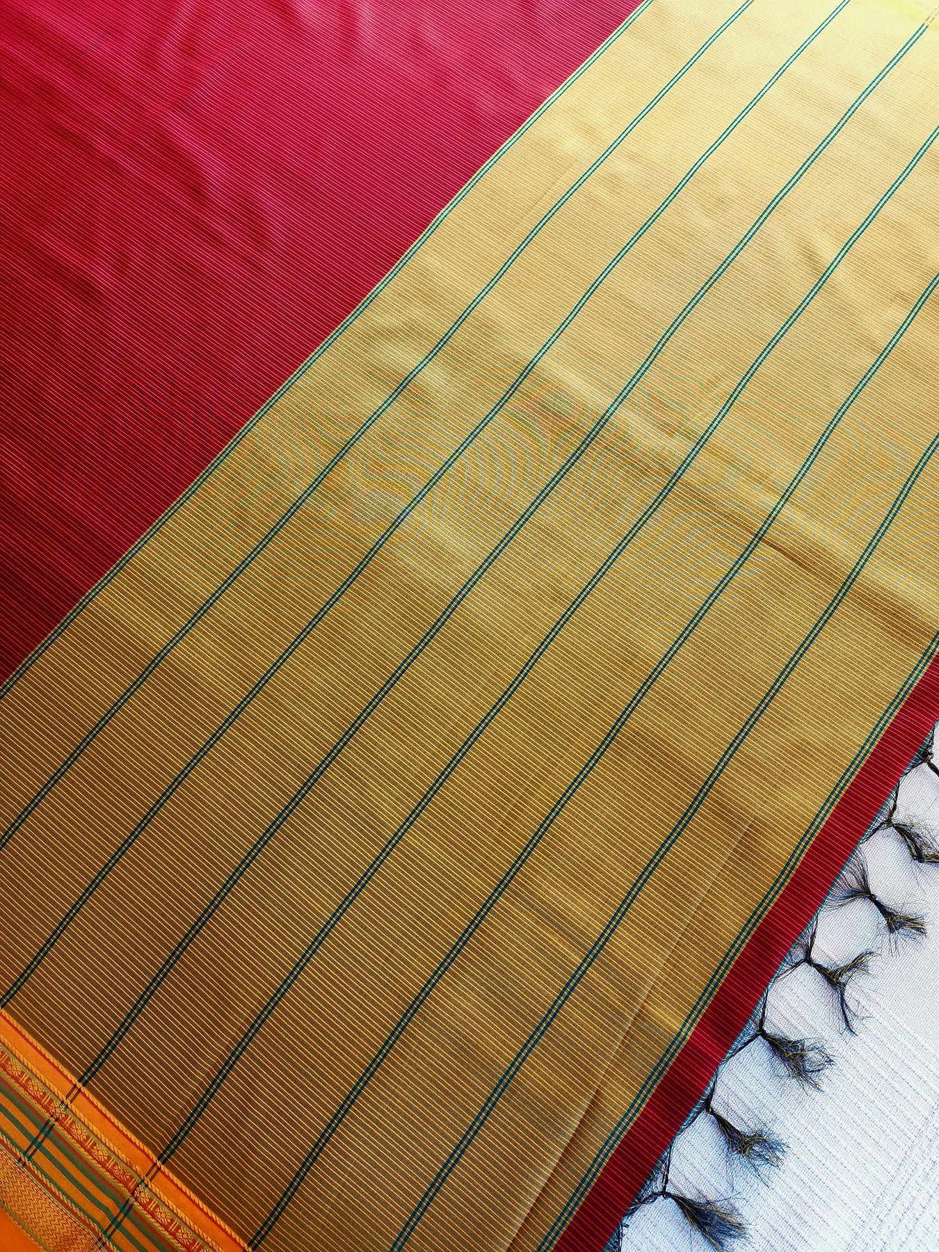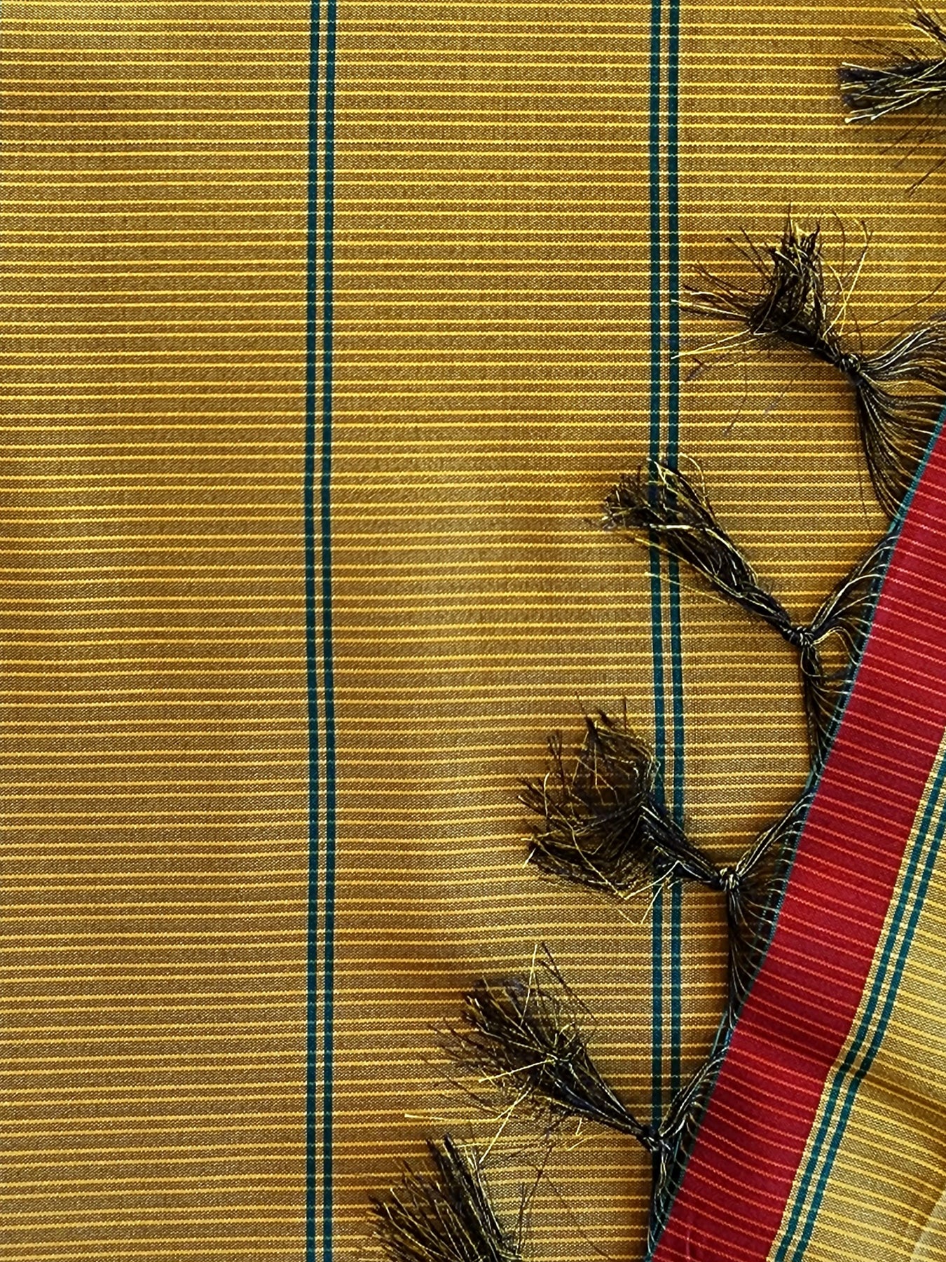 Silk Saree with contrast borders and pallu, beautifully finished with tassels
