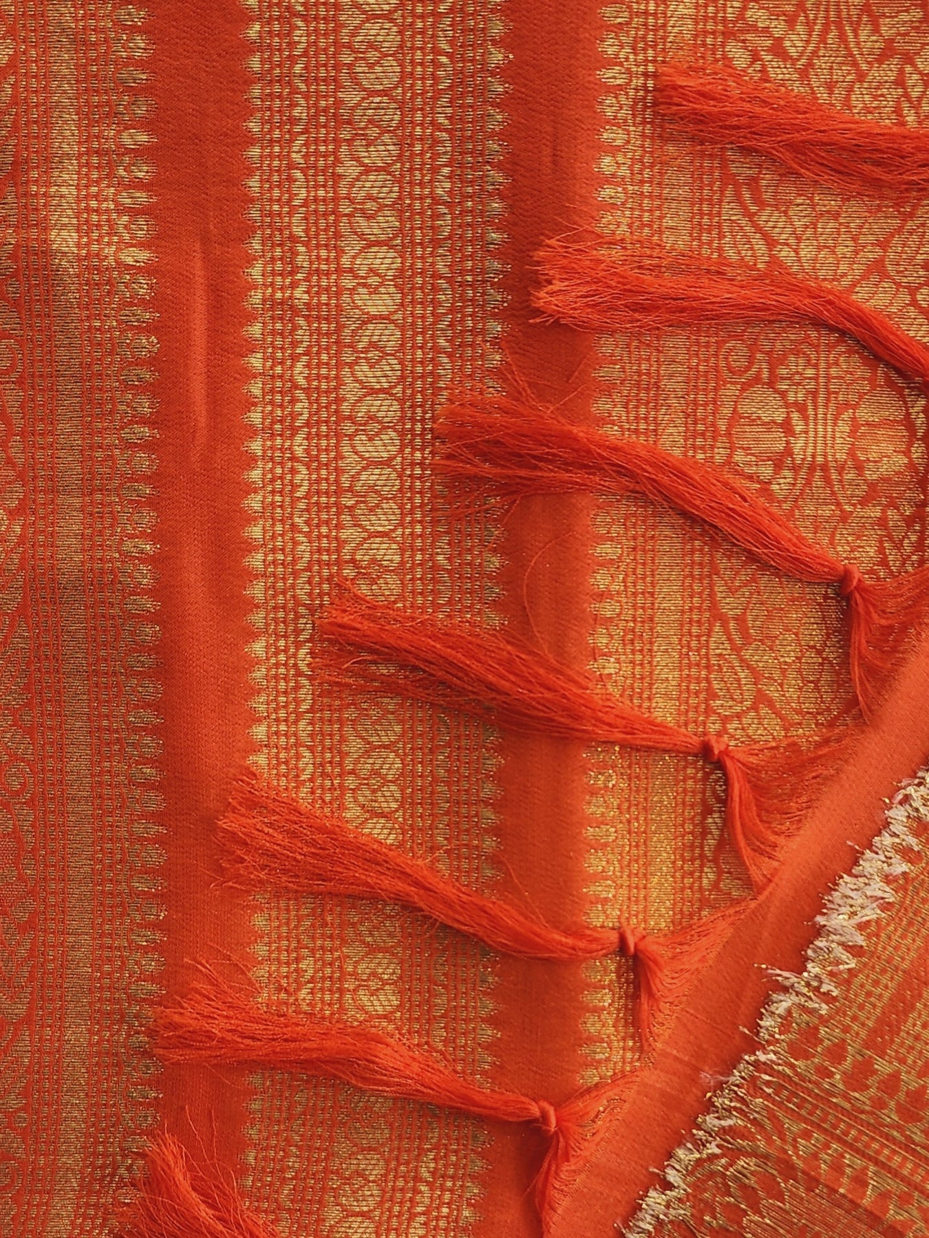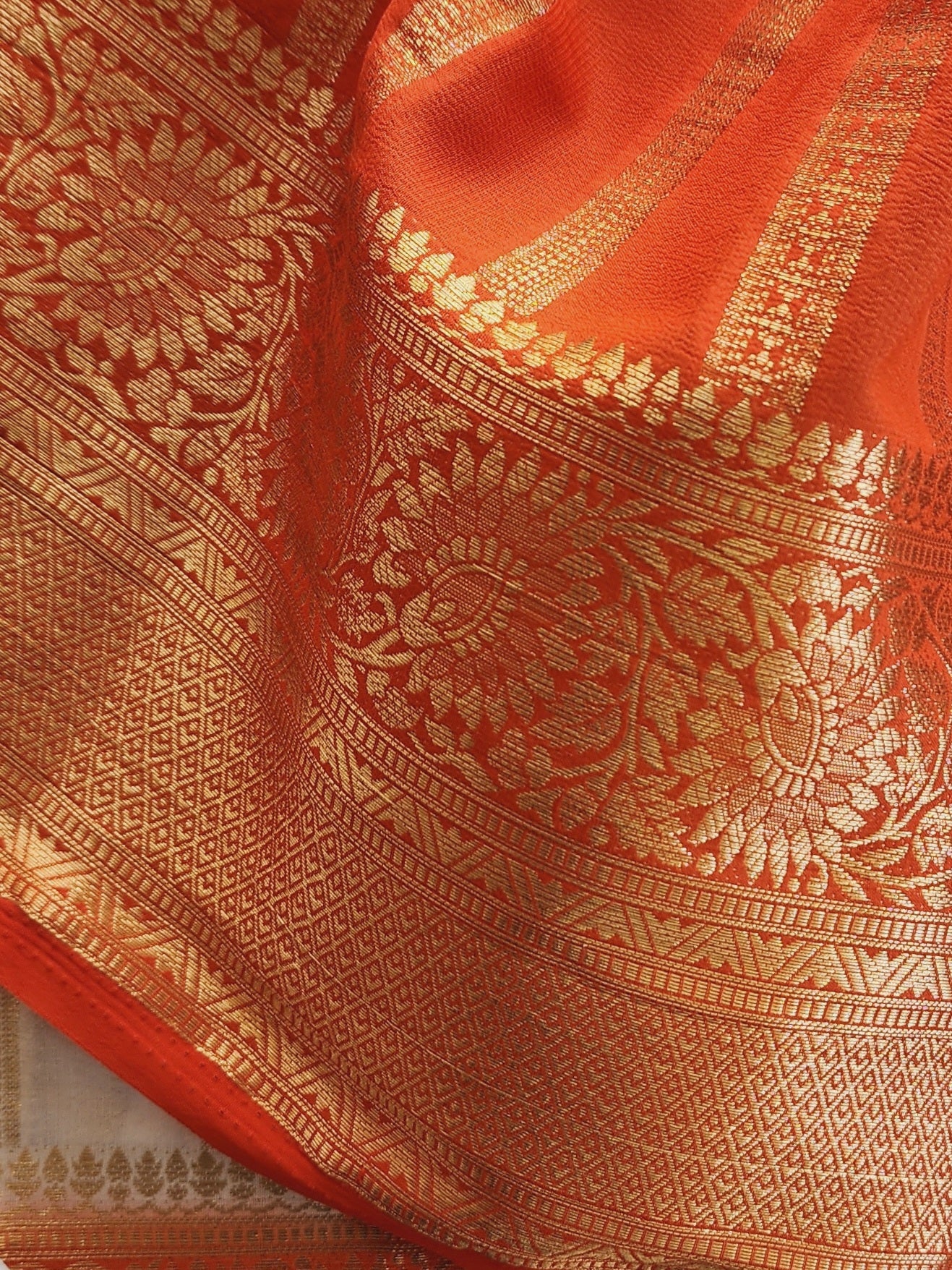 Semi Georgette Saree, with woven borders, paired with a Blouse fabric