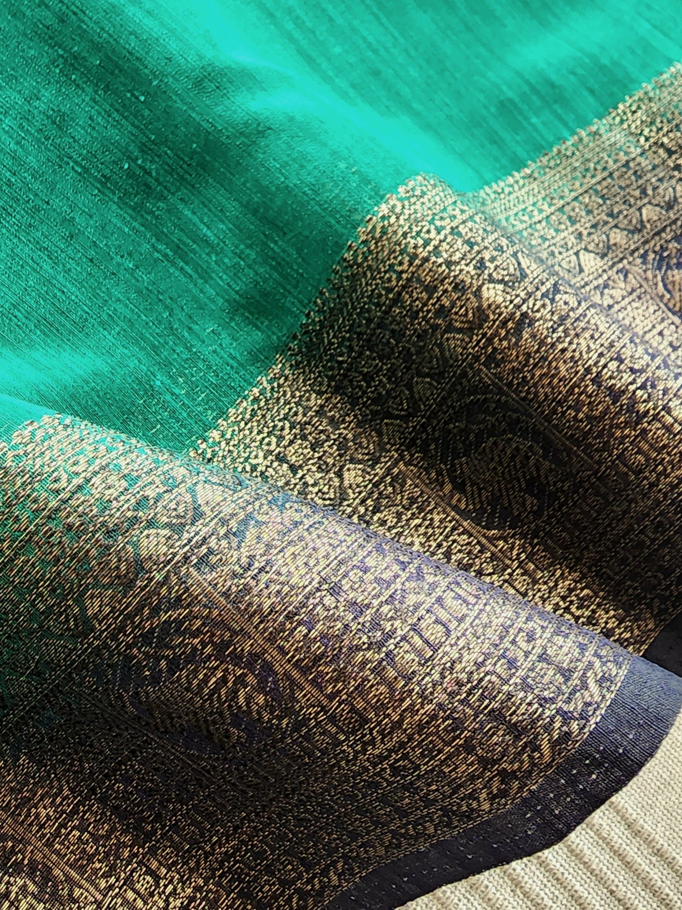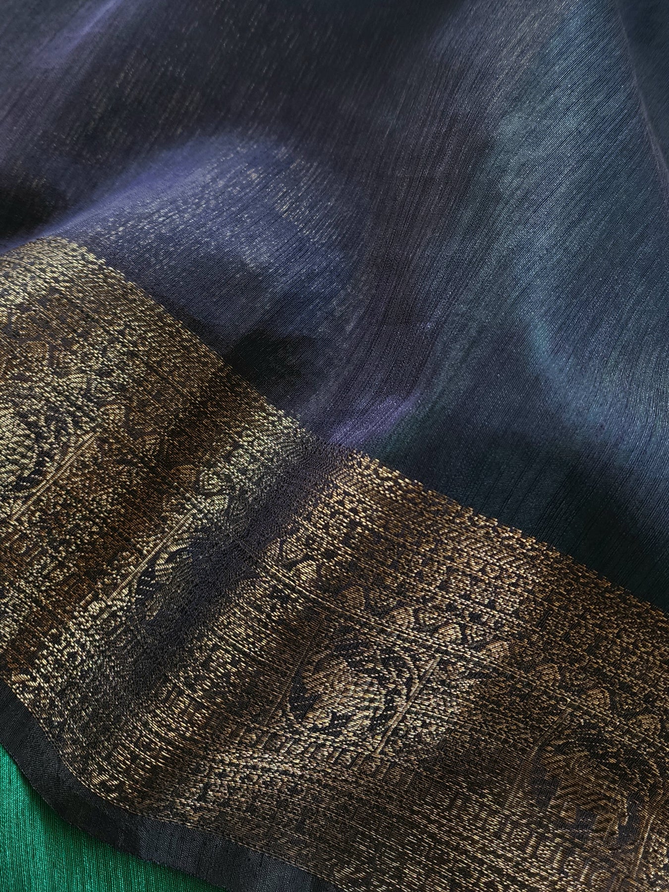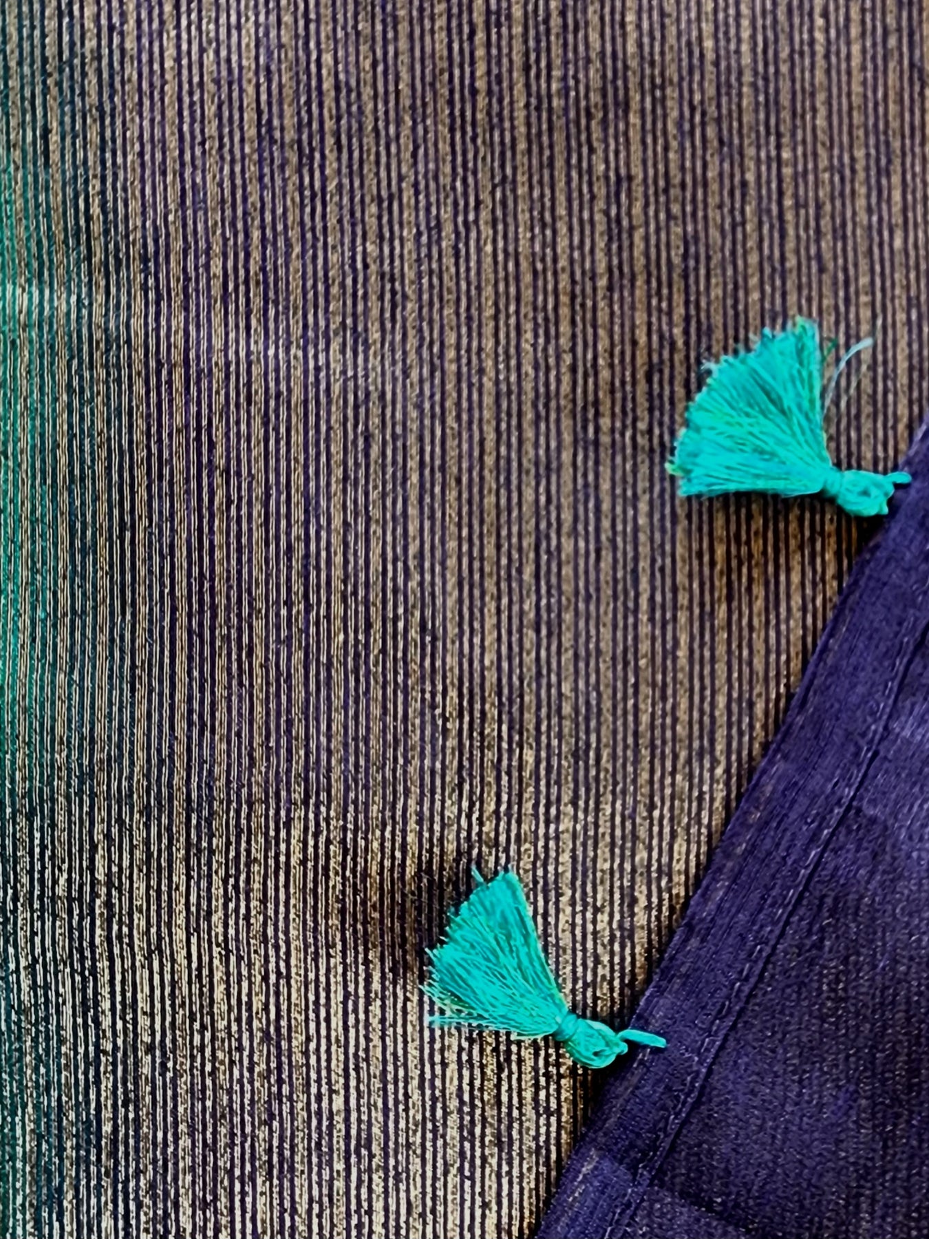 Teal Semi Raw Silk Saree with woven borders and pallu, beautifully finished with tassels