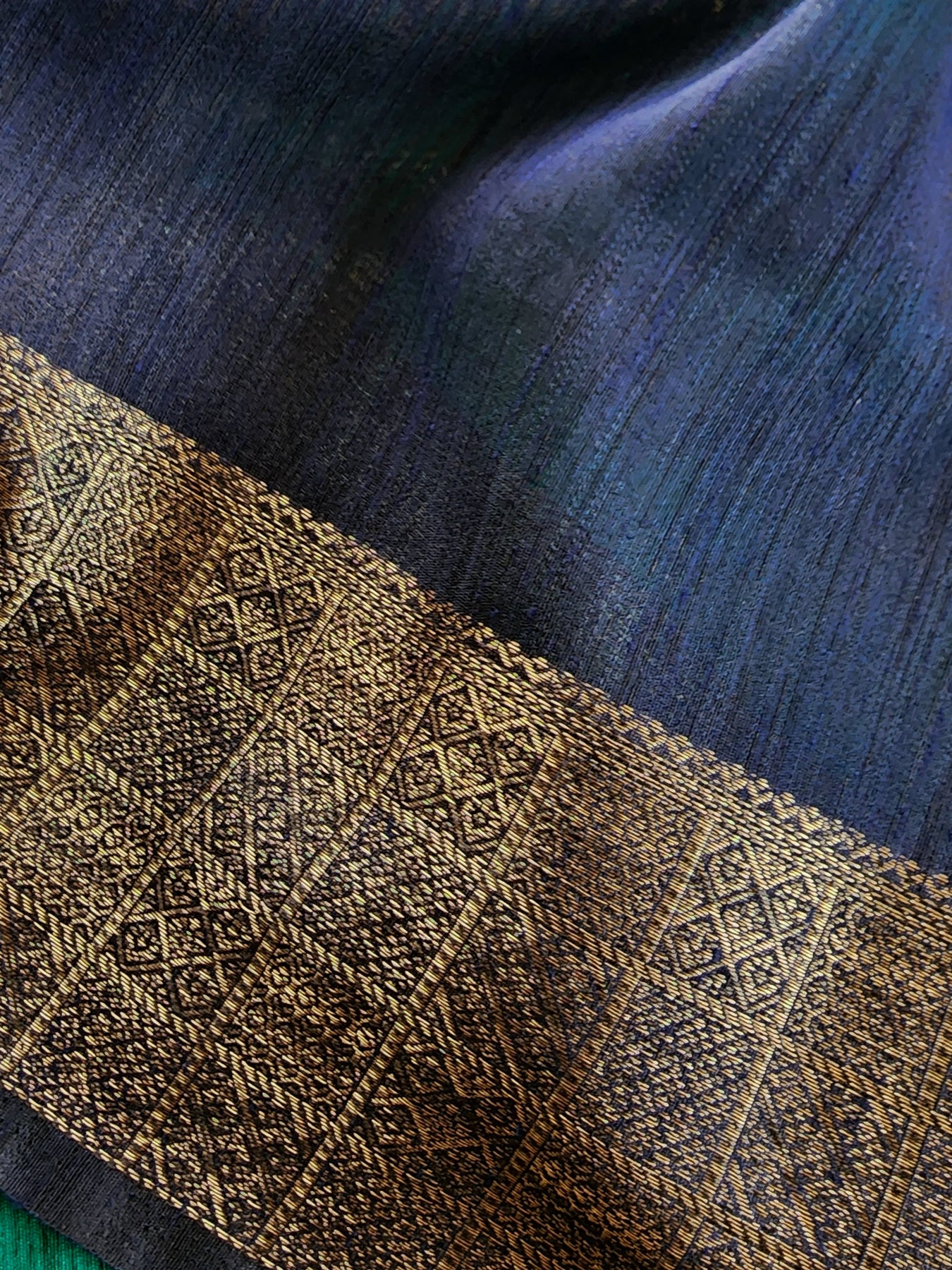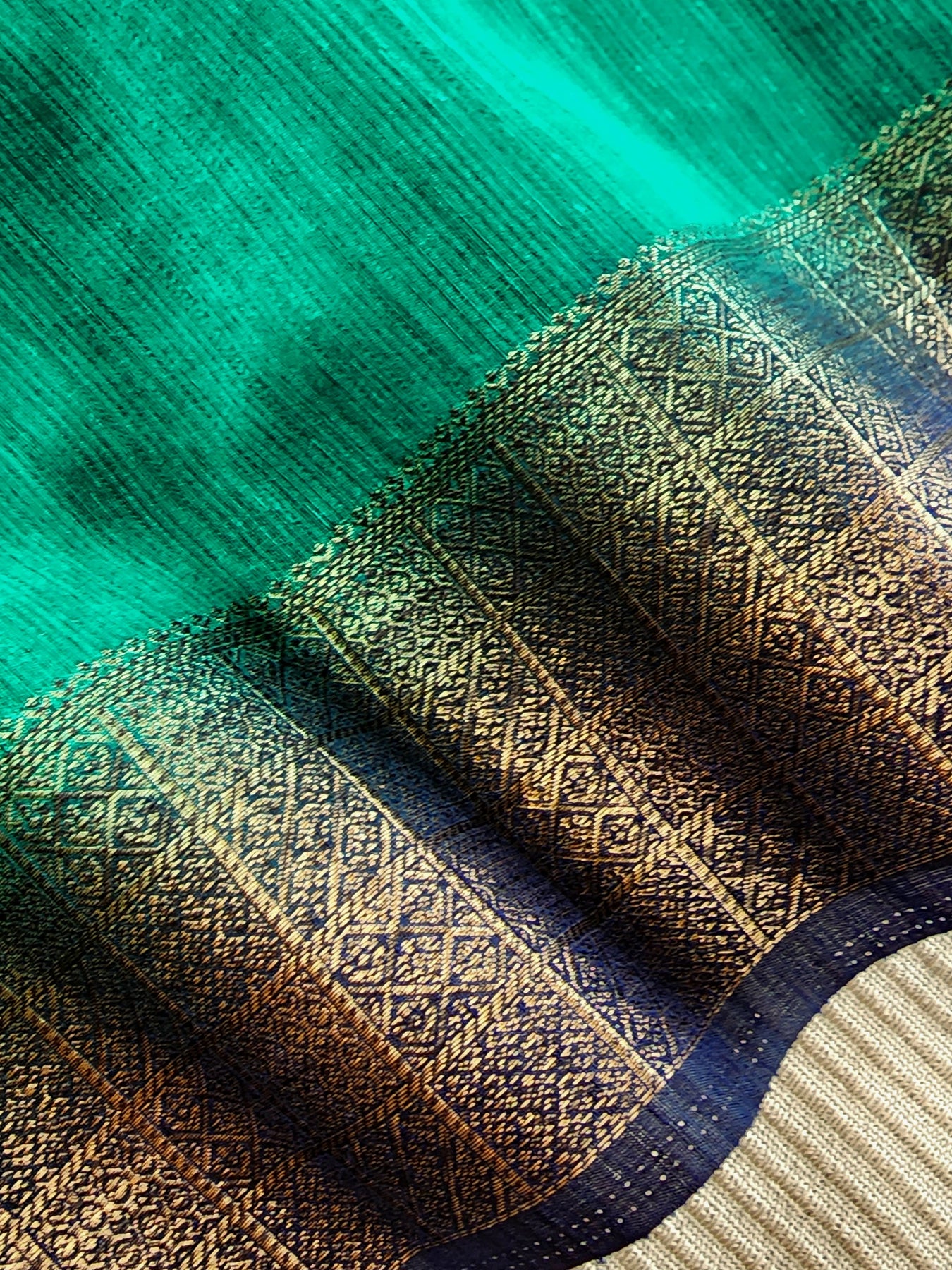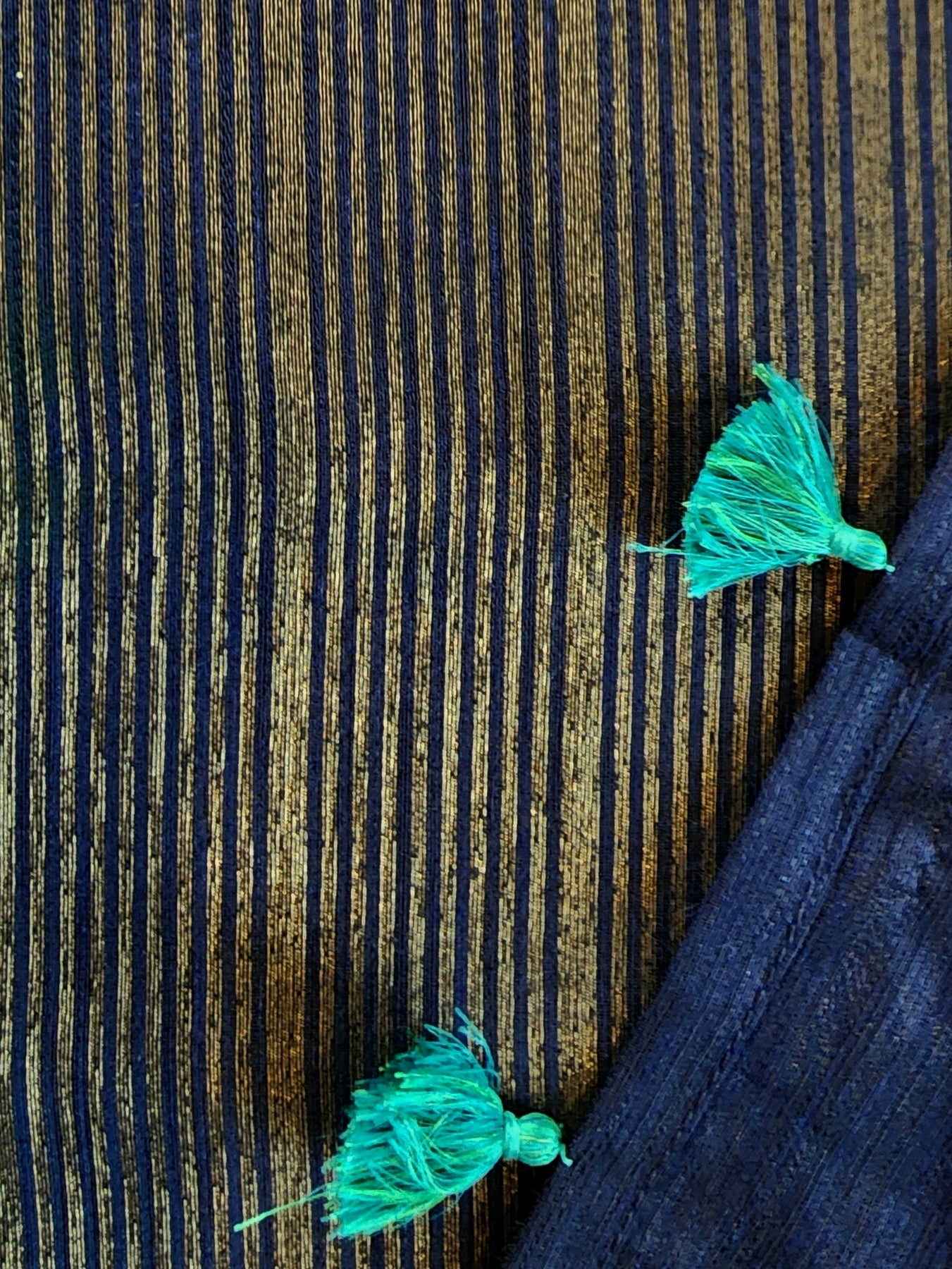 Teal Semi Raw Silk Saree with woven borders and pallu, beautifully finished with tassels