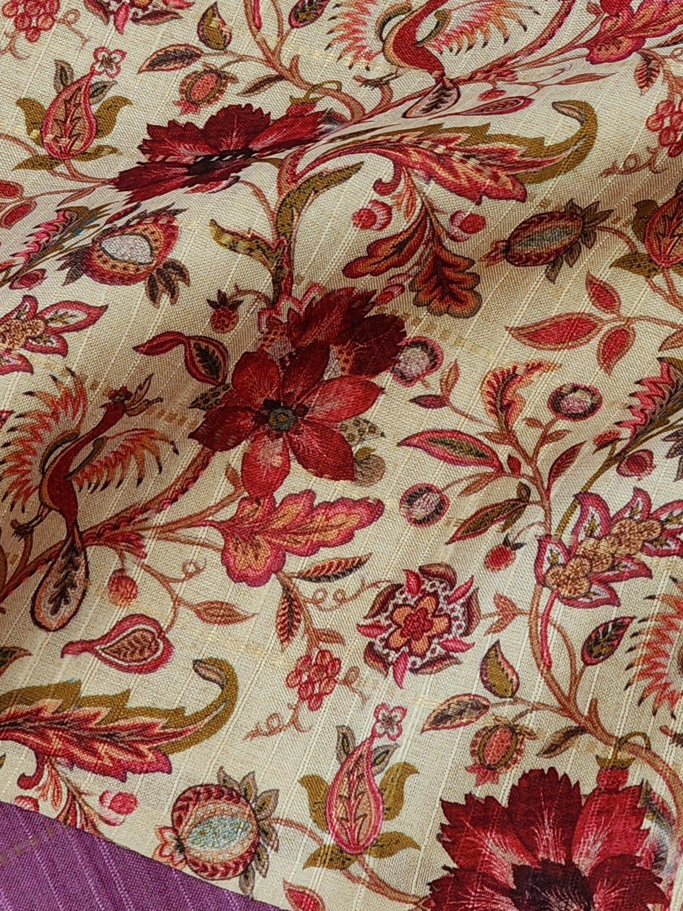 An elegant Semi Tussar Silk Saree with Digital Floral Prints