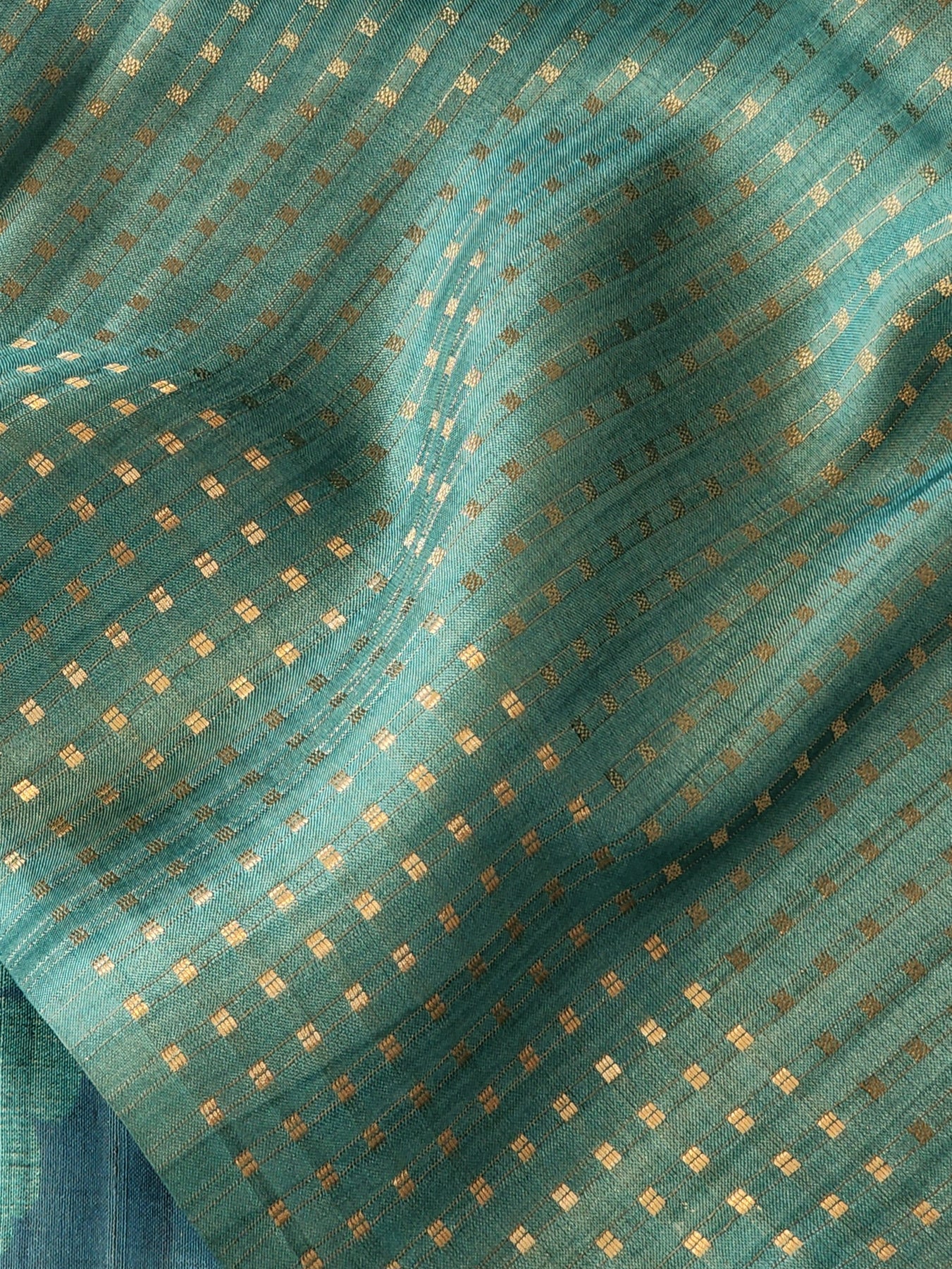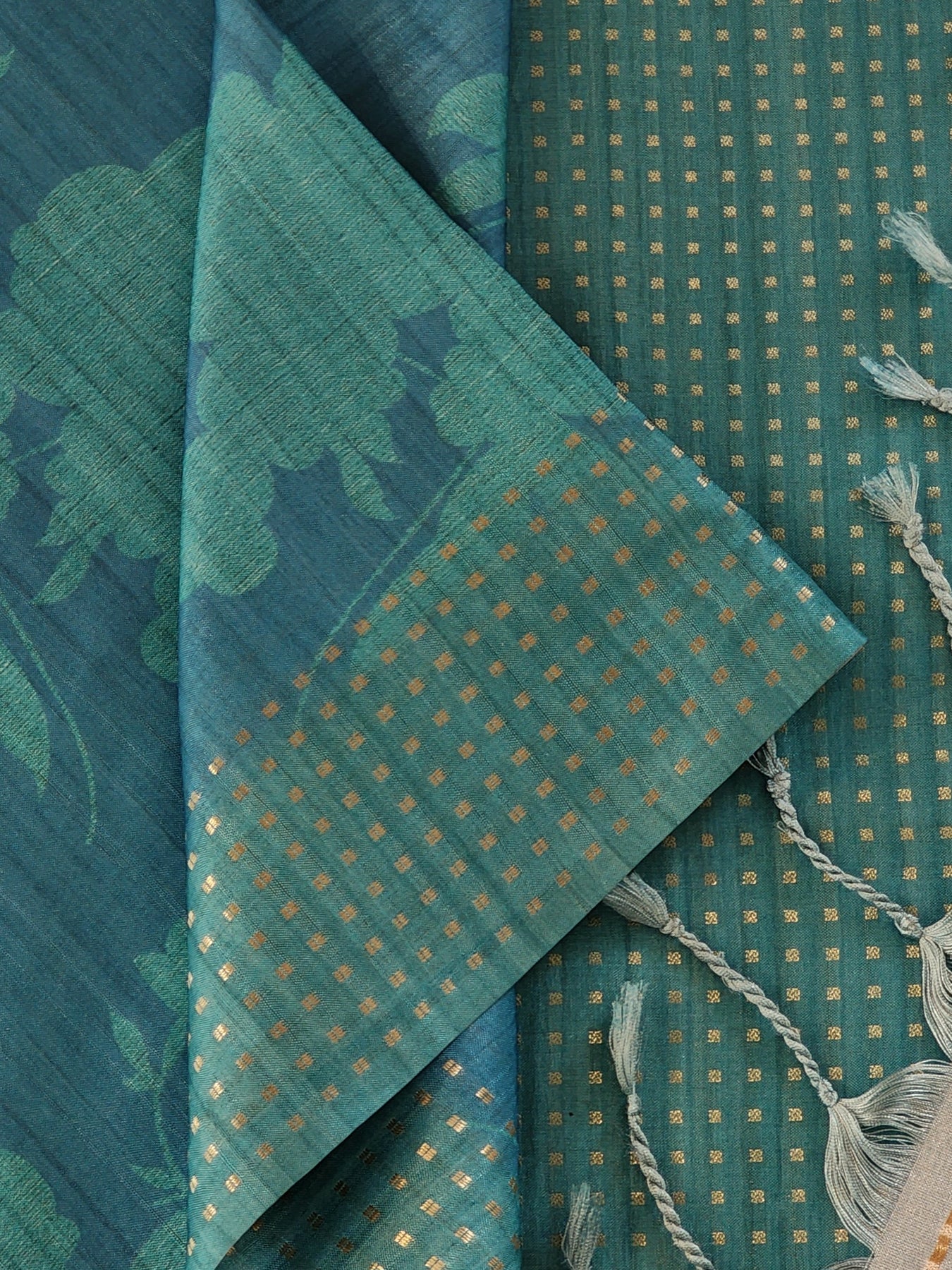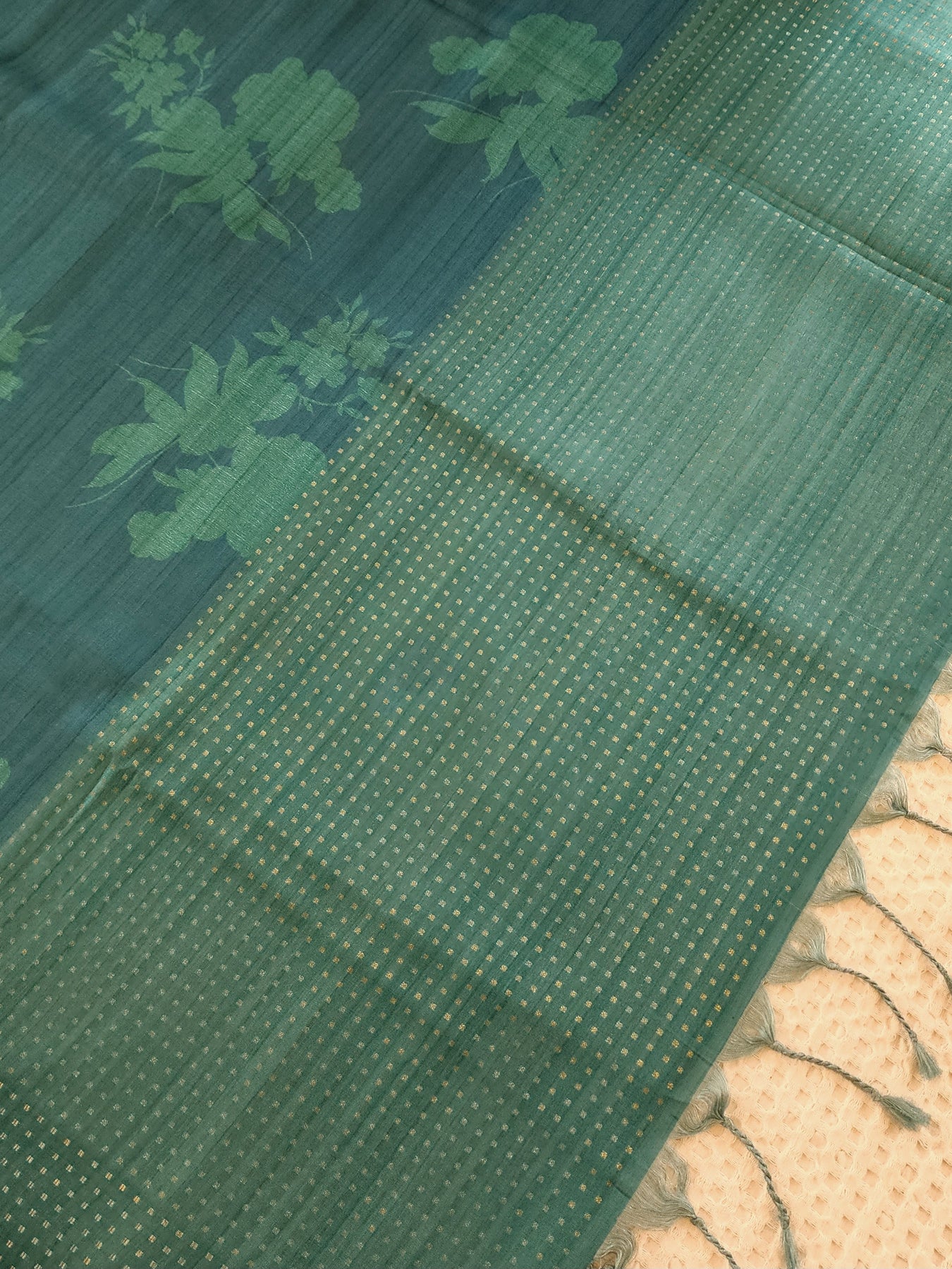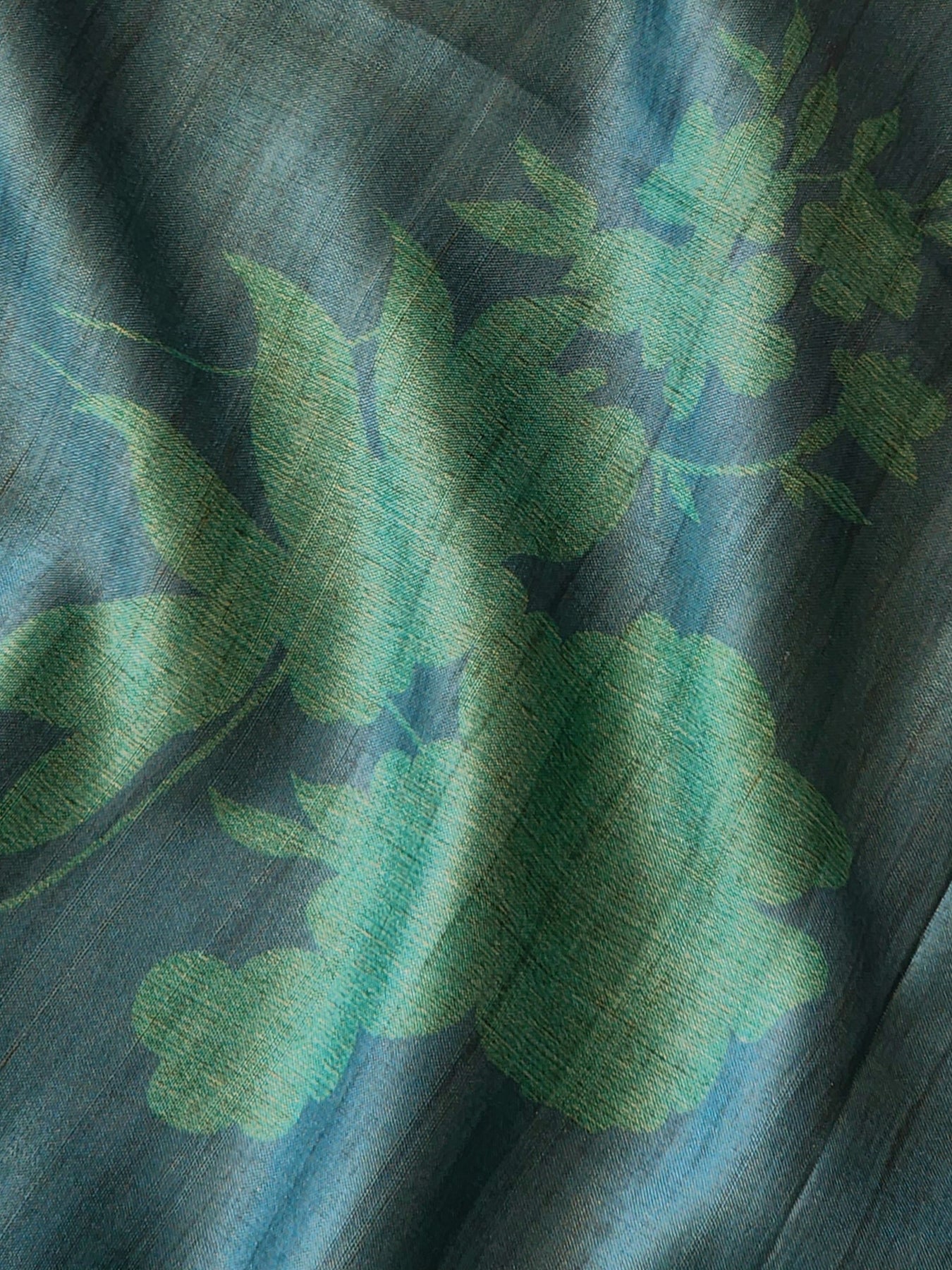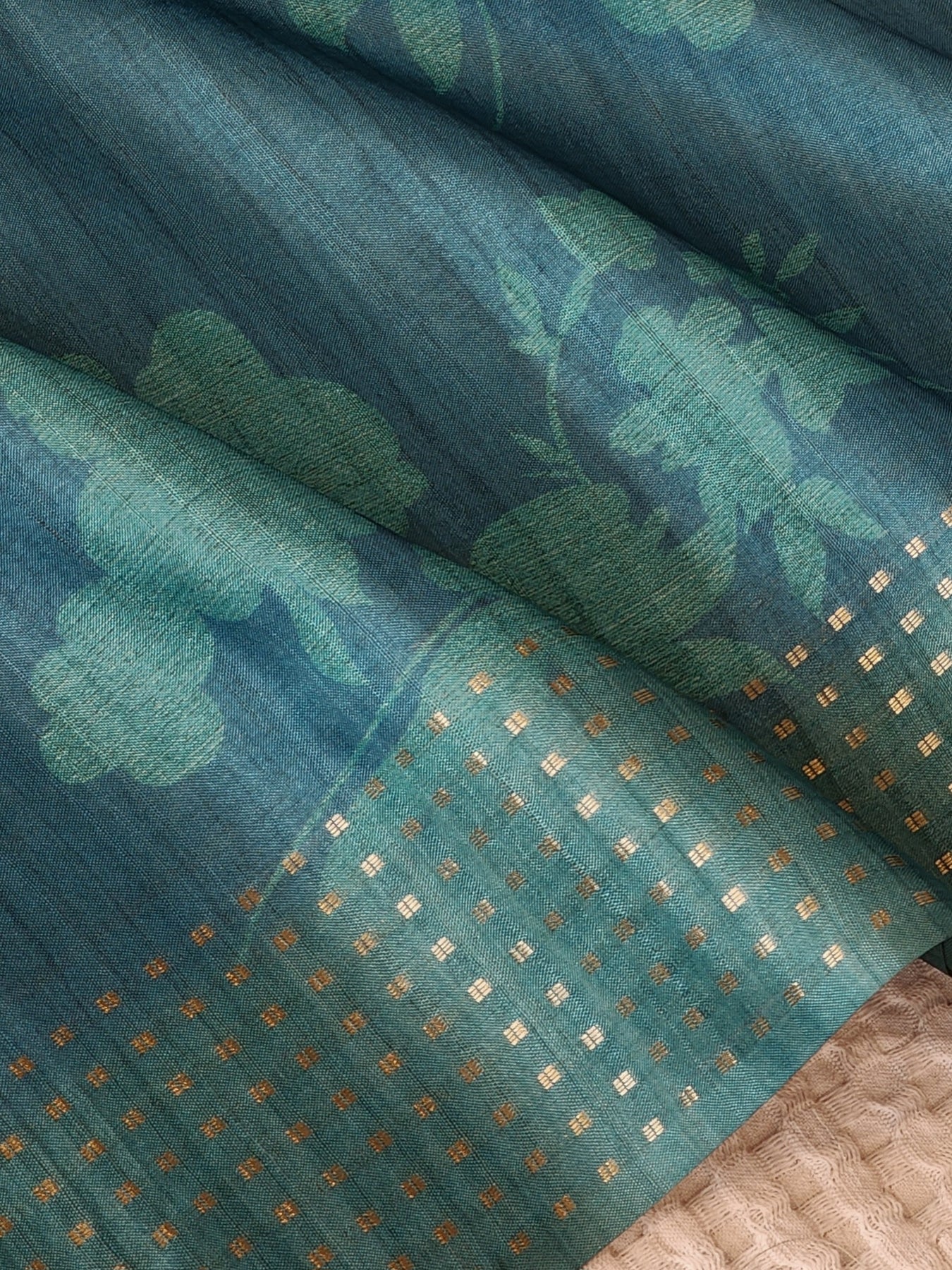 An elegant Blue Semi Tussar Silk Saree with Digital Floral Prints.