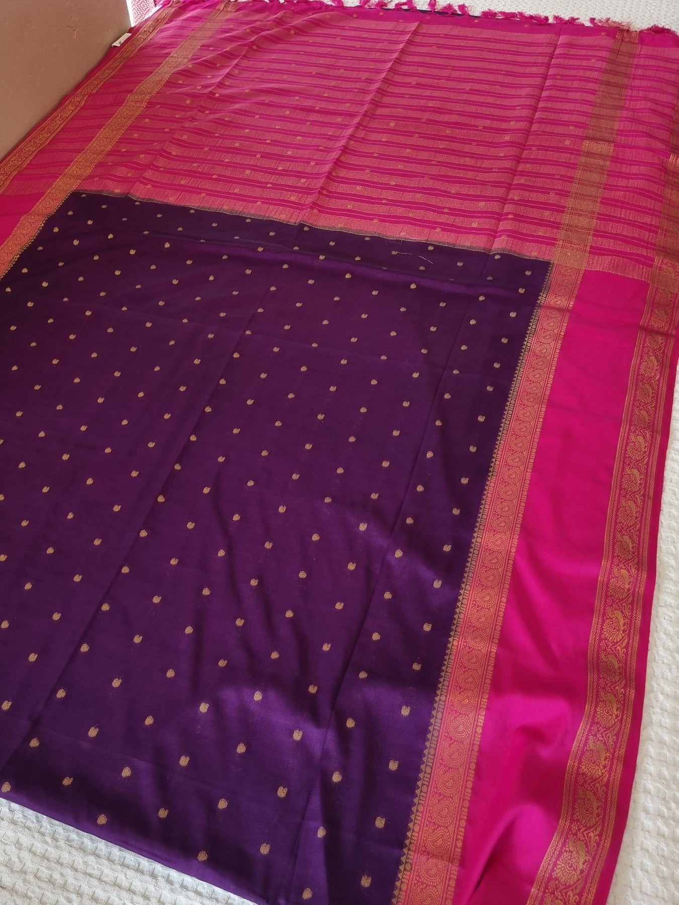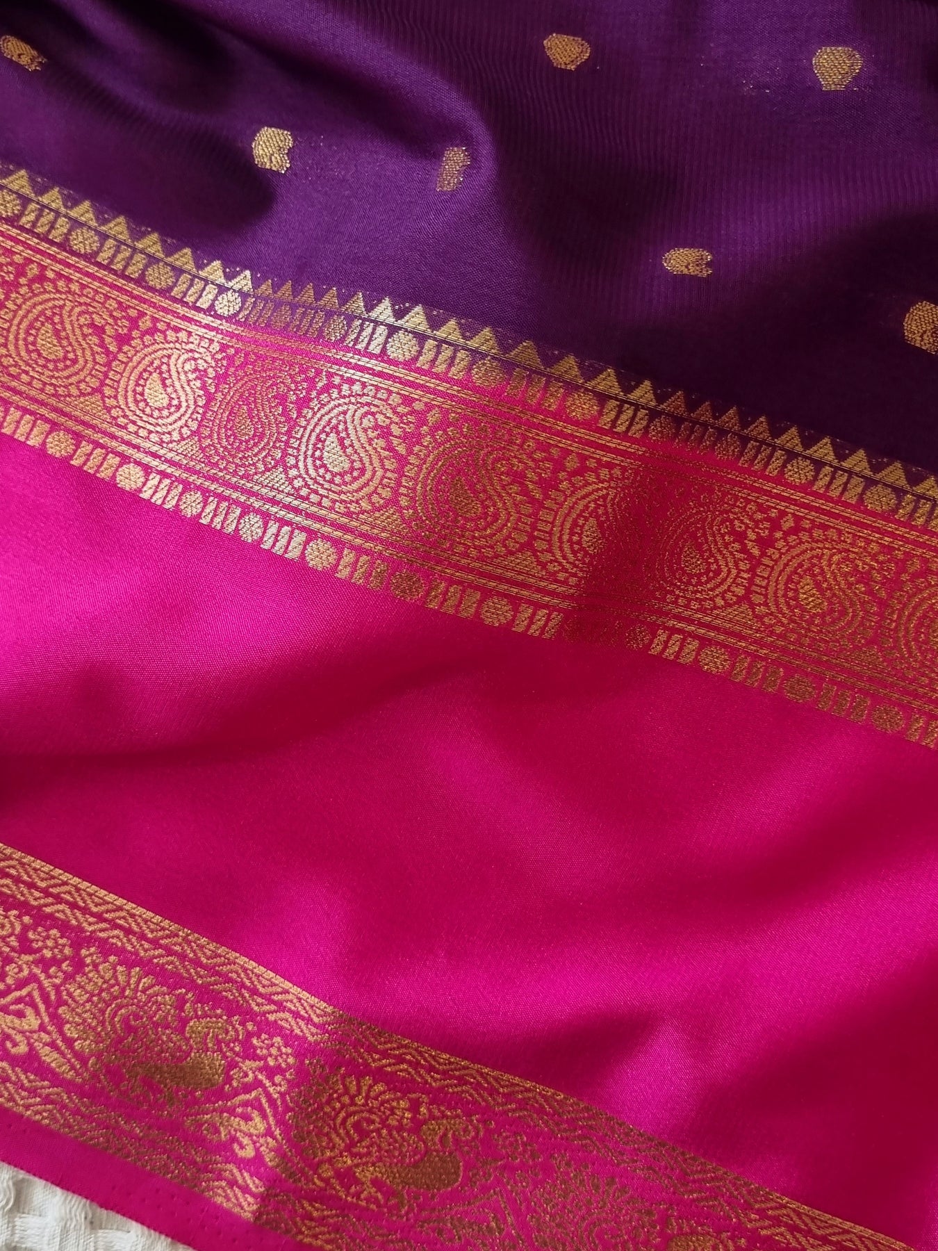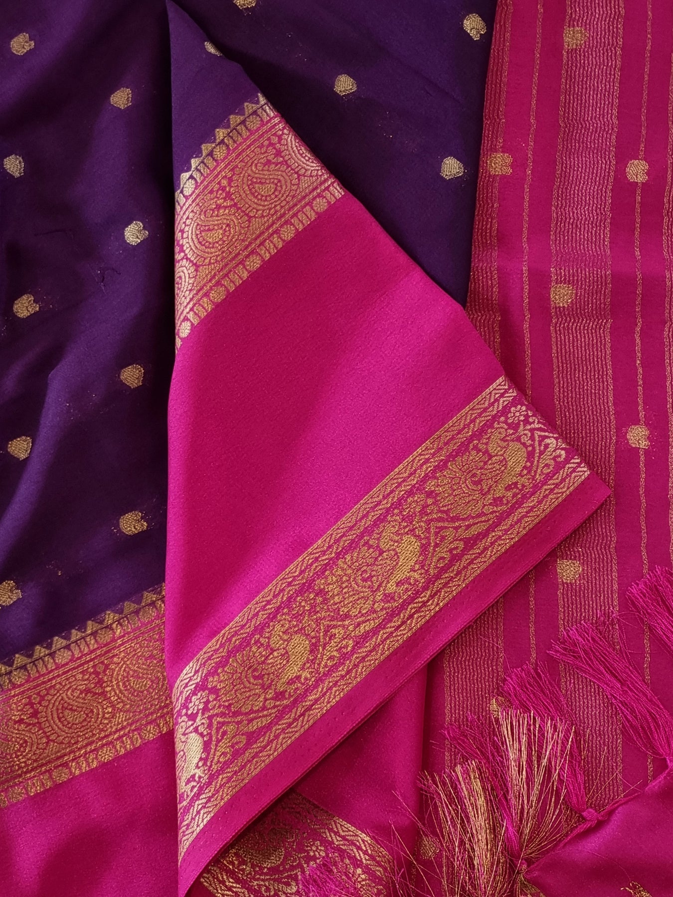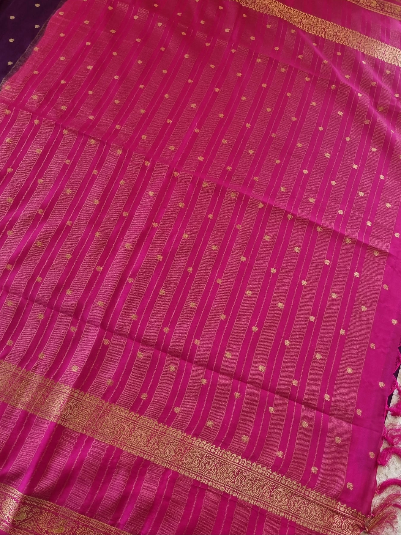 • An elegant Purple Semi Georgette Silk Saree with Pink Contrast borders